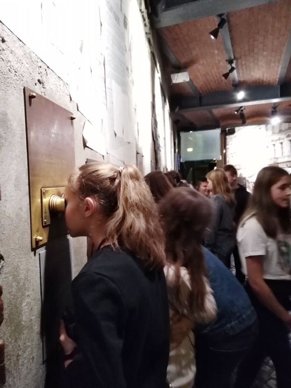 Uczestnicy wycieczki w skupieniu słuchali opowieści przewodników i poznawali eksponaty zgromadzone w muzeum. Duże wrażenie zrobiło na wszystkich wykorzystanie technologii multimedialnych oraz połączenie dźwięku i obrazu w prezentacji zbiorów muzeum. Podczas zwiedzania uczniowie zadawali wiele pytań, dzielili się swoimi refleksjami