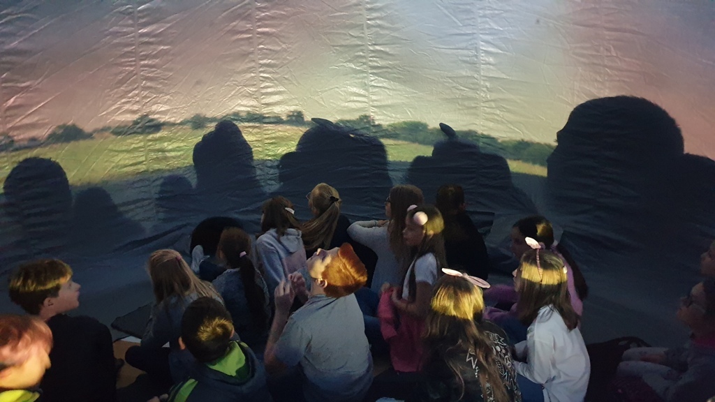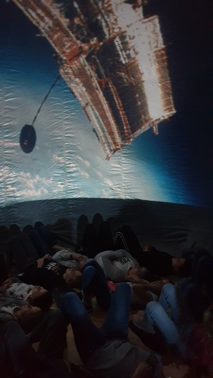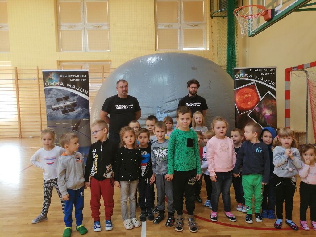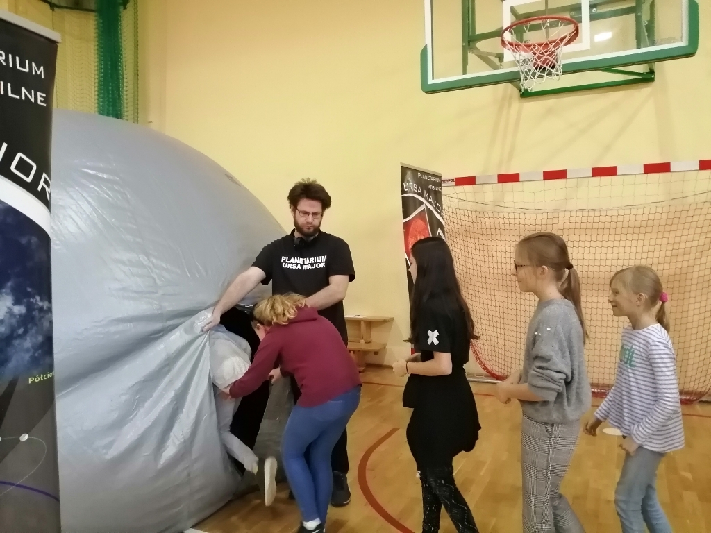 Mobilne planetarium Ursa Major czyli właśnie Wielka Niedźwiedzica gościło w Szkole Podstawowej w Dobrej. Dzięki temu dzieci z Oddziału Przedszkolnego i uczniowie klas od I do VIII mogli uczestniczyć w niecodziennych lekcjach astronomii. Zajęcia prowadził pan Marek Pytlewski, który w sposób niezwykle ciekawy, zrozumiały i dostosowany do możliwości poznawczych każdej z grup wiekowych, opowiadał o Układzie Słonecznym, budowie i ruchu planet, o fazach Księżyca. Wyjaśniał też zjawiska związane z dobowym i rocznym ruchem sfery niebieskiej, zmiany wyglądu nieba w zależności od pory roku. Klasy starsze zaglądały nawet odległe rejony kosmosu.