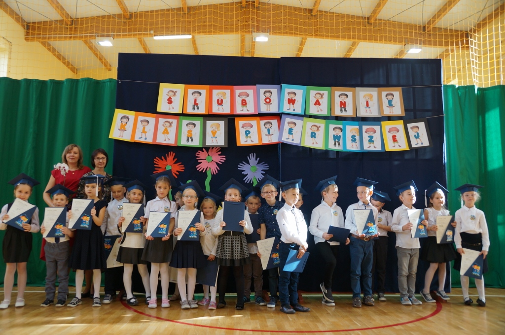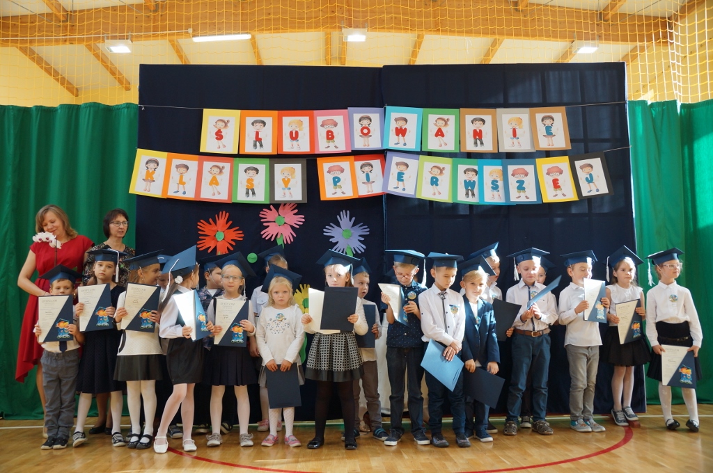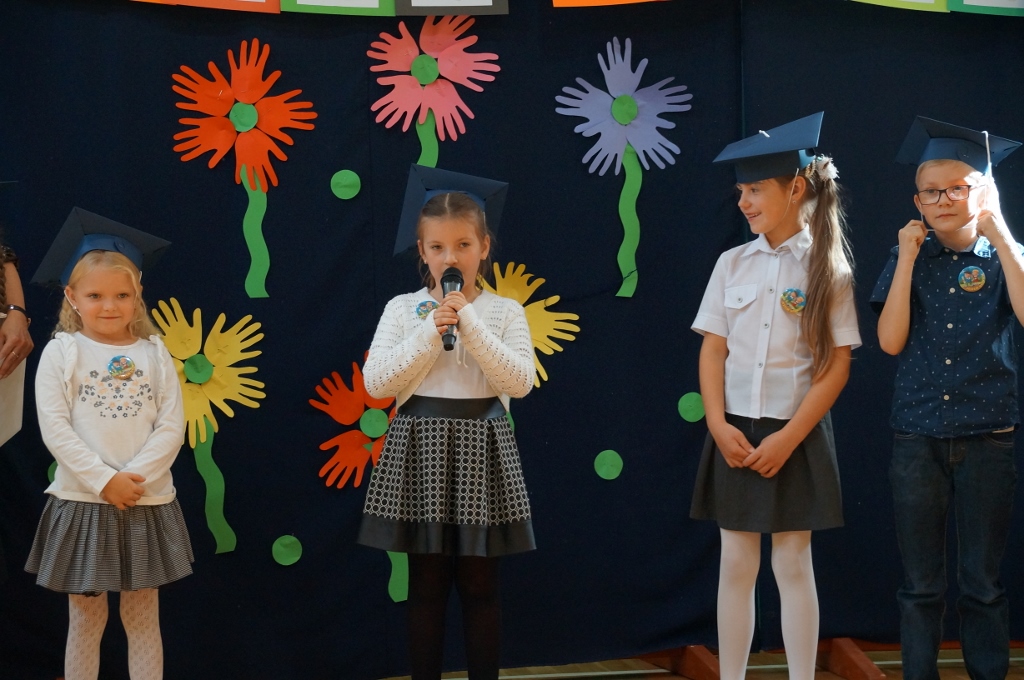 i zostali przyjęci w poczet uczniów szkoły. Na zakończenie wszyscy otrzymali pamiątkowe dyplomy i upominki od kolegów z klas młodszych.
