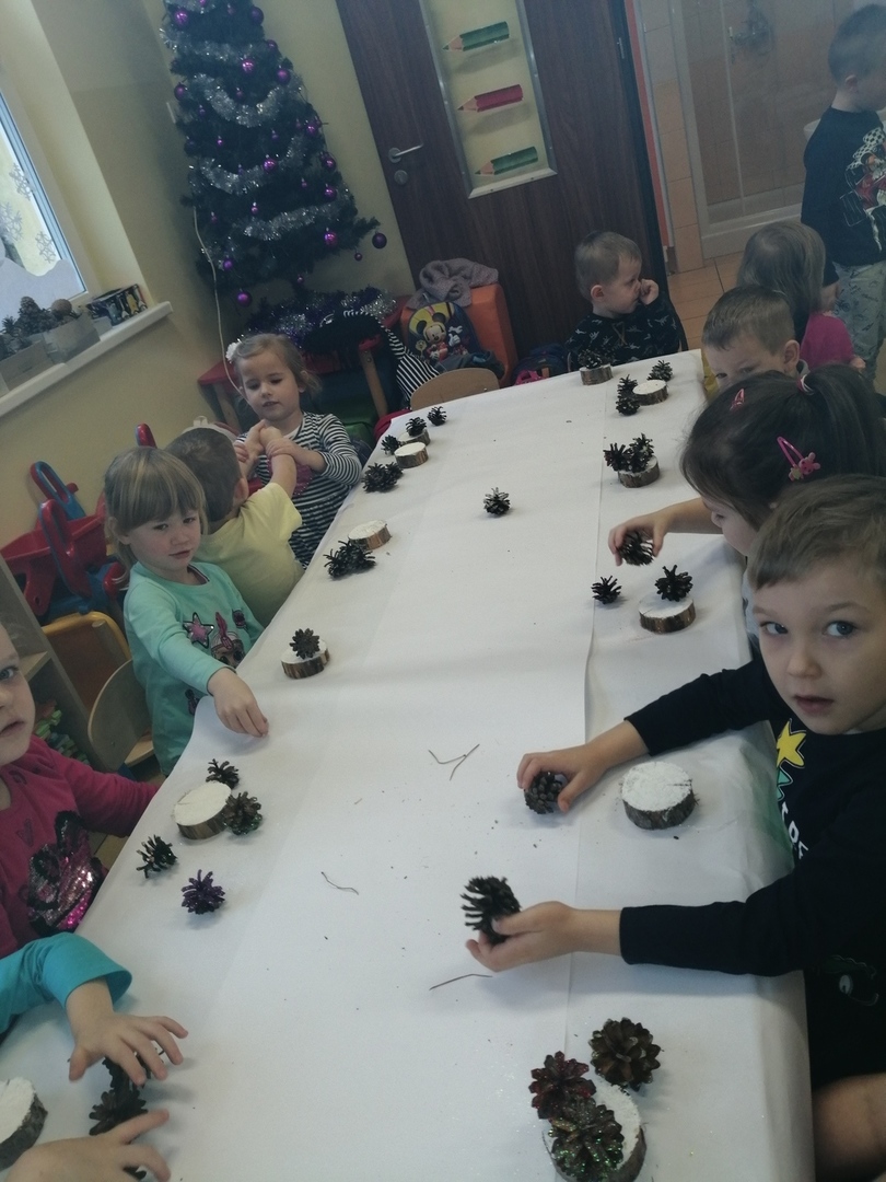 W dniu 16.12 br. w grupie „Misie” odbyły się zajęcia warsztatowe zorganizowane przez jedną z mam. Dzieci przygotowały stroiki świąteczne wykonane z drewna oraz szyszek.