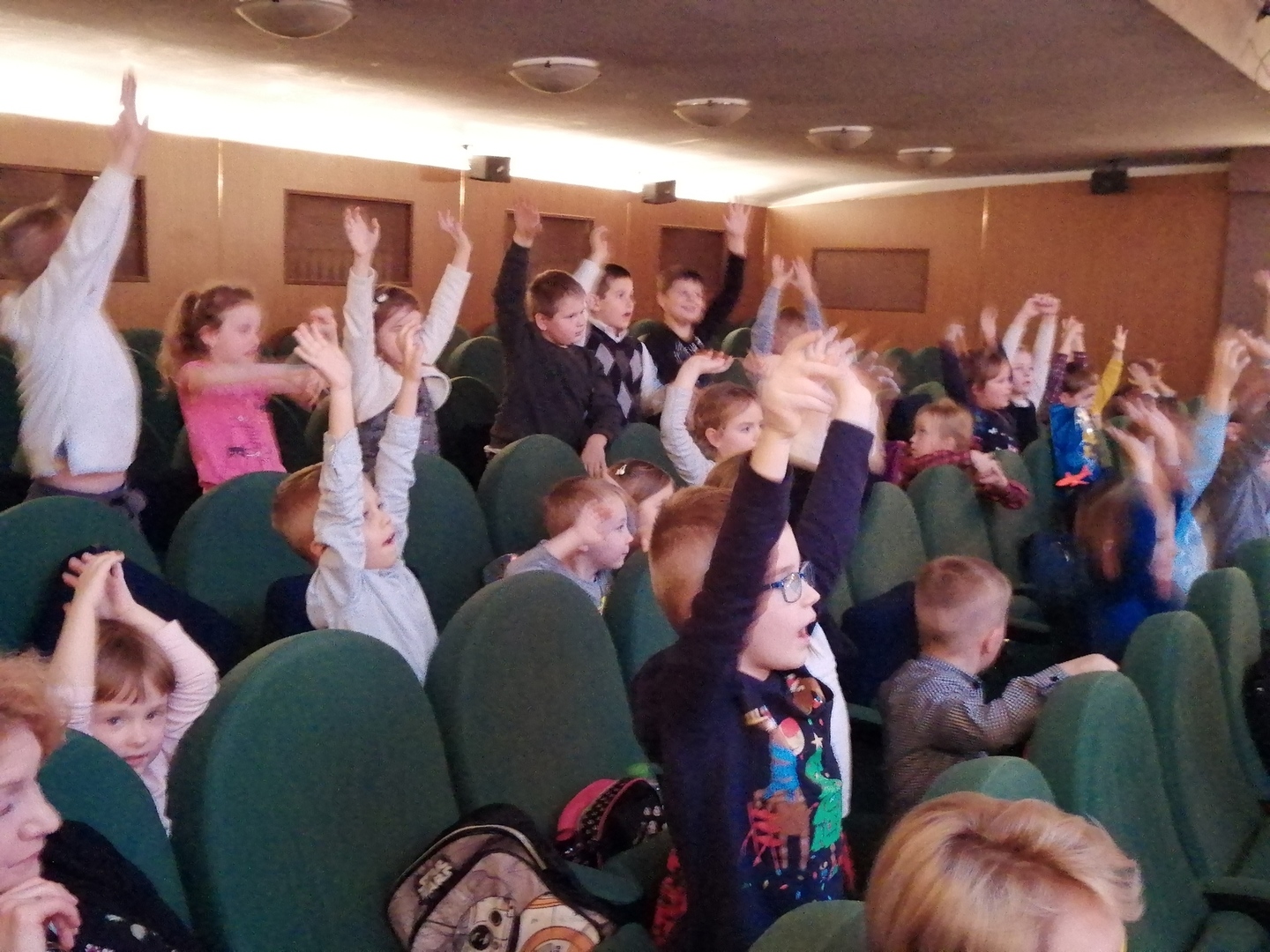 W dniu 3.12 br. przedszkole uczestniczyło w wycieczce do Teatru „Bajlandia”, dzieci obejrzały spektakl pt. „ O smoku i królu Leniuchu” . Było to przedstawienie promujące zdrowy tryb życia, aktywizujące widownię. Przedszkolaki czynnie uczestniczyły w przedstawieniu po którym odwiedził je Mikołaj z upominkami. Był to dzień pełen wrażeń, dzieci były pod ogromnym wrażeniem.