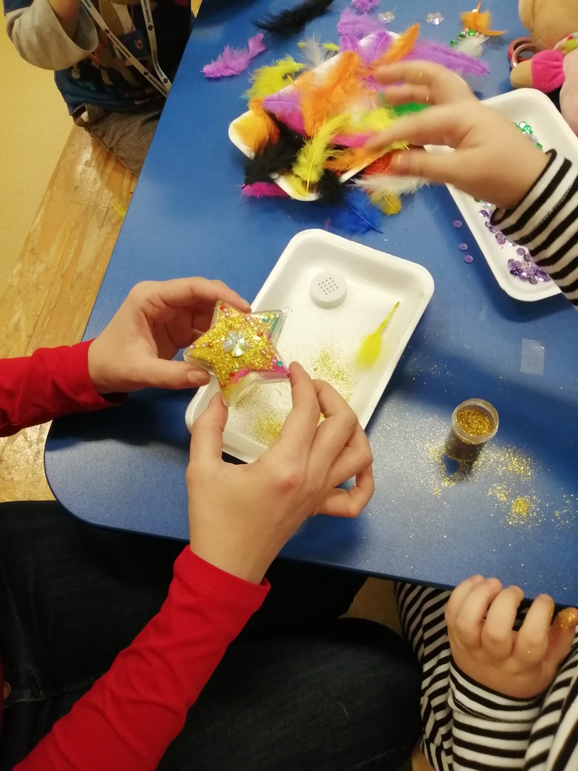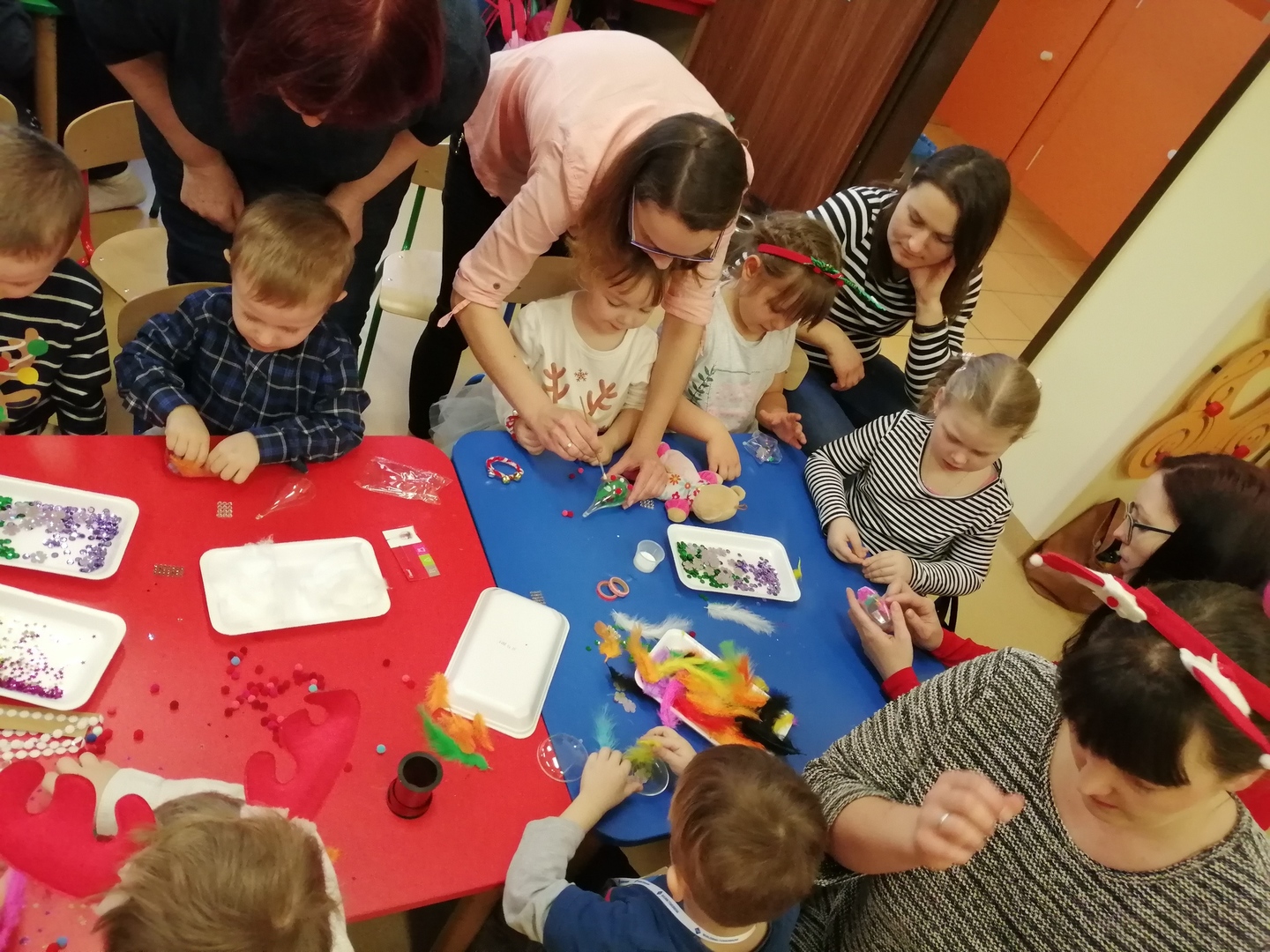 Kolejnym punktem naszych przygotowań były zajęcia otwarte dla rodziców, podczas których dzieci wspólnie z opiekunami wykonały ozdoby i kartki świąteczne połączone ze spotkaniem z Mikołajem, który wręczył wyczekiwane przez dzieci prezenty. Spotkanie zostało zakończone wykonaniem wspólnych zdjęć w fotobudce.