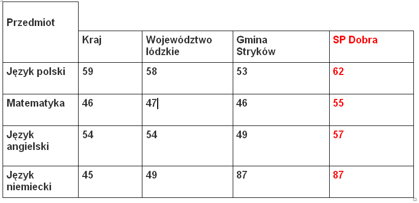Poniżej umieszczamy zestawienie wyników uczniów naszej szkoły na tle wyników w kraju, województwiełódzkim i gminie Stryków.