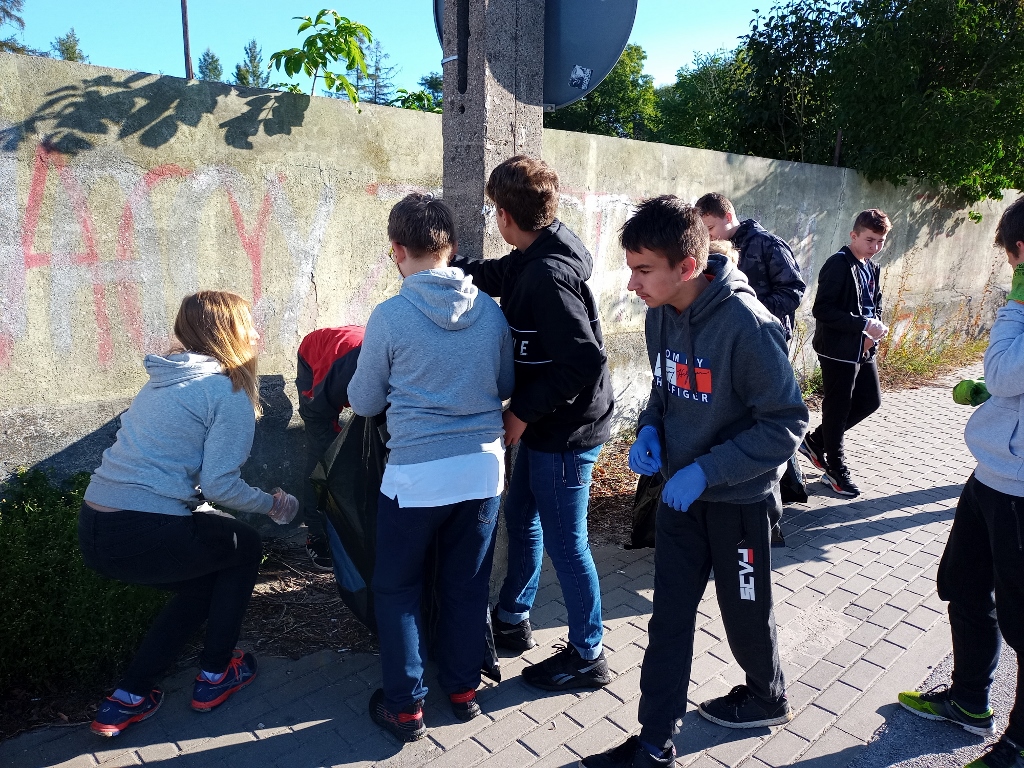 Uczniowie wraz z opiekunami zabrali worki na śmieci oraz rękawiczki i ruszyli uprzątnąć otoczenie szkoły. Wszystko oczywiście dla Natury. Ulżyli jej, sprzątając plastikowe odpady, które nie mają szansy na biodegradację. Zebrali zalegające śmieci, które niektórzy ludzie beztrosko zostawili w miejscach, gdzie odpoczywamy.