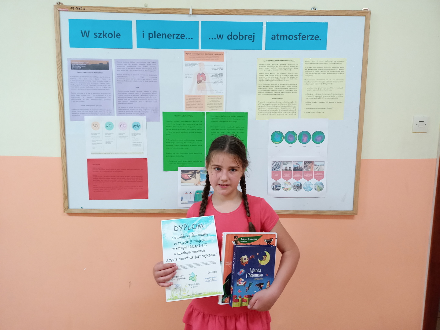 Konkurs ekologiczny odbył się w dwóch kategoriach wiekowych. Uczniowie klas I-III mieli wykonać plakat na kartonie technicznym A3, na którym przedstawili hasło konkursowe „Czyste powietrze jest najlepsze”. Najciekawsze prace wykonali: