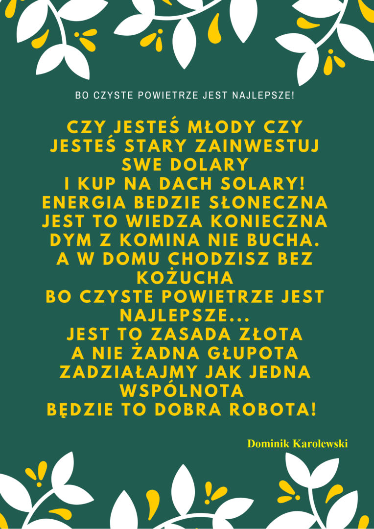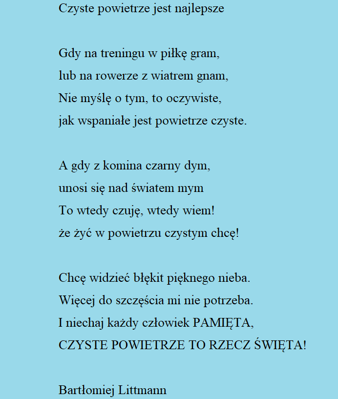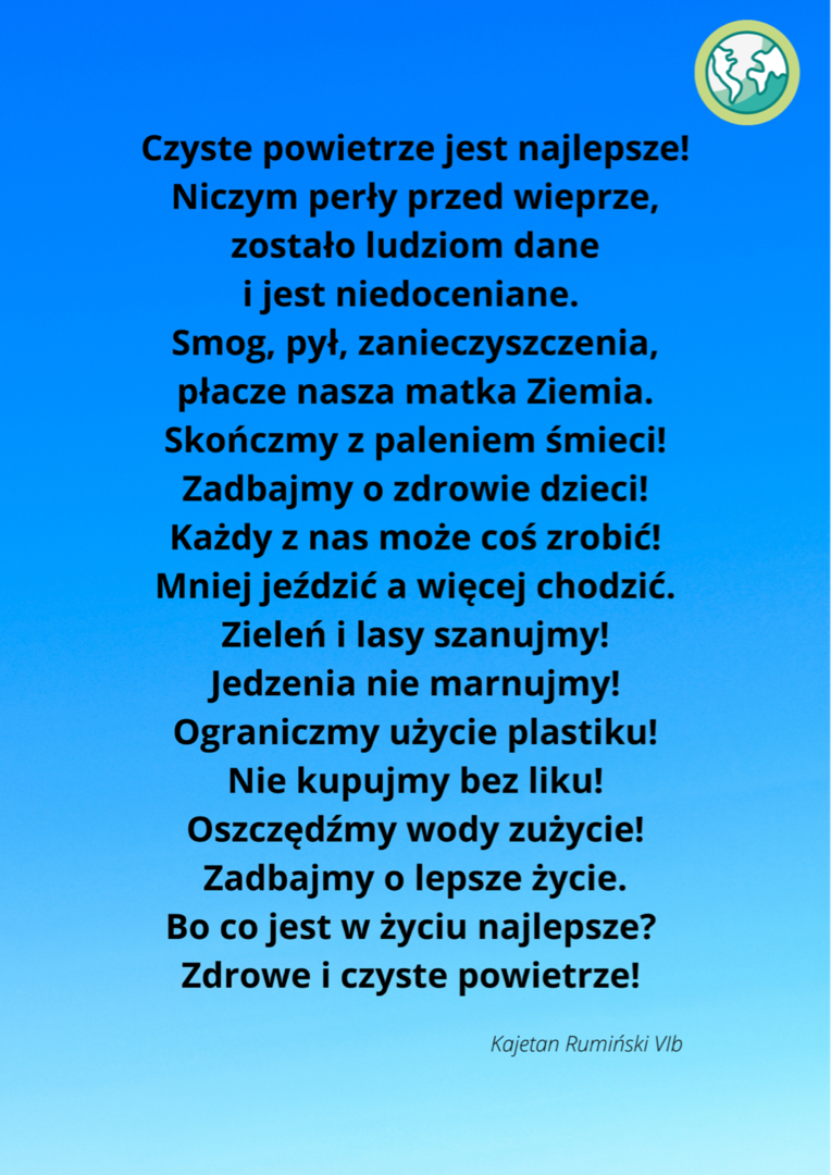 Uczniowie klas IV-VIII mieli napisać krótką fraszkę, rymowankę pt. „Czyste