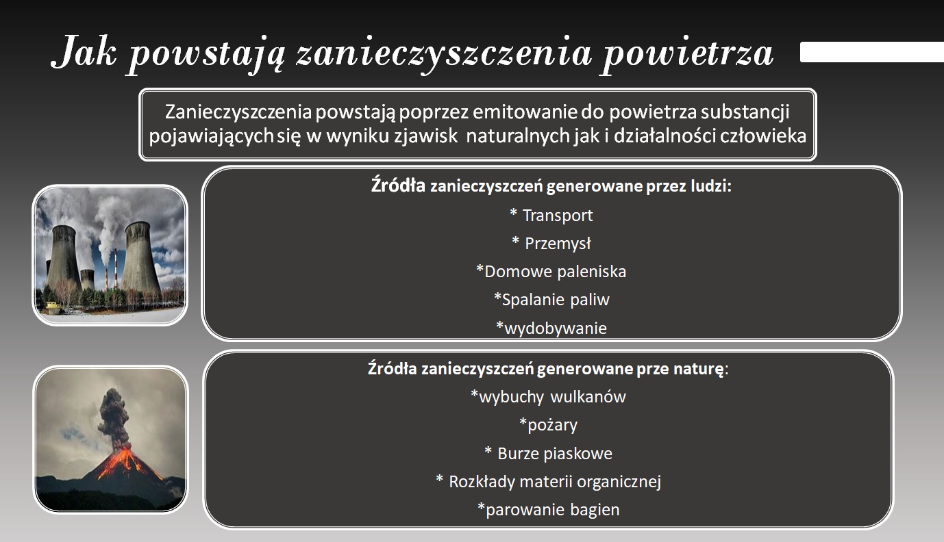 i jak wyglądają, jakie jest ich znaczenie w przyrodzie, co to jest skala porostowa i jak ją stosować, co to jest smog i jak zanieczyszczenia powietrza wpływają na układ oddechowy, również jako przyczyna raka płuc.