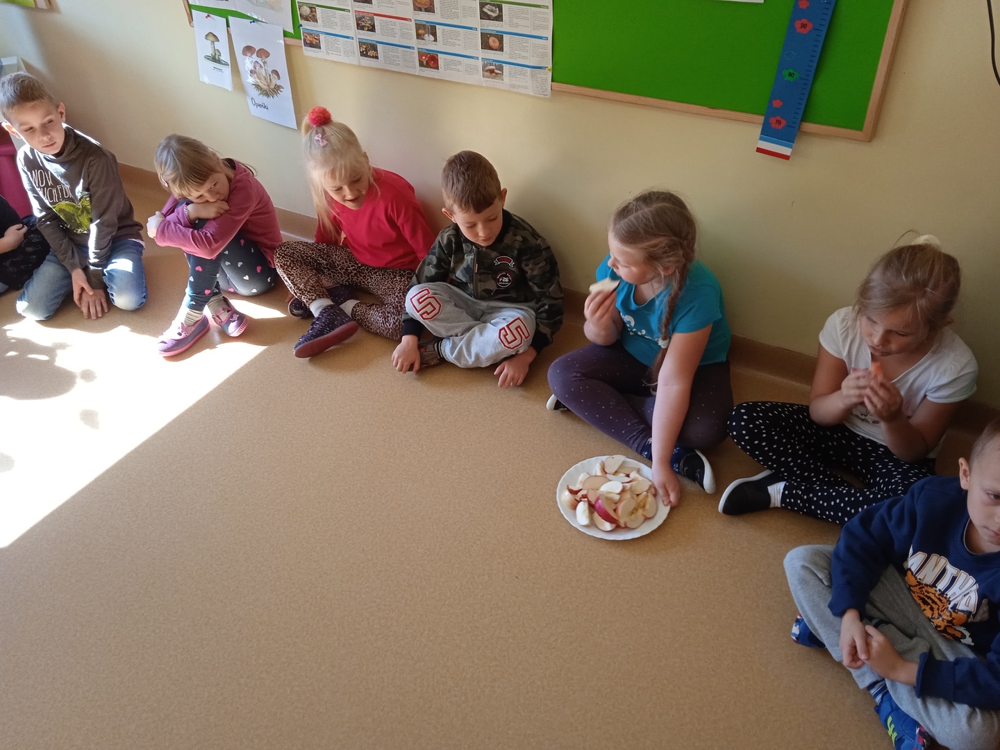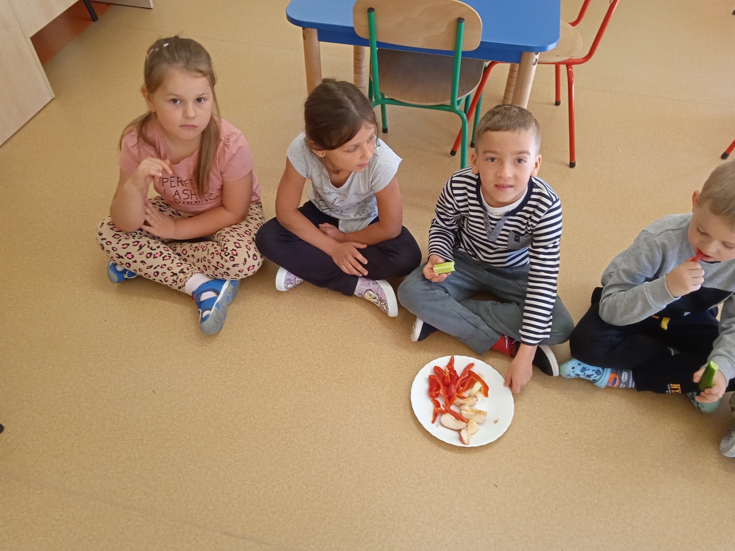 W ostatnim tygodniu września dzieci z oddziału przedszkolnego rozmawiały na temat jesieni w sadzie. W związku z tym przedszkolaki poszły do sklepu spożywczego i robiły zakupy.