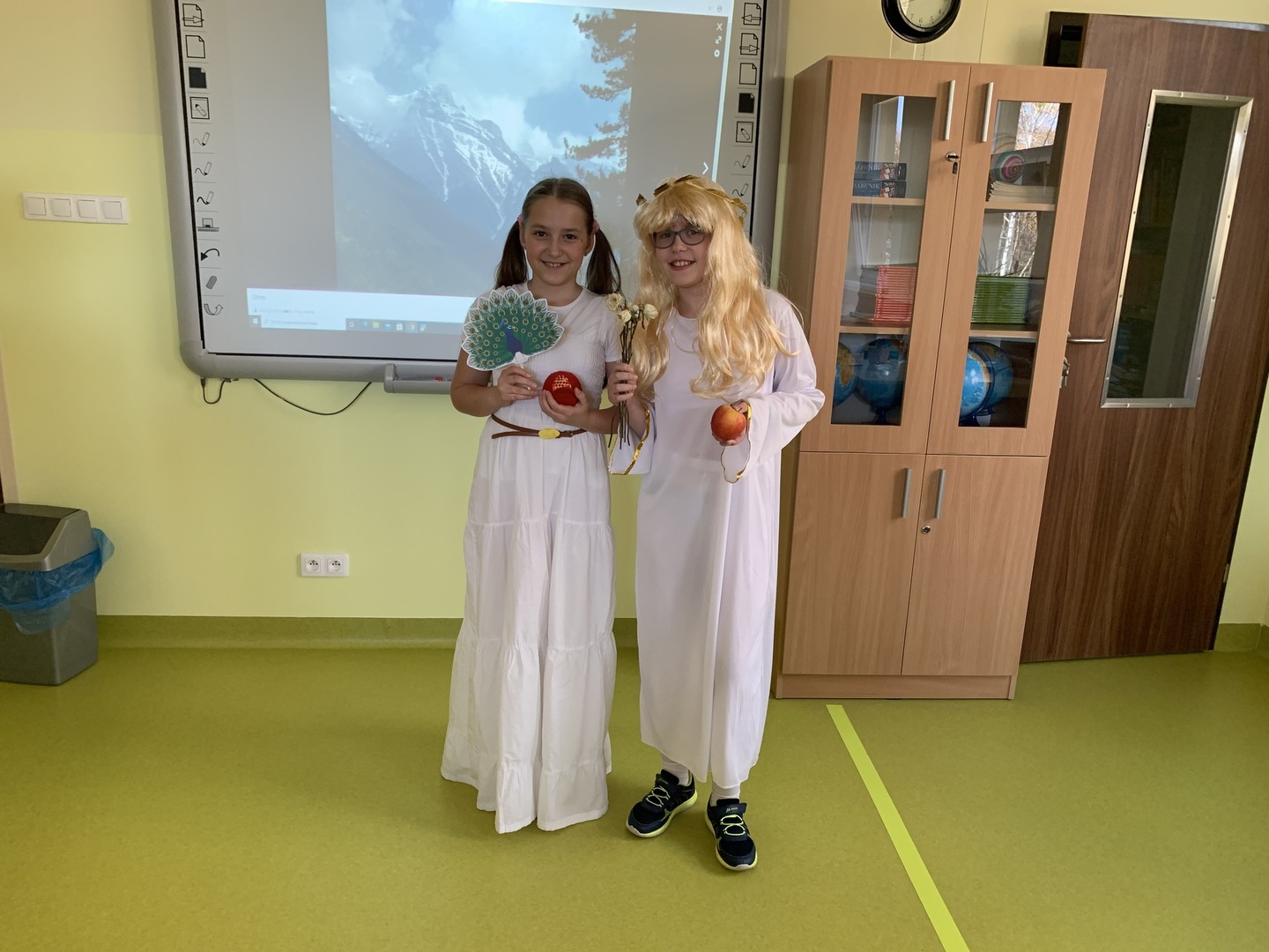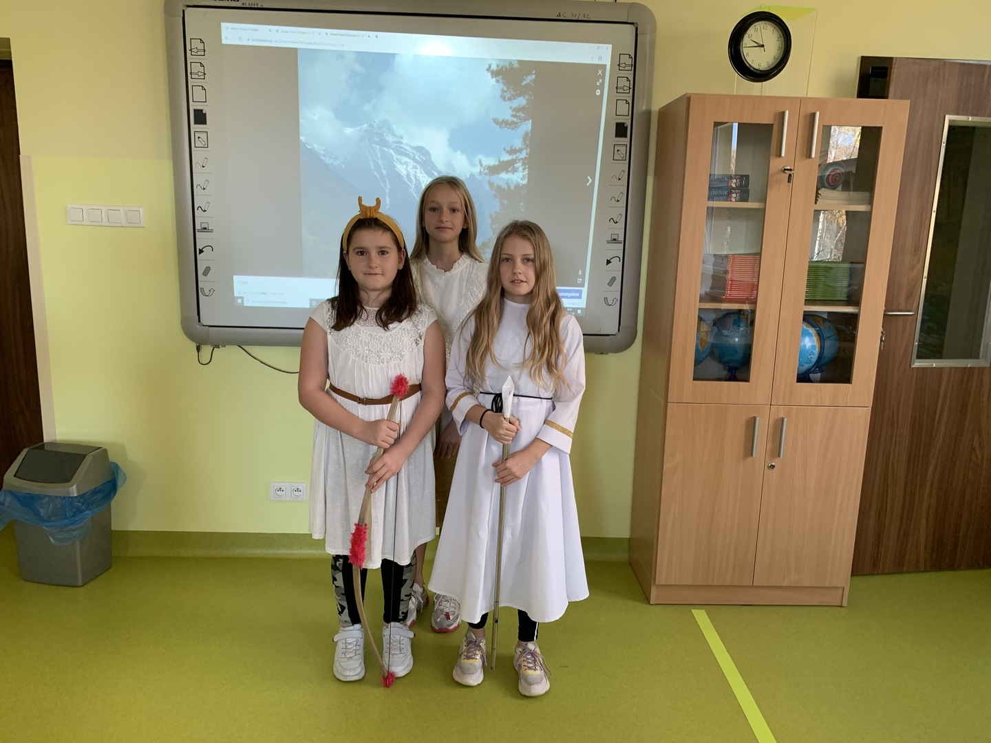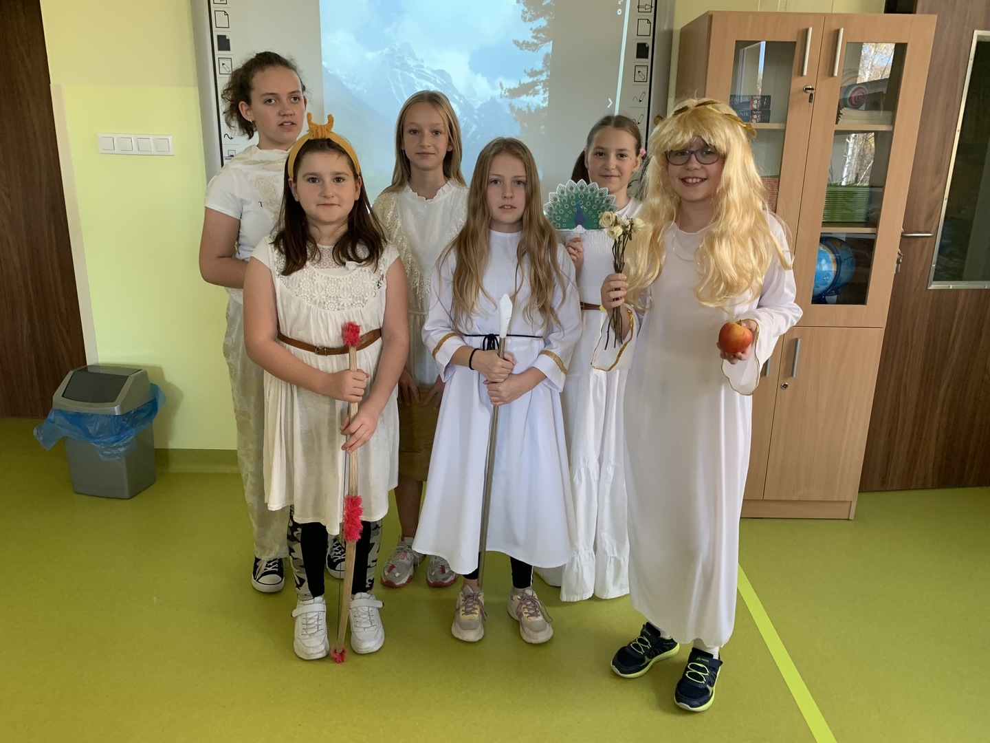W dniu 3 listopada uczniowie klasy piątej na chwilę zamienili się w bogów starożytnej Grecji i zamieszkali … na Olimpie. Każdy wybrał postać, na temat której zgromadził informacje. Należało także przygotować strój i atrybuty dla swojego bohatera. Punktem kulminacyjnym projektu była prezentacja na forum klasy.