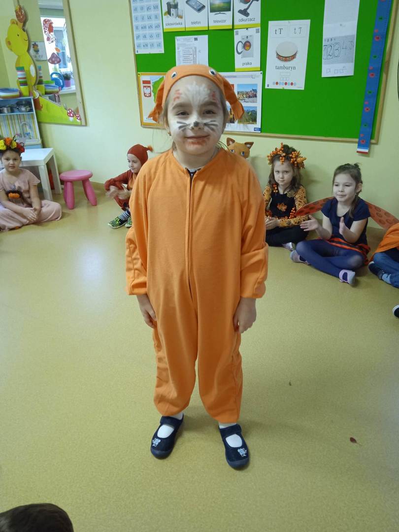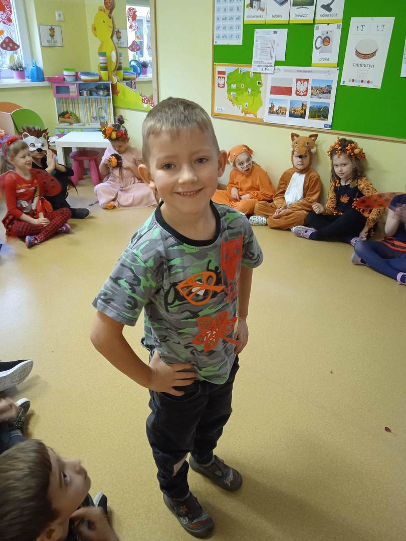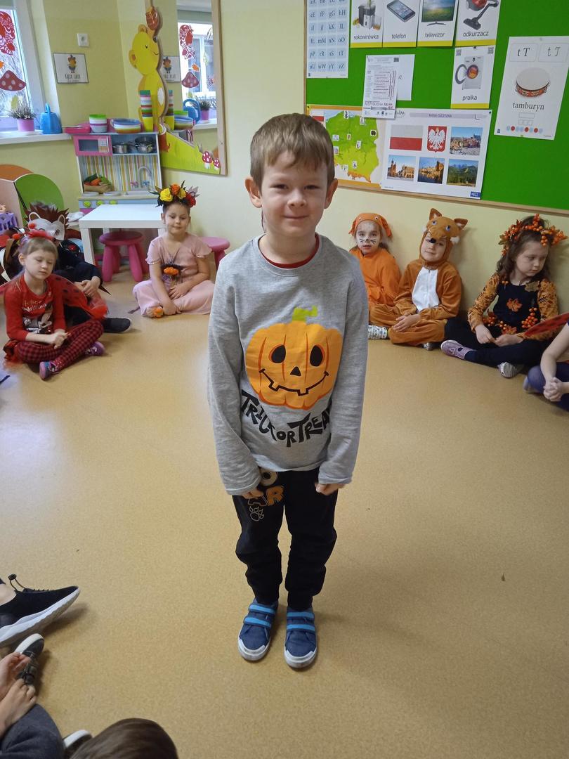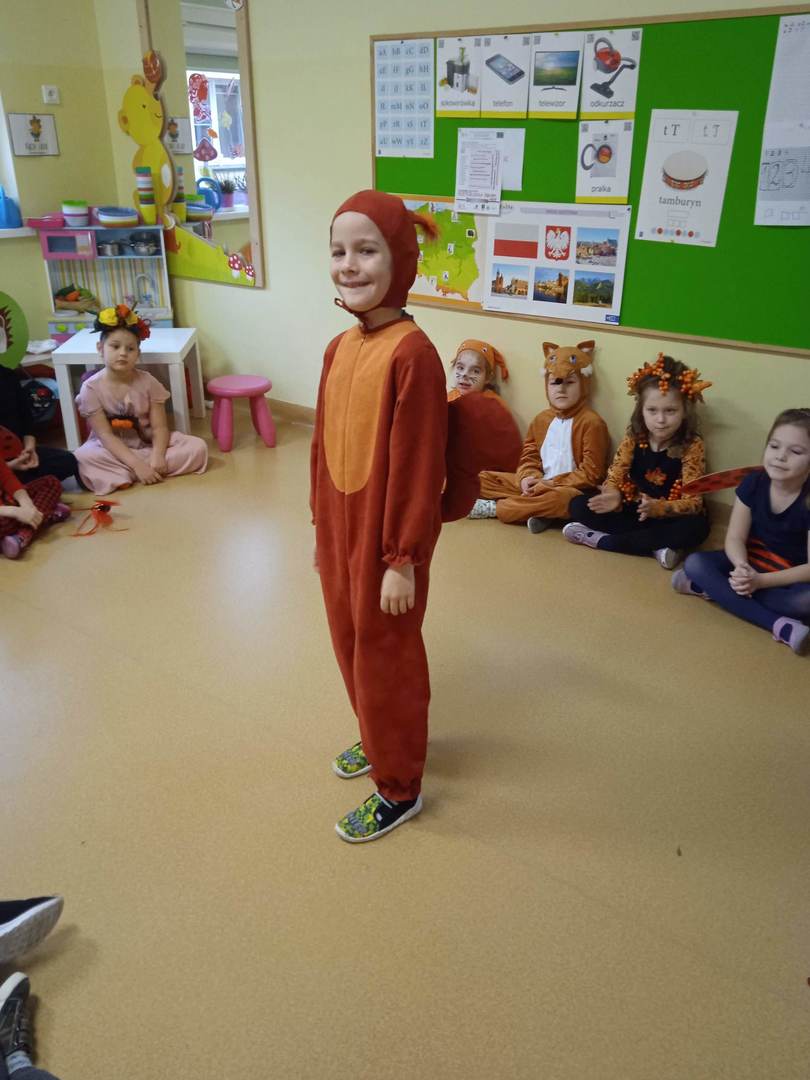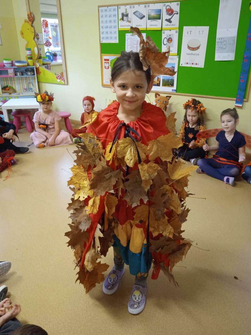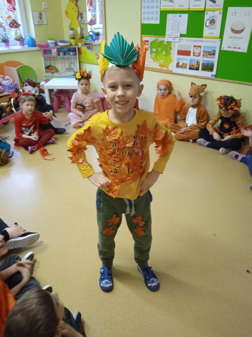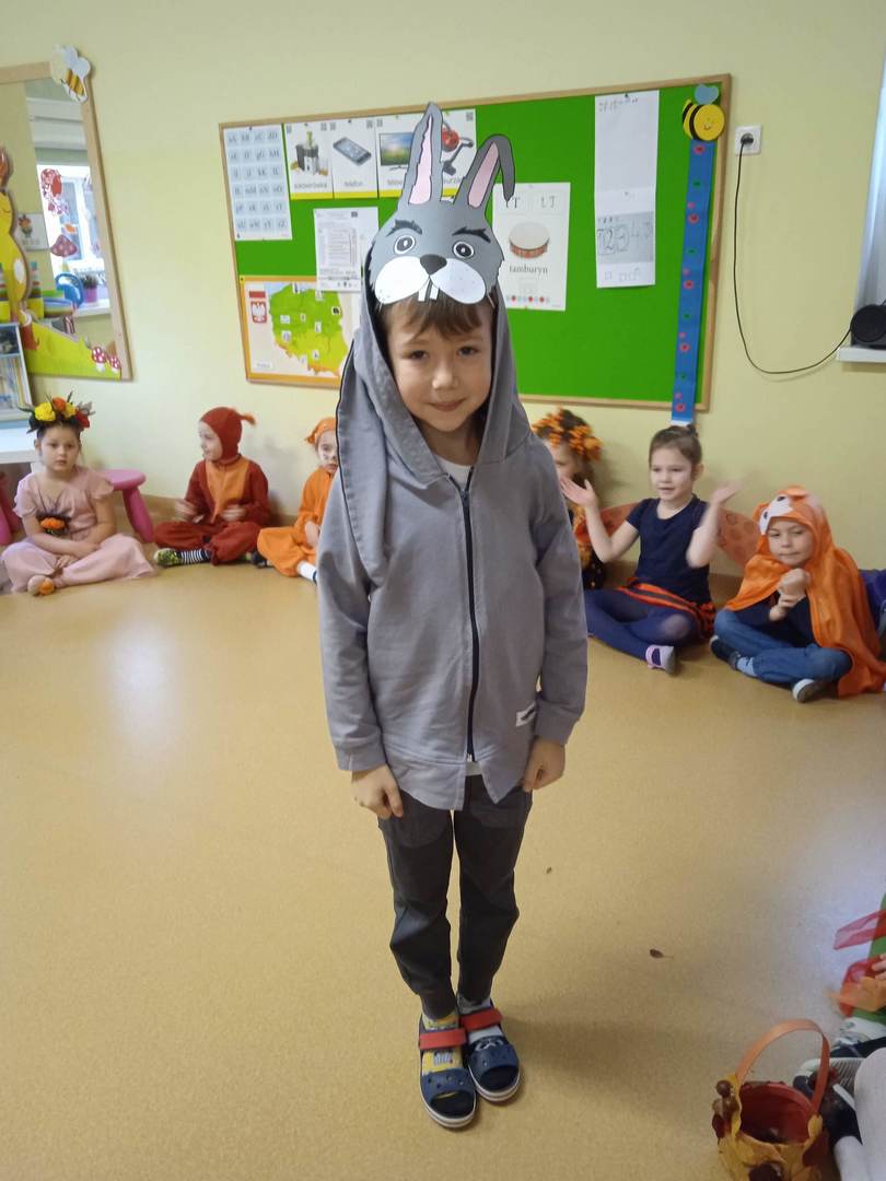 W dniu 15 listopada 2021 r. w Oddziałach Przedszkolnych odbył się ,,Bal Pani Jesieni”. Dzieci tego dnia były przepięknie ubrane w stroje w kolorach jesieni, w koronach z kolorowych liści, w jarzębinowych koralach. Tak przygotowane powitały wyjątkowego gościa - Panią Jesień, która przygotowała dla przedszkolaków moc atrakcji. Zadbała też, by dla wszystkich znalazło się na balu coś ciekawego, była gimnastyka umysłu - dzieci rozwiązywały quiz o tematyce jesiennej, podczas którego utrwalały zdobyte wiadomości. Były również zagadki na rozpoznanie darów jesieni, warzyw i owoców jesiennych.