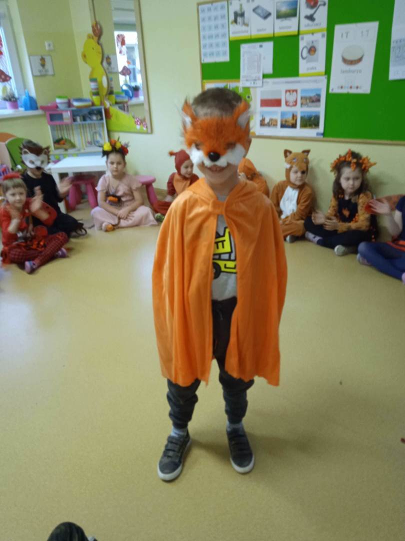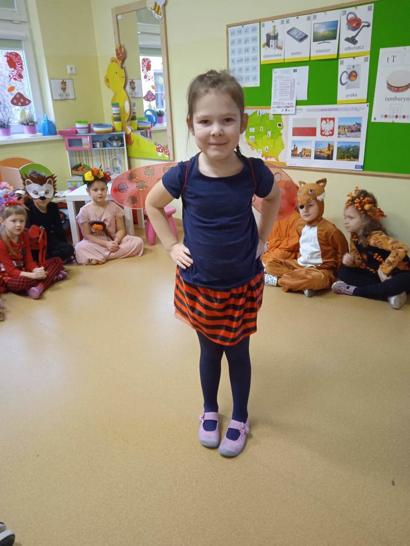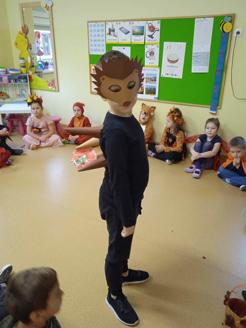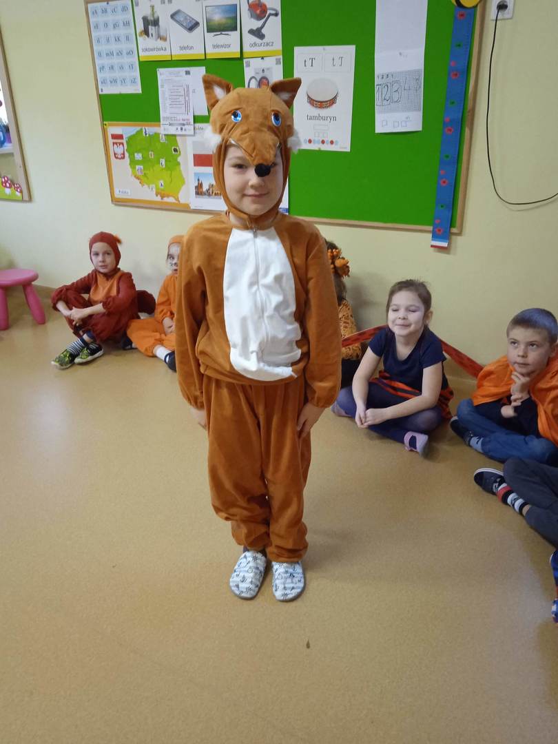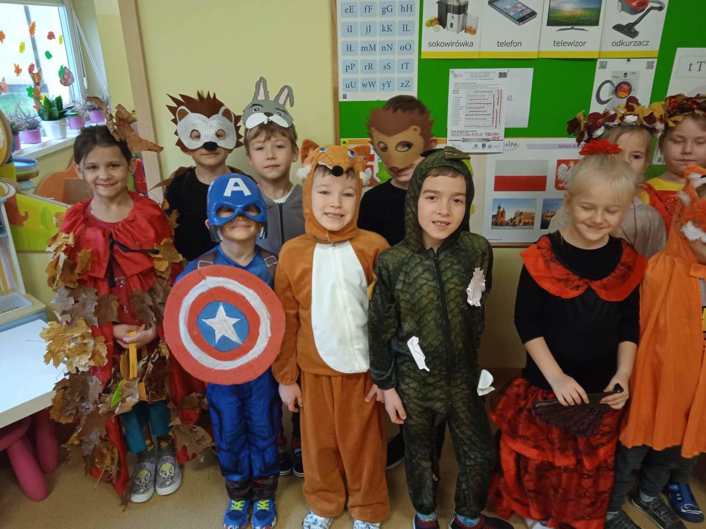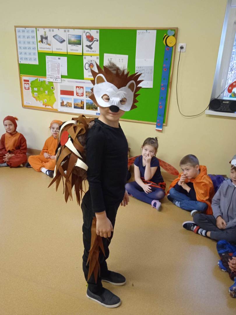 W dniu 15 listopada 2021 r. w Oddziałach Przedszkolnych odbył się ,,Bal Pani Jesieni”. Dzieci tego dnia były przepięknie ubrane w stroje w kolorach jesieni, w koronach z kolorowych liści, w jarzębinowych koralach. Tak przygotowane powitały wyjątkowego gościa - Panią Jesień, która przygotowała dla przedszkolaków moc atrakcji. Zadbała też, by dla wszystkich znalazło się na balu coś ciekawego, była gimnastyka umysłu - dzieci rozwiązywały quiz o tematyce jesiennej, podczas którego utrwalały zdobyte wiadomości. Były również zagadki na rozpoznanie darów jesieni, warzyw i owoców jesiennych.