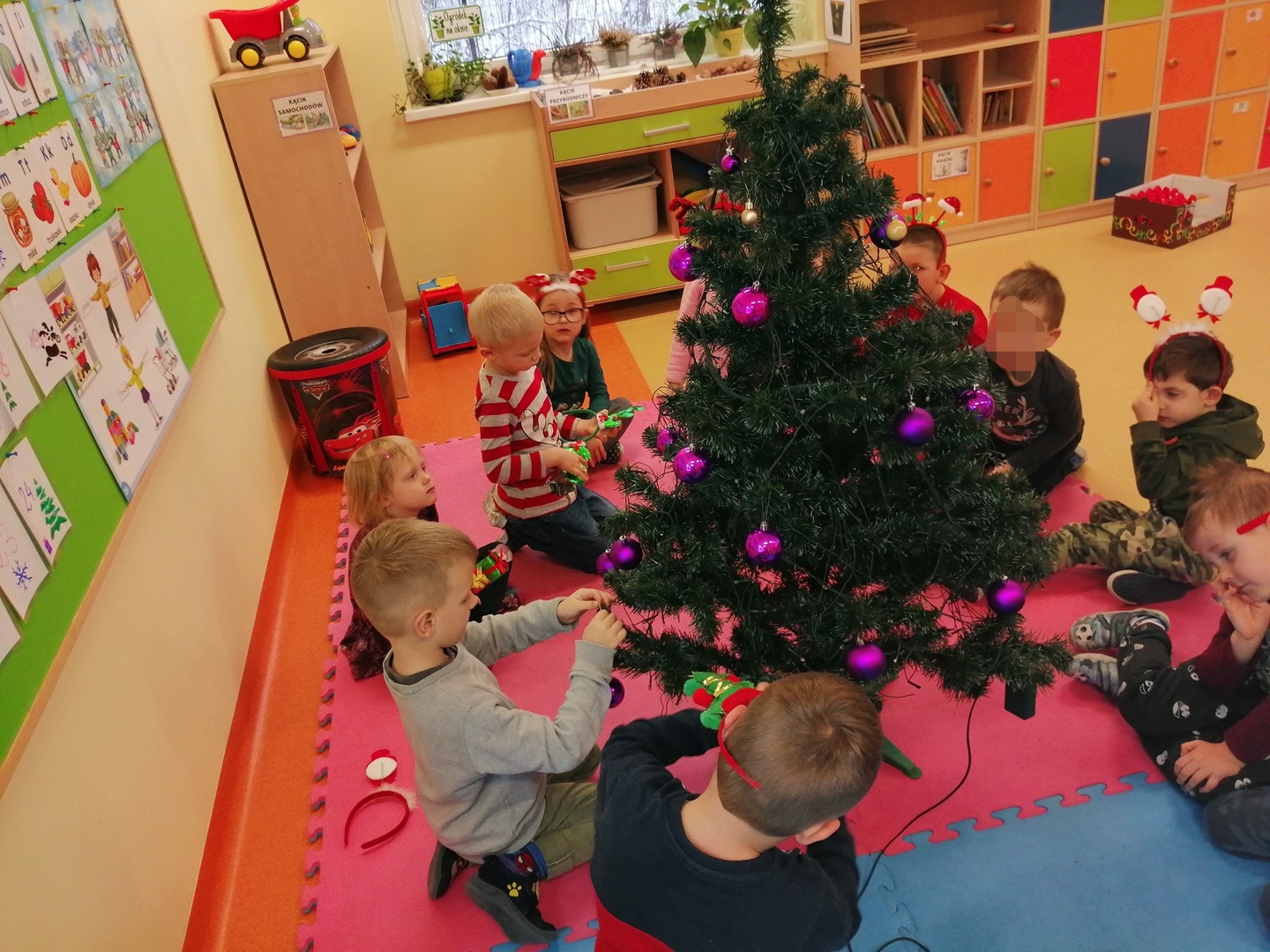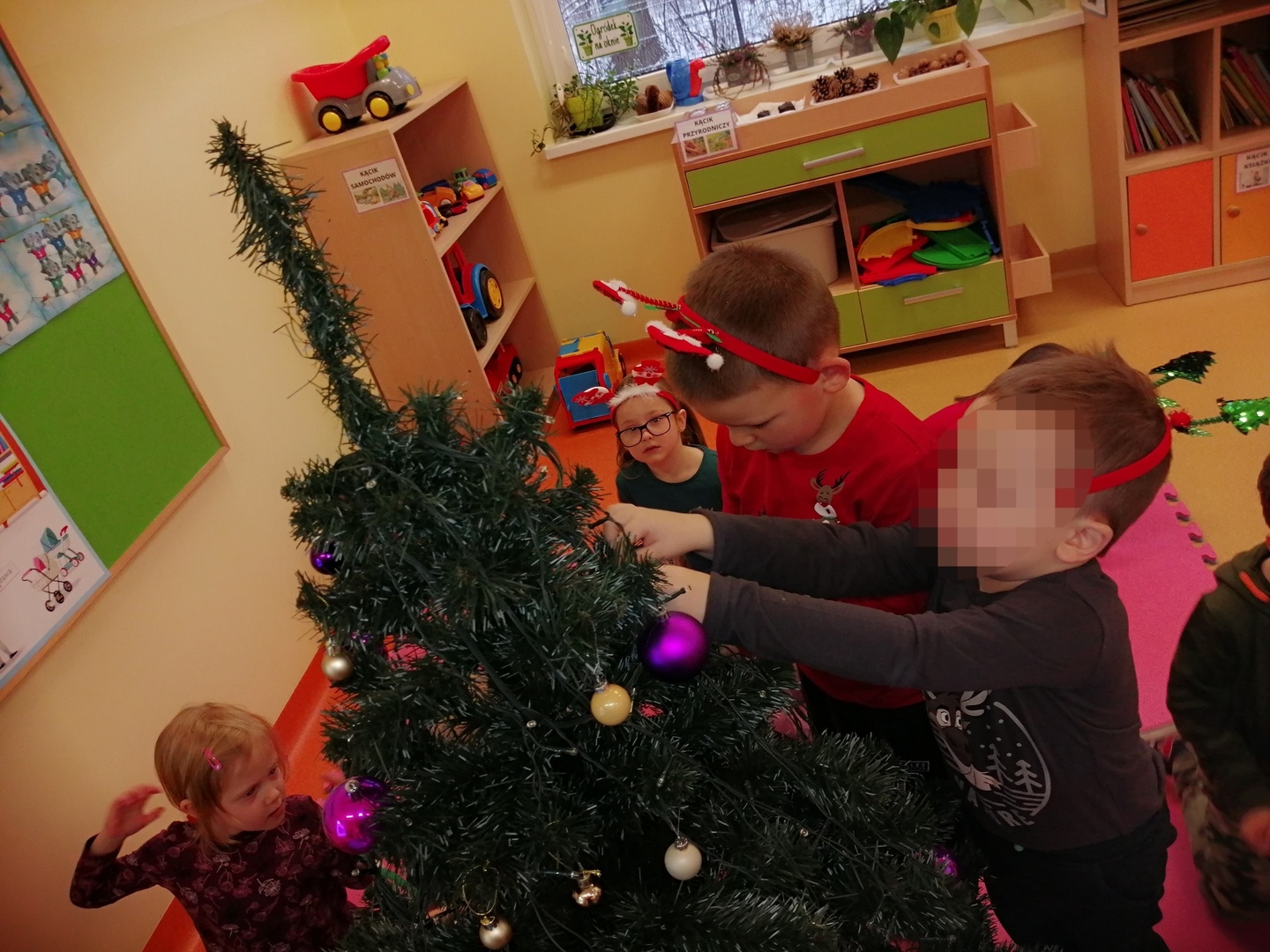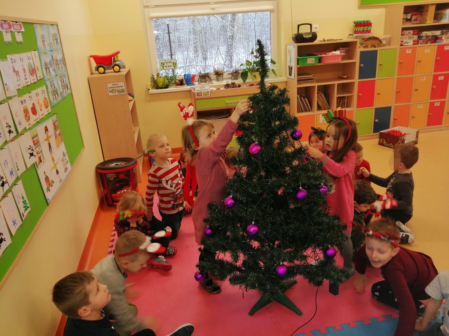 W naszym przedszkolu również nie mogło zabraknąć tak ważnego wydarzenia. 6 grudnia, czekając na odwiedziny Mikołaja, przedszkolaki z zapałem dekorowały klasę na przyjście tak zacnego gościa. Ubierały choinkę: zawieszały bombki, łańcuchy oraz kolorowe światełka. Świąteczne drzewko wygląda prześlicznie.