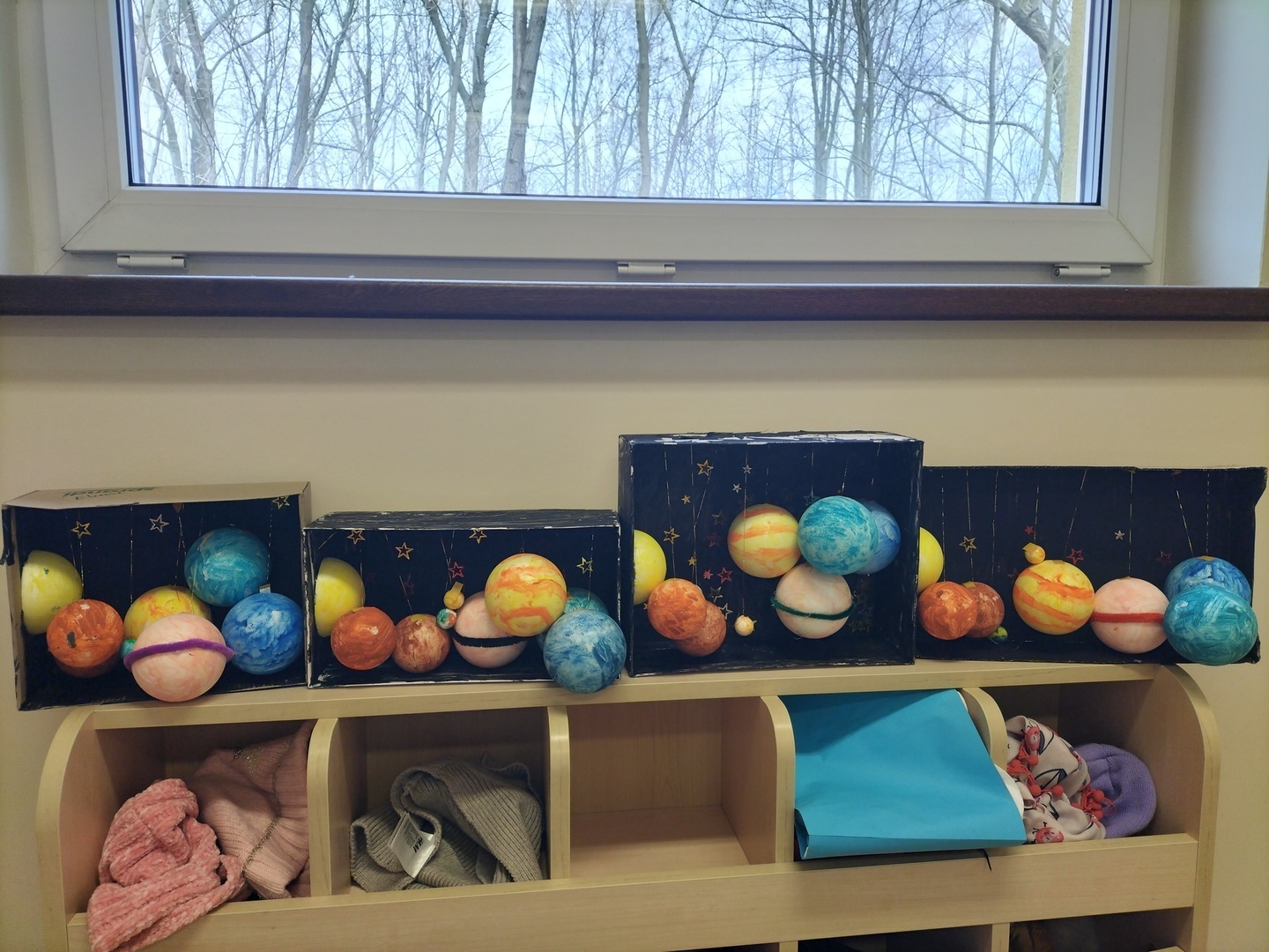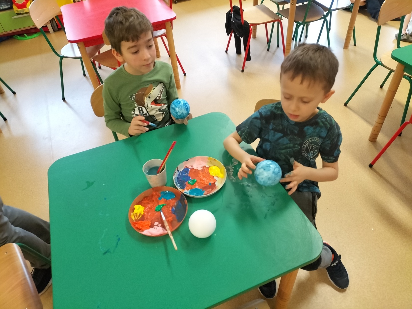 W ramach tygodniowej tematyki przedszkolaki z grupy "Malinki" rozpoczęły kolejny temat, który ich bardzo zaciekawił - KOSMOS i UKŁAD SŁONECZNY.