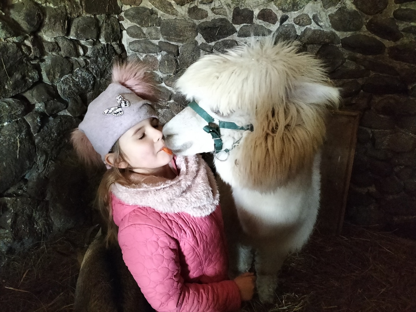 Alpakoterapia, w której uczestniczyły przedszkolaki , to forma zooterapii, polegająca na bezpośrednim kontakcie ze spokojnie nastawioną do człowieka i ciekawską alpaką. Karmienie, przytulanie, głaskanie tych zwierząt odpręża, wycisza i nastraja pozytywnie do życia. Ich futerka są ciepłe i miękkie w dotyku, dzięki czemu kontakt z nim obniża poziom lęku i stresu.