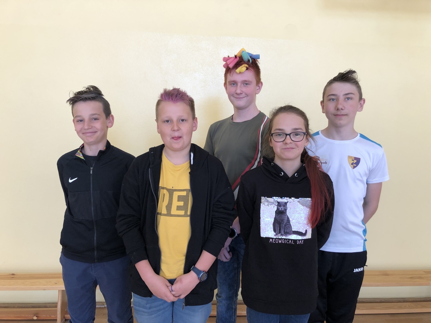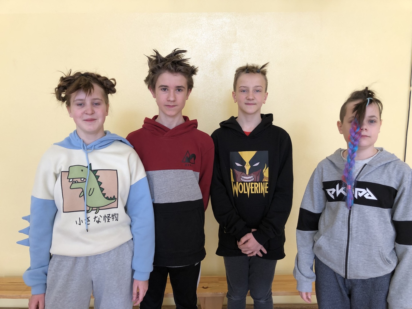 W naszej szkole nie można się nudzić! Samorząd Uczniowski zaskoczył wszystkich pomysłem na Dzień Szalonej Fryzury. Oczywiście wielu uczniów podjęło wyzwanie - okazało się, że we włosy można wpleść na przykład pędzle, usztywnić je, wyglądając niczym troll i ubarwić różnymi kolorami oraz niezwykłymi ozdobami.