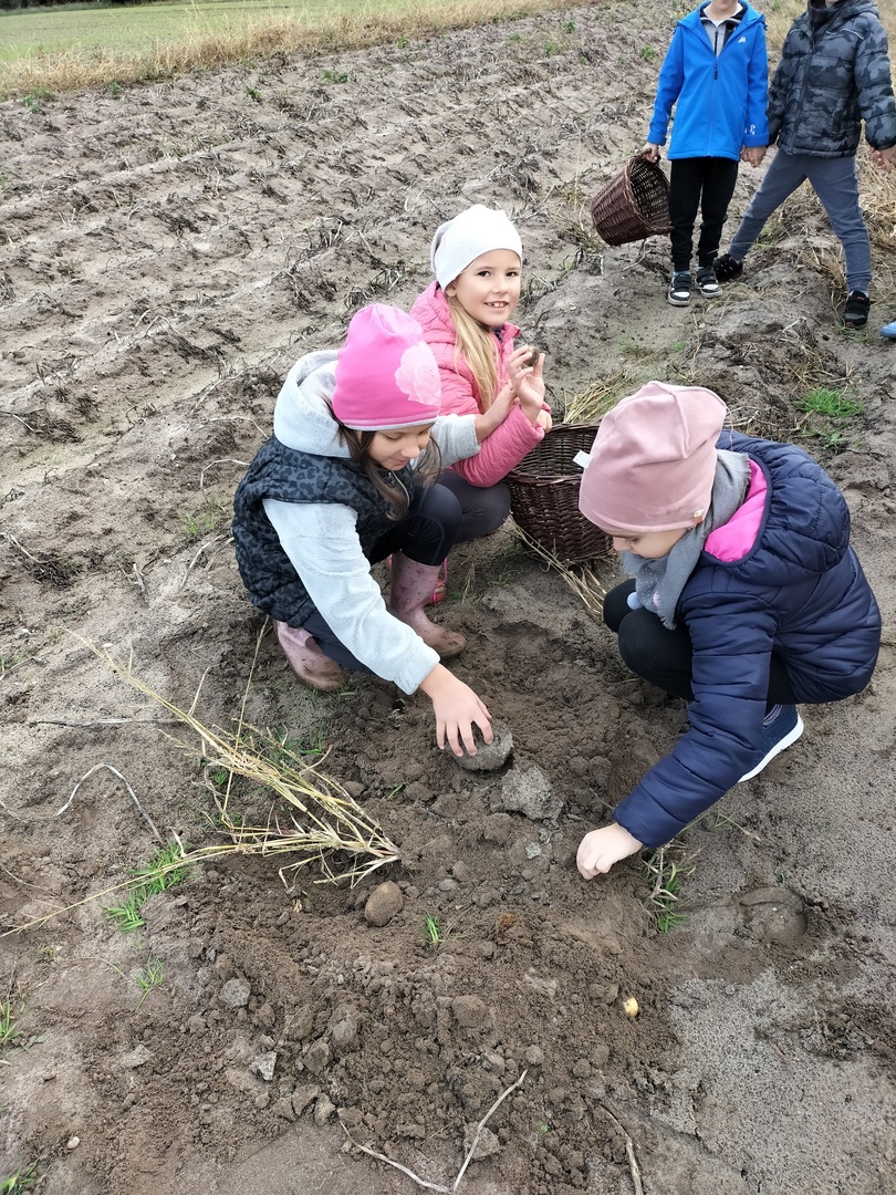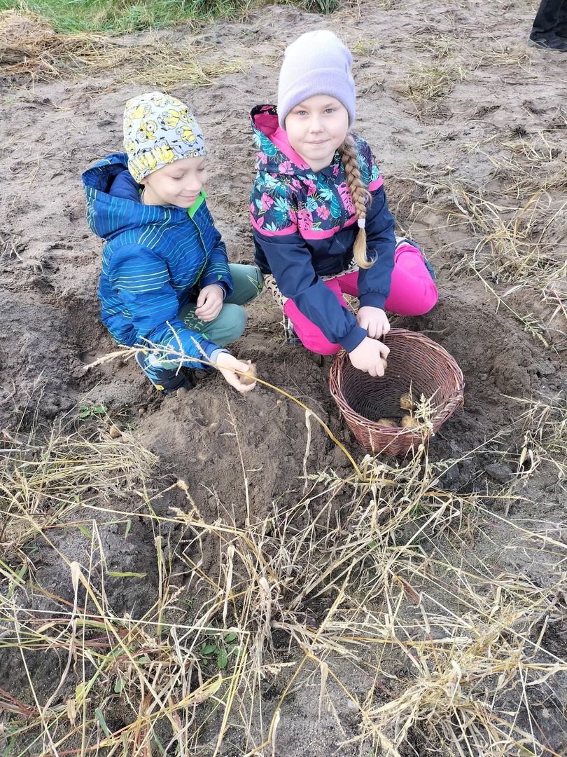 W dniu 5 października uczniowie z klas 1 a i 1 b wybrali się na wycieczkę do Konarzewa zatytułowaną ,,Kopanie ziemniaków i kiszenie kapusty" .