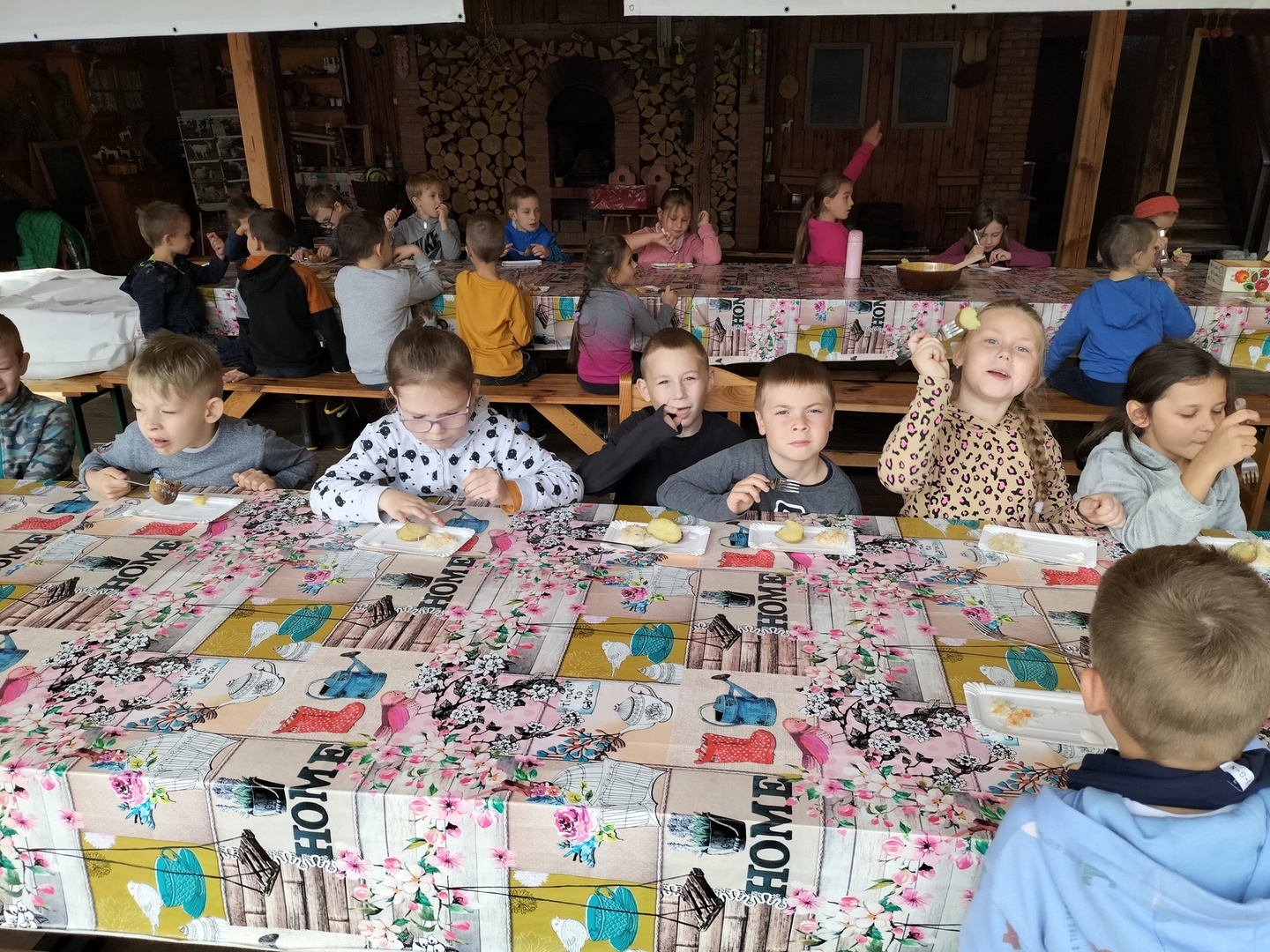 Na zakończenie tej ciekawej wycieczki był zaplanowany poczęstunek: ziemniaki z ogniska i kapusta kiszona przez gospodarzy.