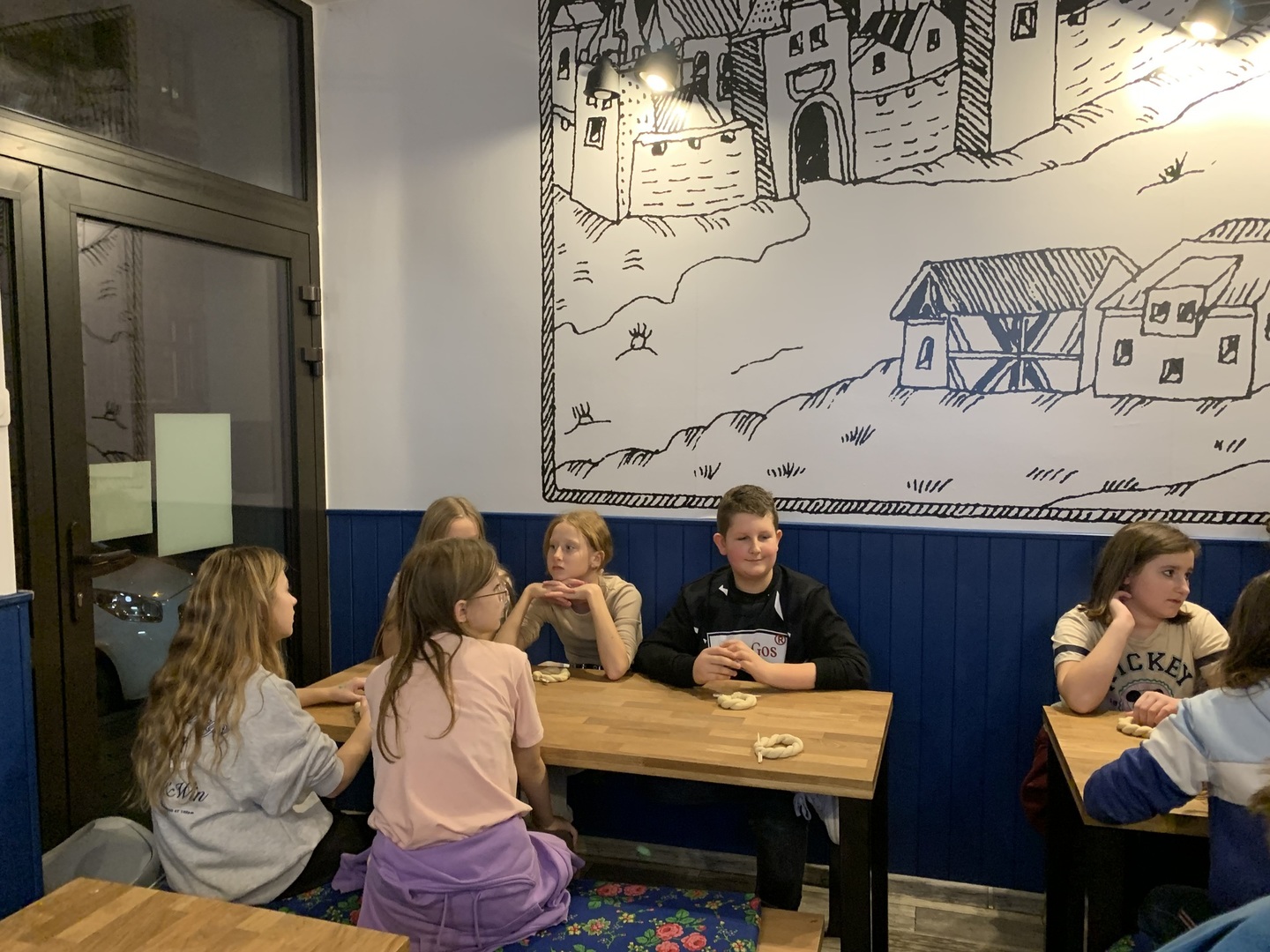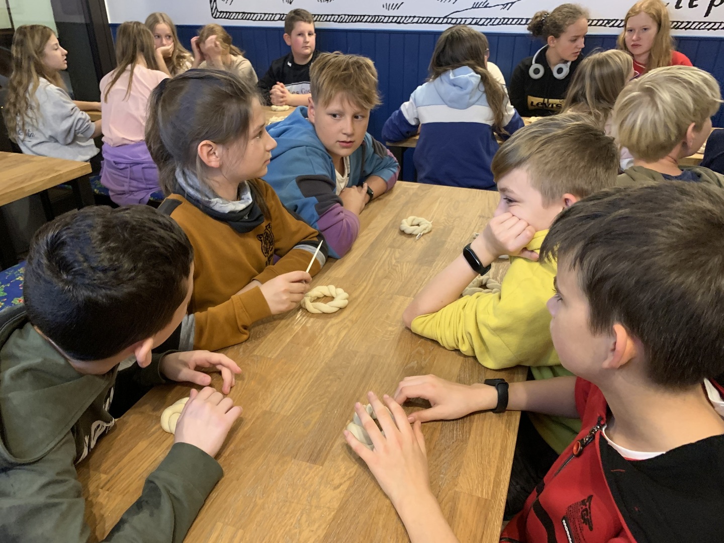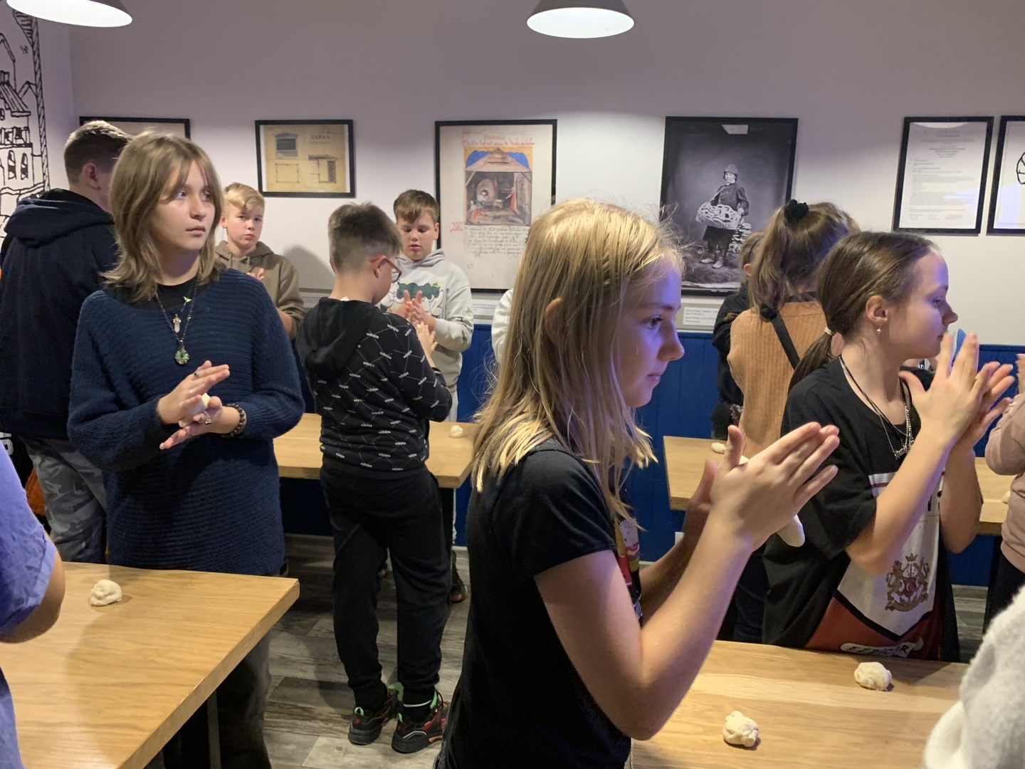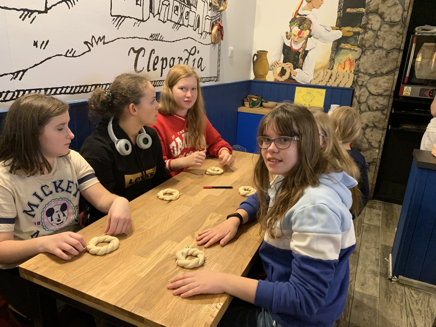 Na zakończenie pełnego wrażeń dnia uczniowie, po zakupieniu pamiątek, uczestniczyli w warsztatach w Żywym Muzeum Obwarzanka, w czasie których poznawali historię tego najbardziej znanego krakowskiego wypieku oraz mogli go samodzielnie wykonać i spróbować swoich ,,dzieł”. Wszyscy świetnie się spisali i otrzymali dyplomy potwierdzające ich umiejętności piekarskie.