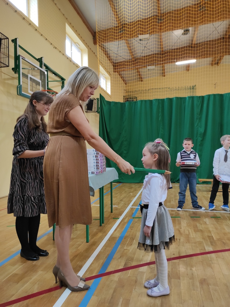 Po części artystycznej nastąpił akt pasowania. Pani Dyrektor przyjęła dzieci do grona społeczności przedszkolnej.