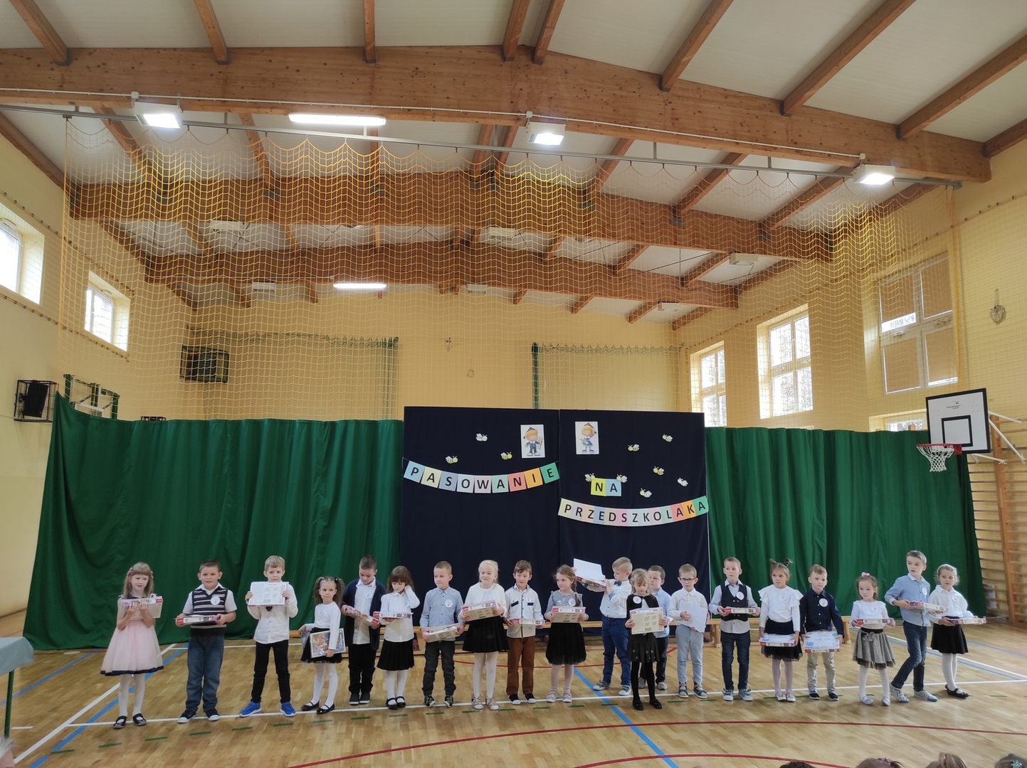 W dniu 26 października 2022 r. odbyła się w naszym przedszkolu uroczystość pasowania na przedszkolaka dzieci z grupy ,,Pszczółki”. Mali artyści zaprezentowali wiersze, piosenki oraz tańce, które zostały przygotowane z dużą starannością pod kierunkiem nauczyciela.