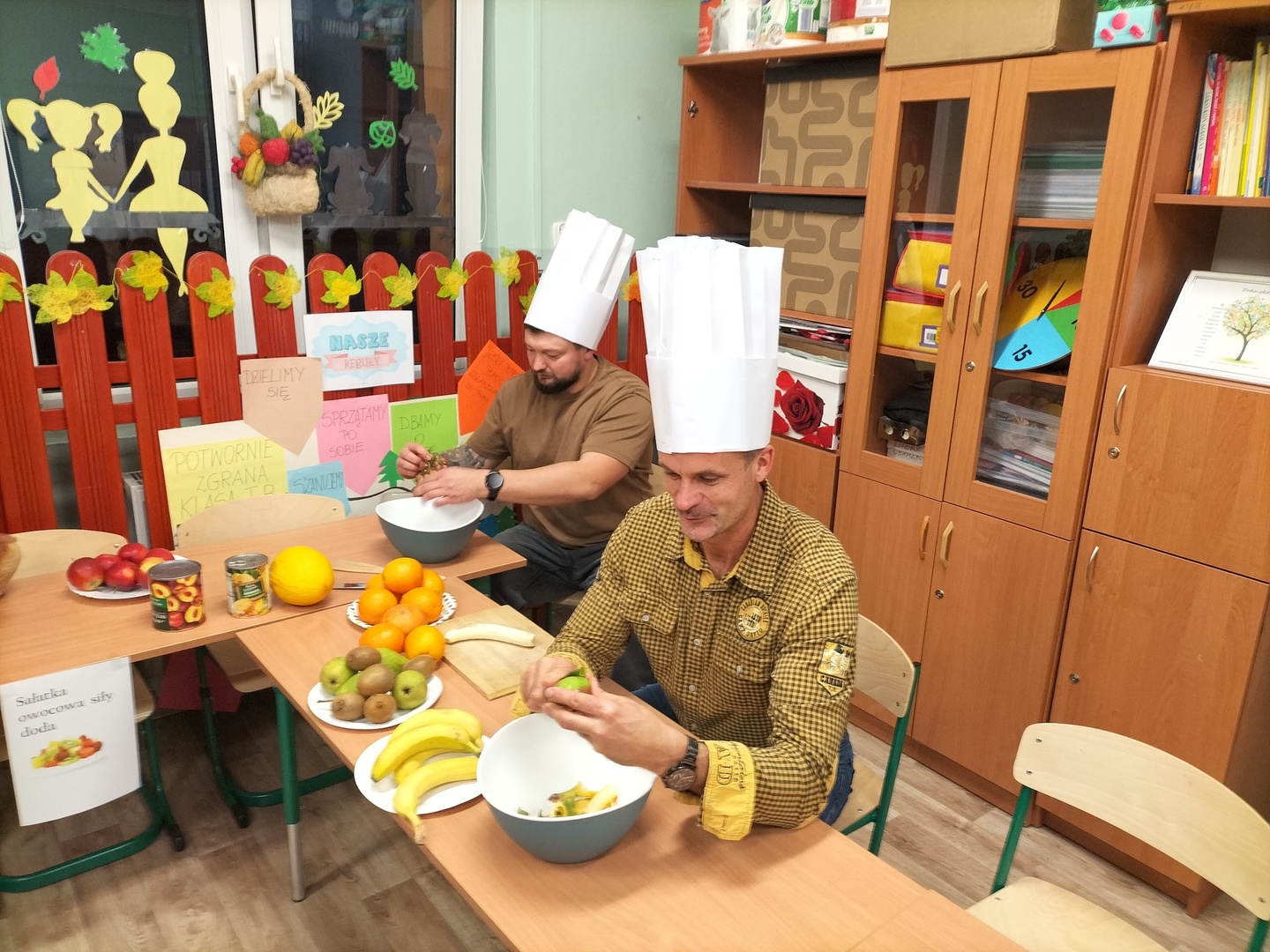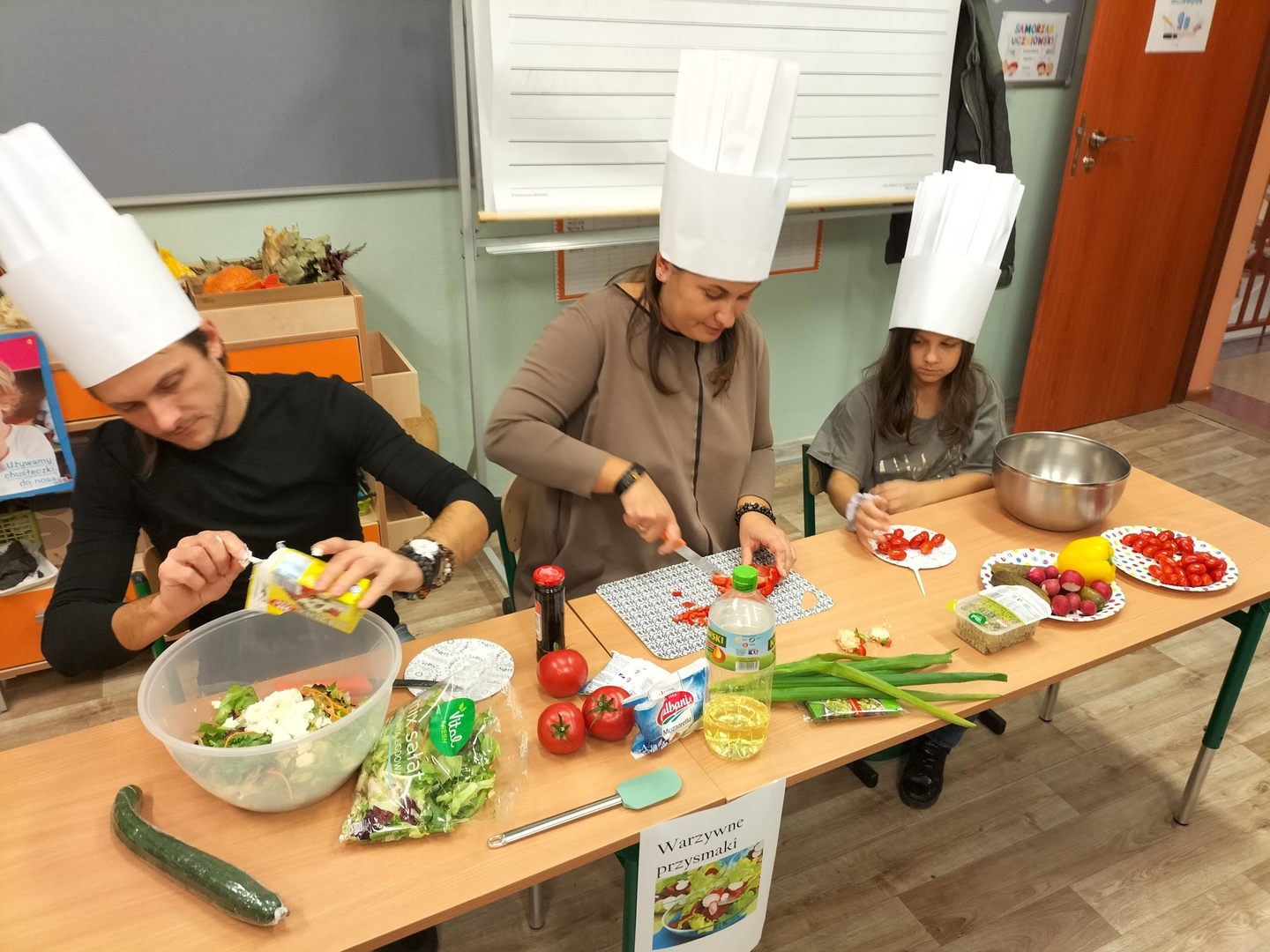 Warto zaznaczyć, że w zajęciach wraz z uczniami uczestniczyli rodzice, którzy kroili zdrowe produkty.