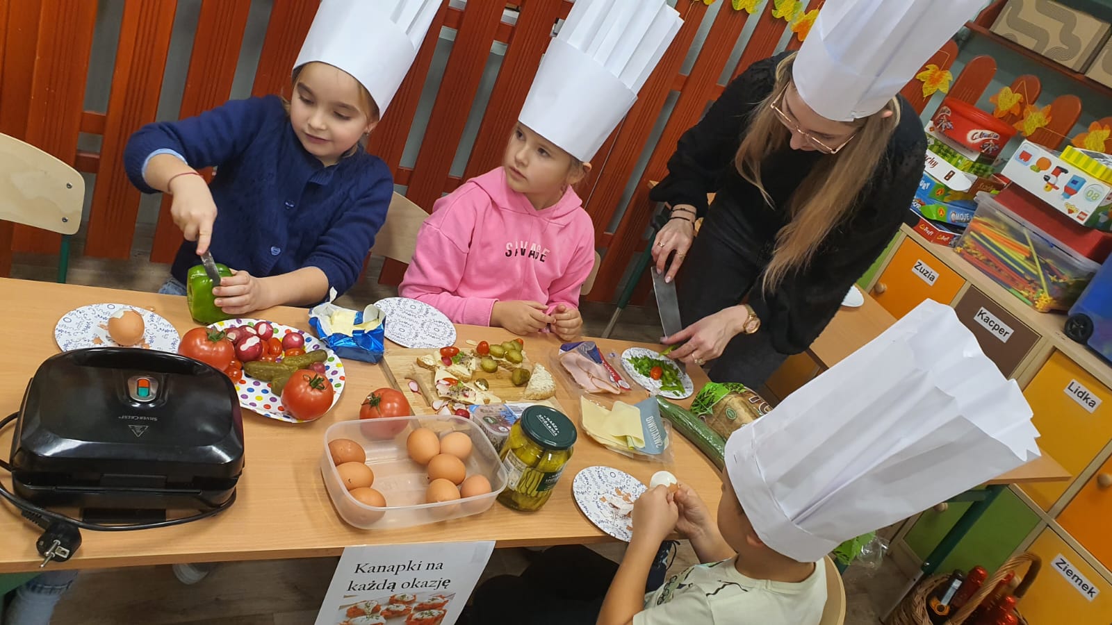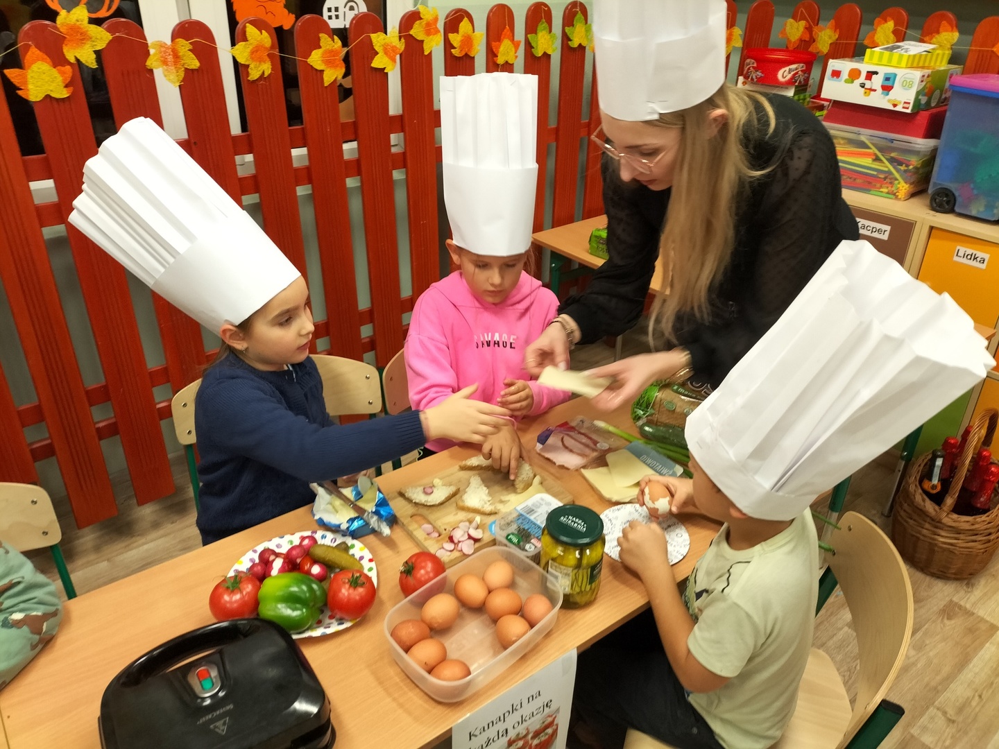 W dniu 8 listopada w klasie Ib odbyły się warsztaty pt. ,,Zdrowo jemy i się integrujemy”. Podczas spotkania uczniowie wykonywali czapki kucharza, a następnie podzieleni na grupy przygotowywali: soki, koktajle, sałatkę warzywną oraz owocową i zdrowe kanapki.