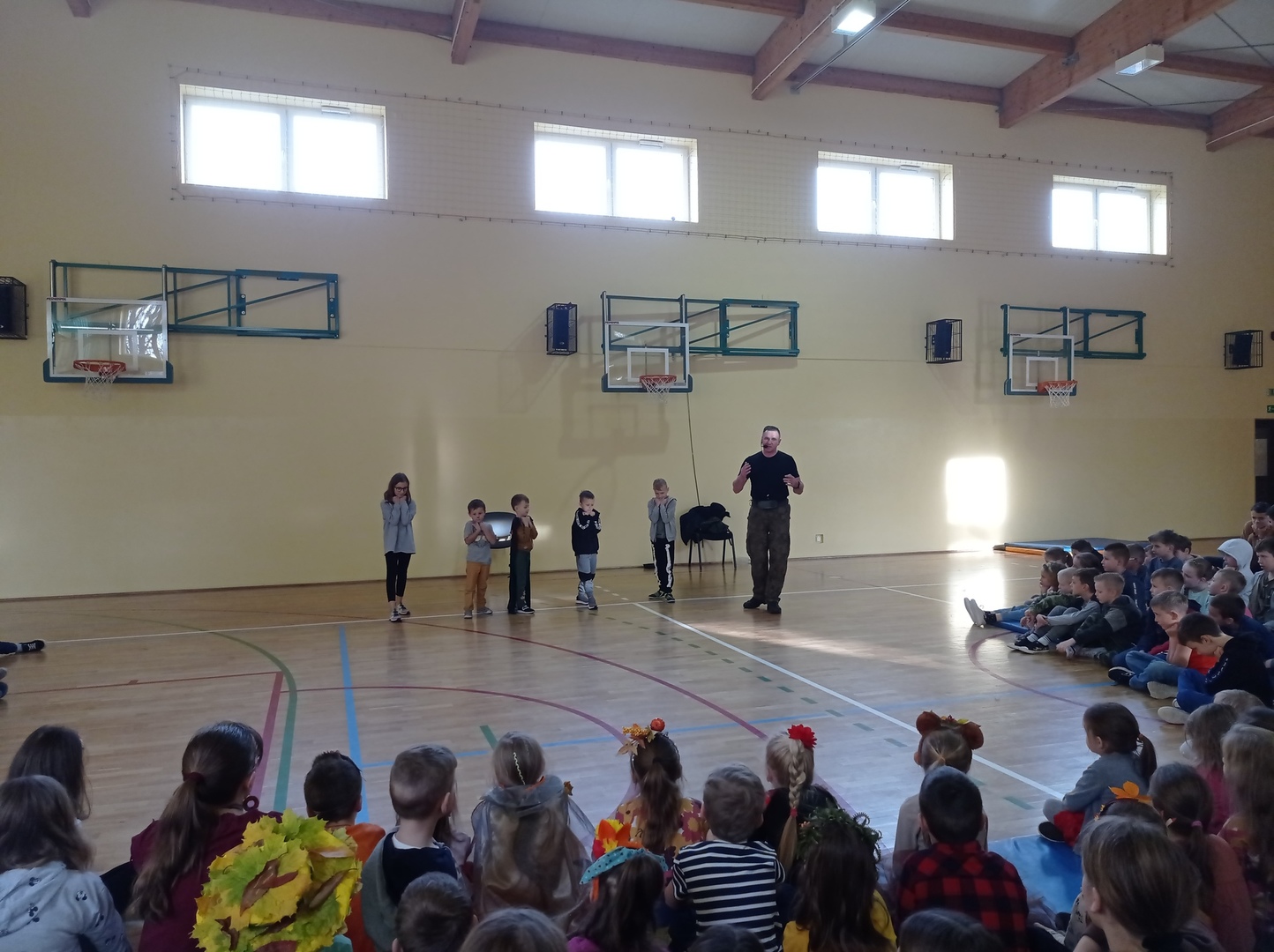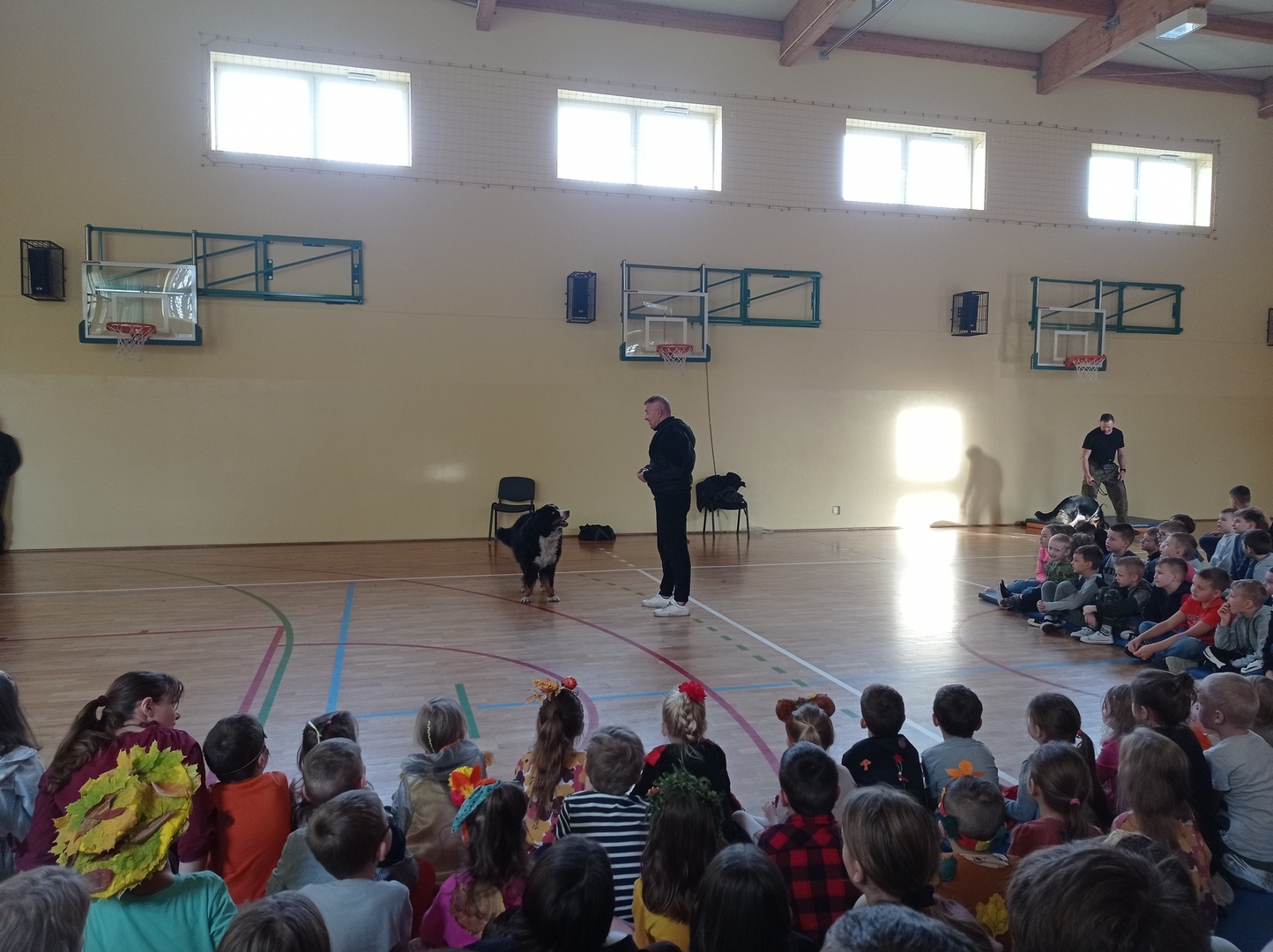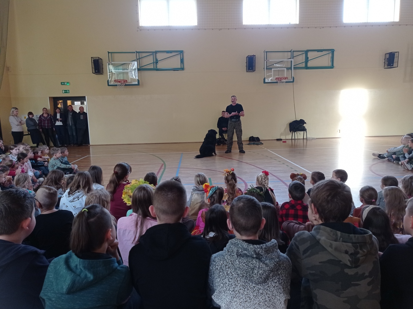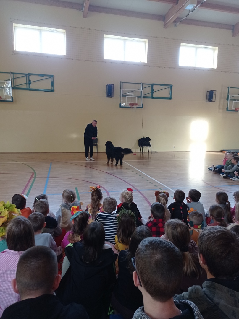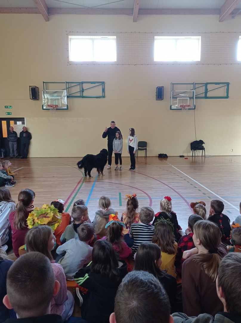 Wiele radości wywołał wśród uczniów interesujący pokaz tresury psa.