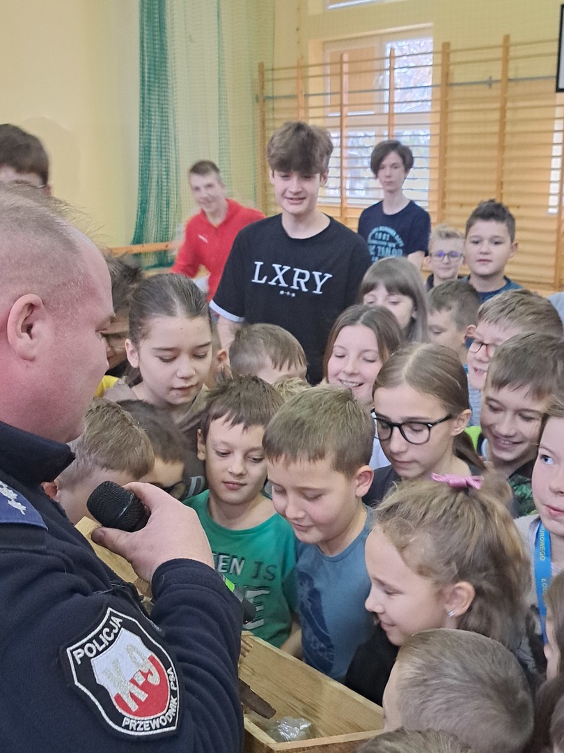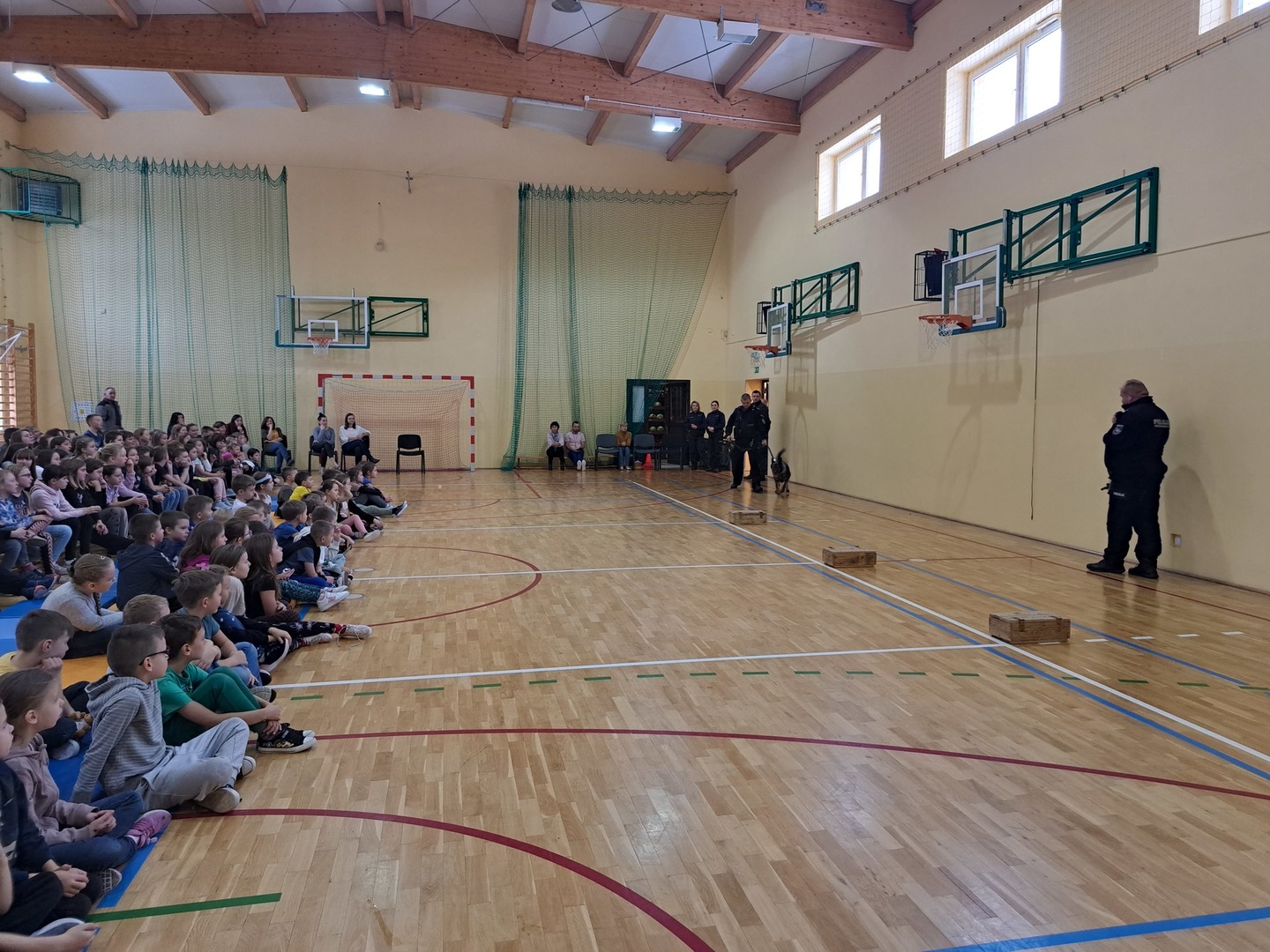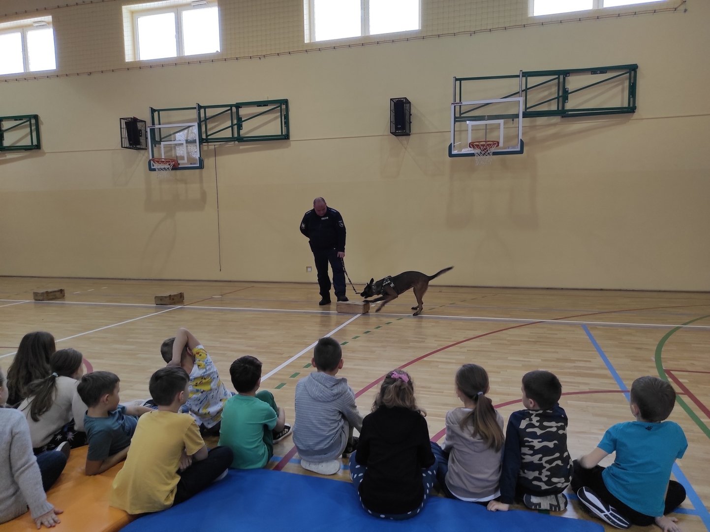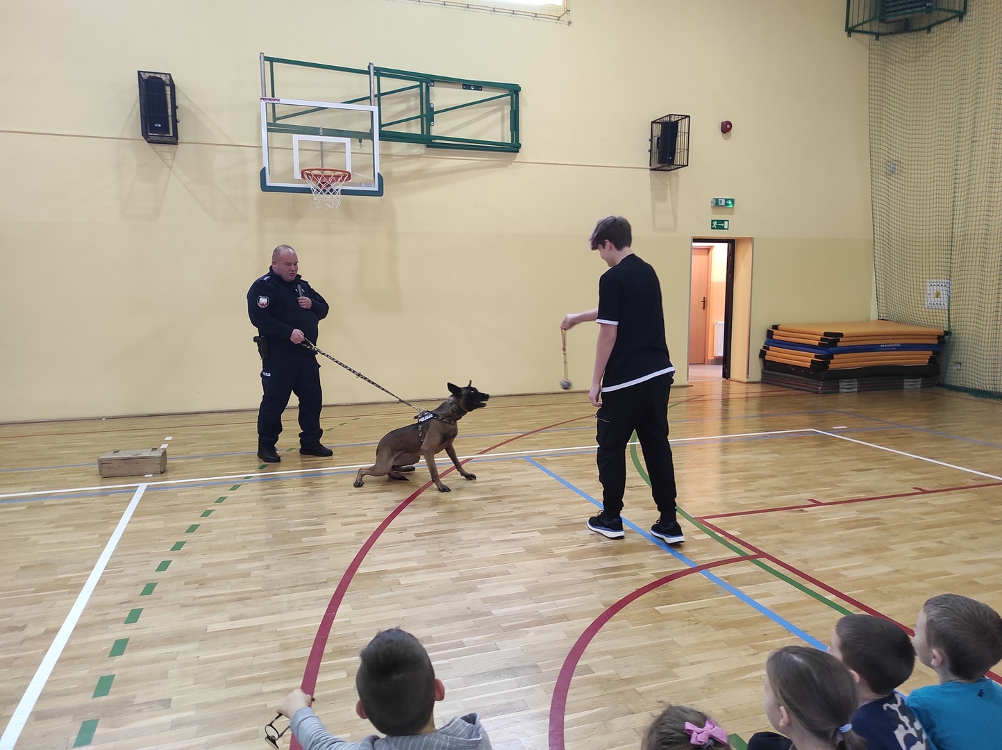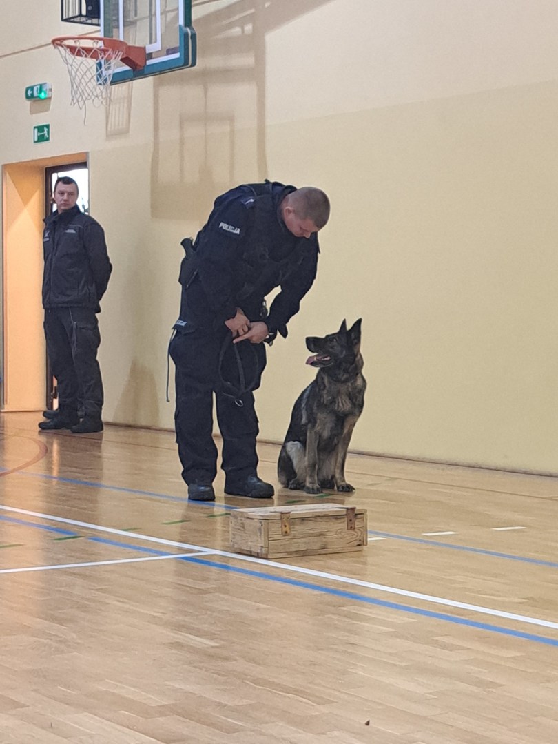 Policjanci opowiadali o swojej pracy oraz szkoleniu czworonogów, a także ostrzegali przed szkodliwością zażywania narkotyków i ich wpływu na funkcjonowanie organizmu człowieka. Uczniowie otrzymali też wskazówki, jak należy zachowywać się podczas ataku psa oraz jakie zachowywać zasady, by bezpiecznie poruszać się po ulicach po zapadnięciu zmroku.