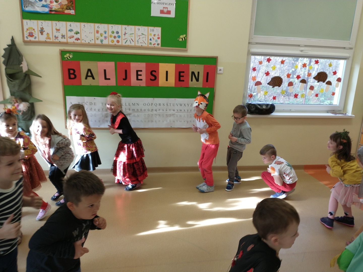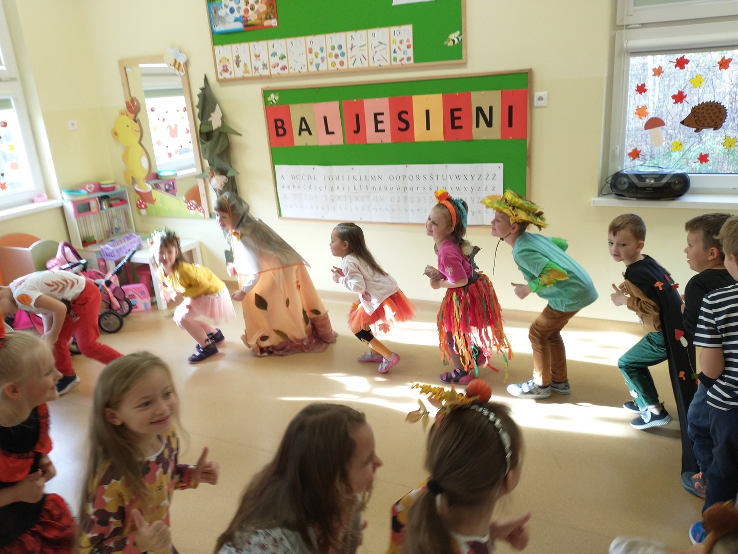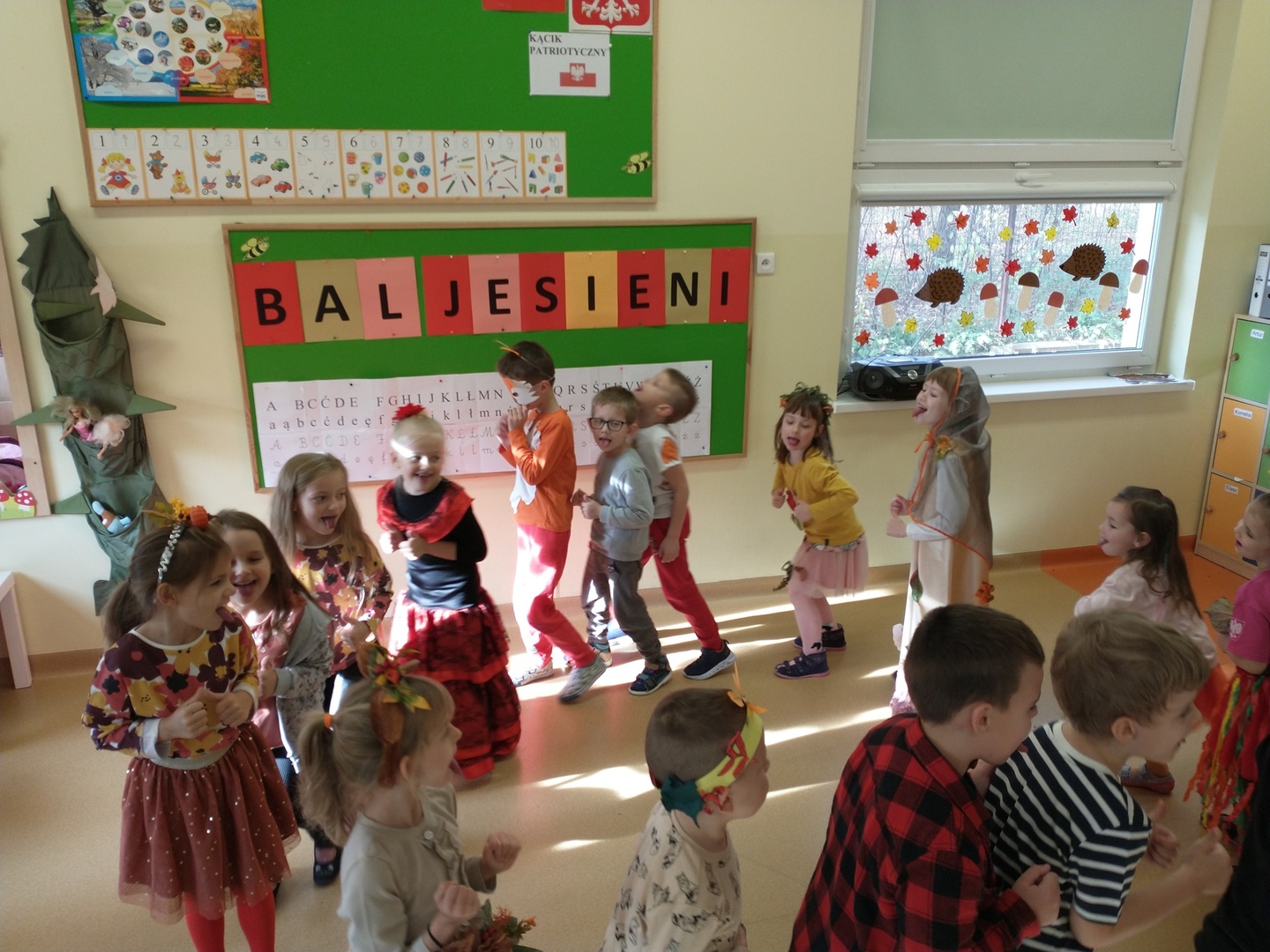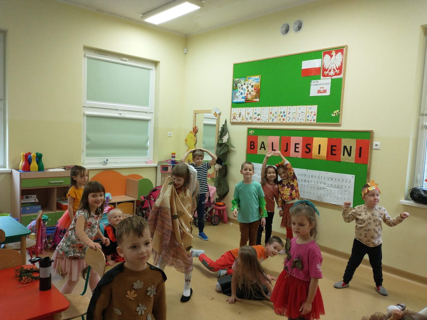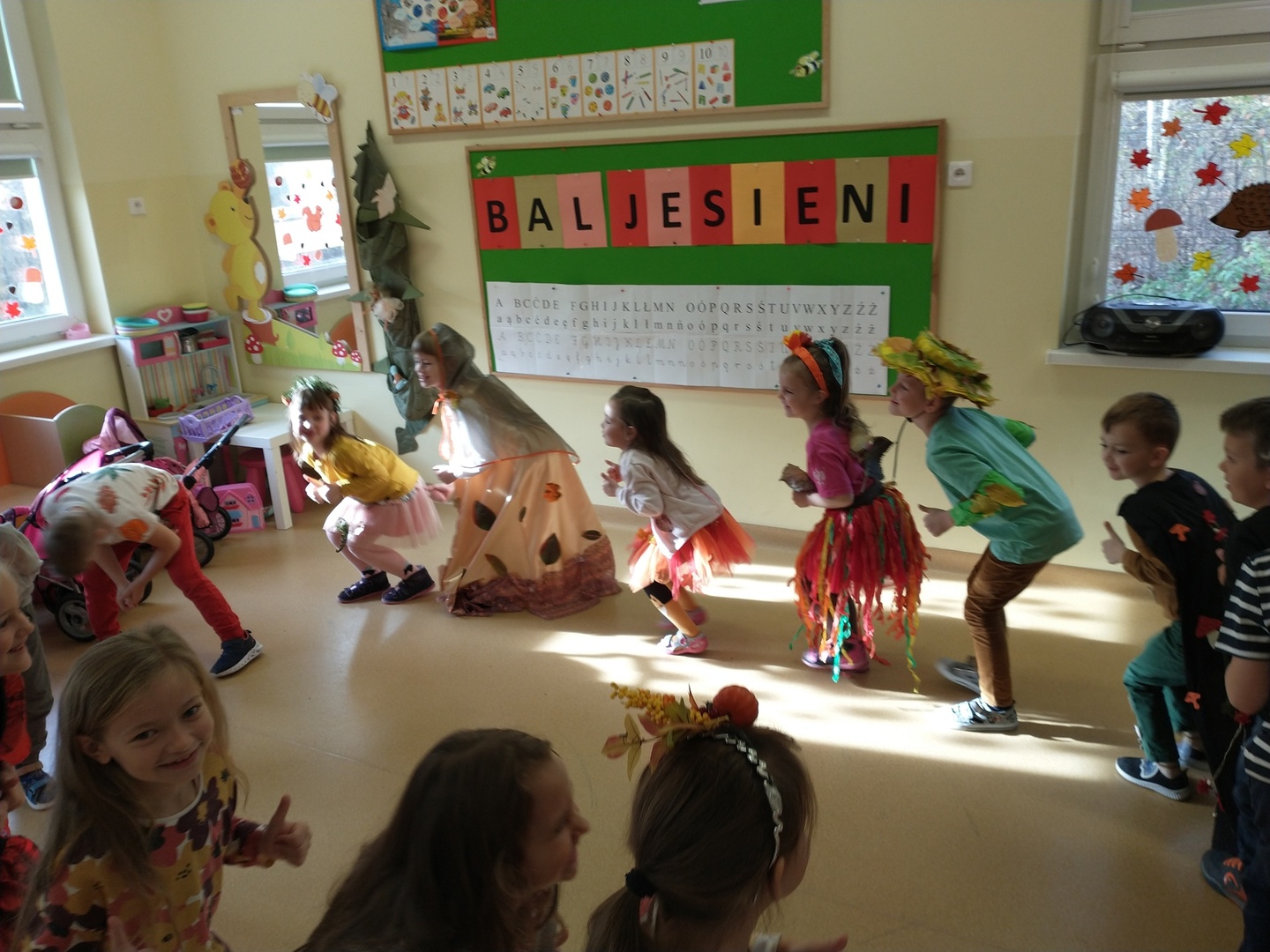 W środę, 9.11.2022r., w naszym przedszkolu odbył się Bal Jesienny. Dzieci tego dnia przyszły ubrane w stroje w kolorach jesieni, w koronach z kolorowych liści, w jarzębinowych koralach. Tak pięknie ubrane uczestniczyły w tańcach i zabawach ruchowych przy wesołej, skocznej muzyce. Nie zabrakło także zagadek i kolorowanek, które uświetniły ten dzień.