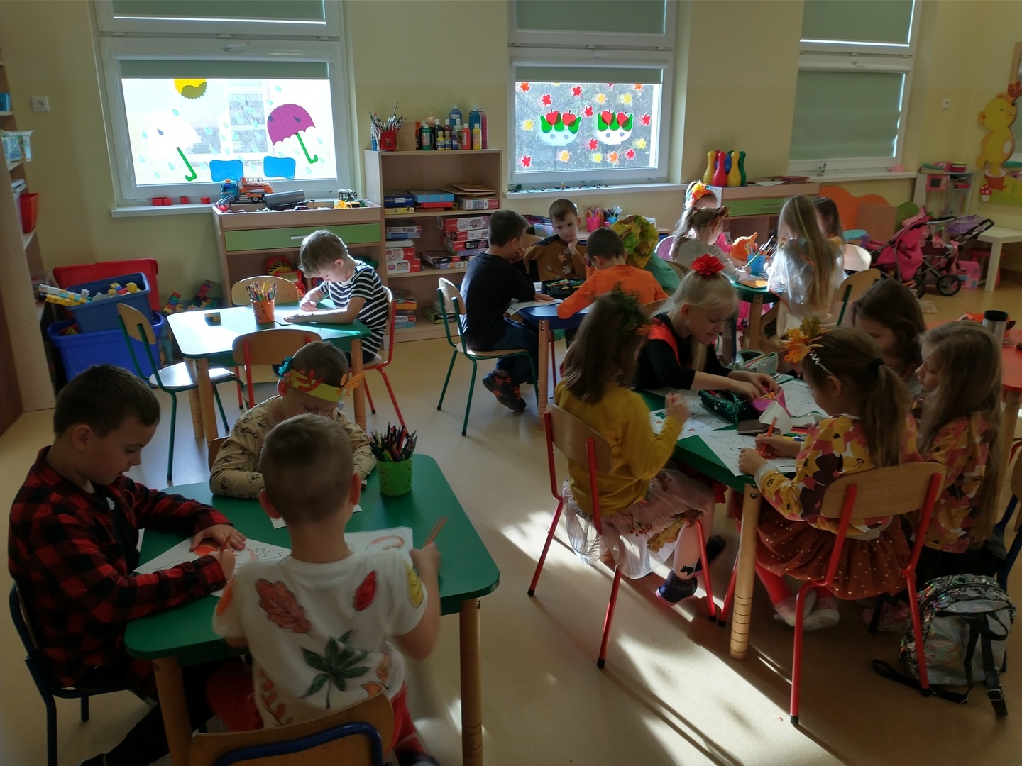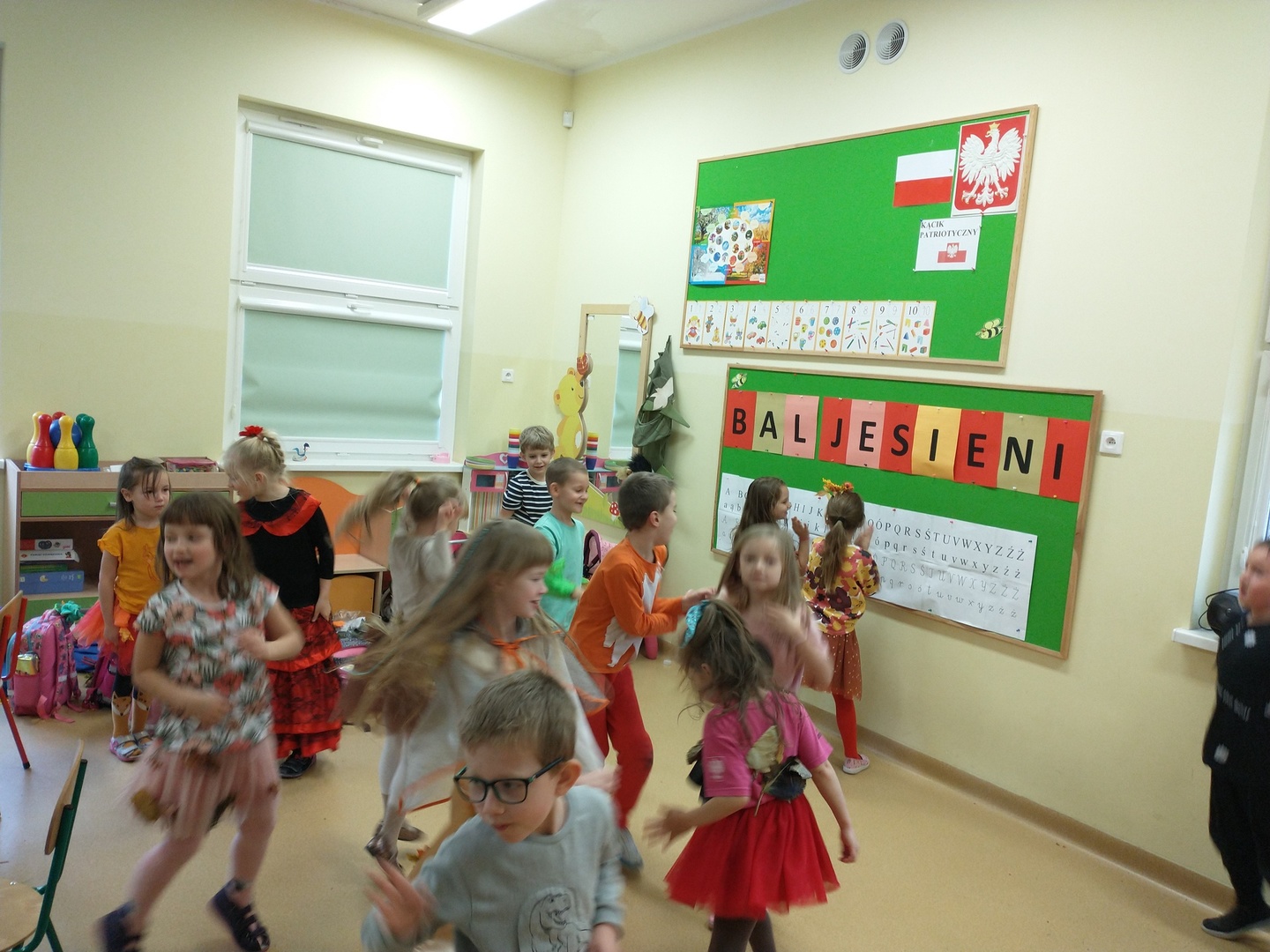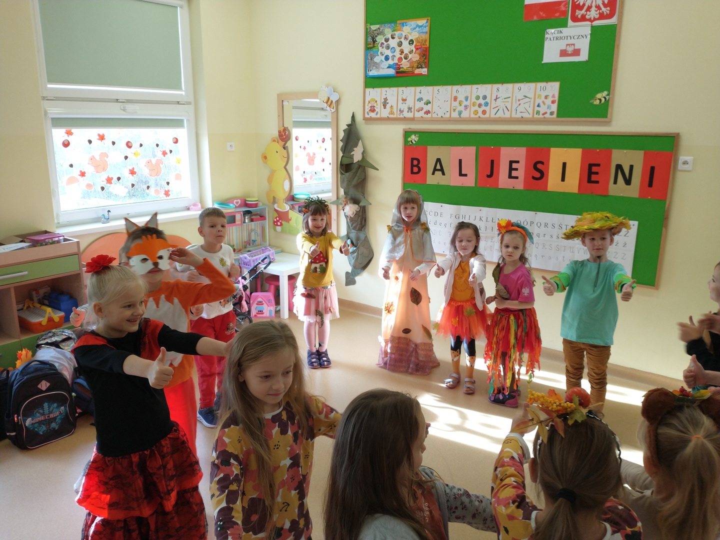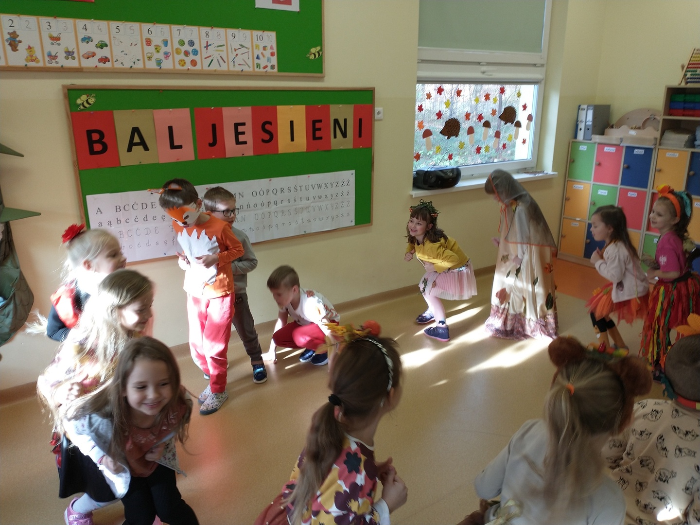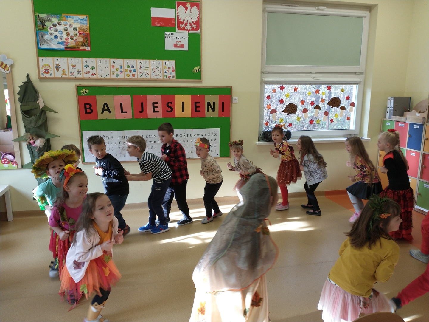 W środę, 9.11.2022r., w naszym przedszkolu odbył się Bal Jesienny. Dzieci tego dnia przyszły ubrane w stroje w kolorach jesieni, w koronach z kolorowych liści, w jarzębinowych koralach. Tak pięknie ubrane uczestniczyły w tańcach i zabawach ruchowych przy wesołej, skocznej muzyce. Nie zabrakło także zagadek i kolorowanek, które uświetniły ten dzień.