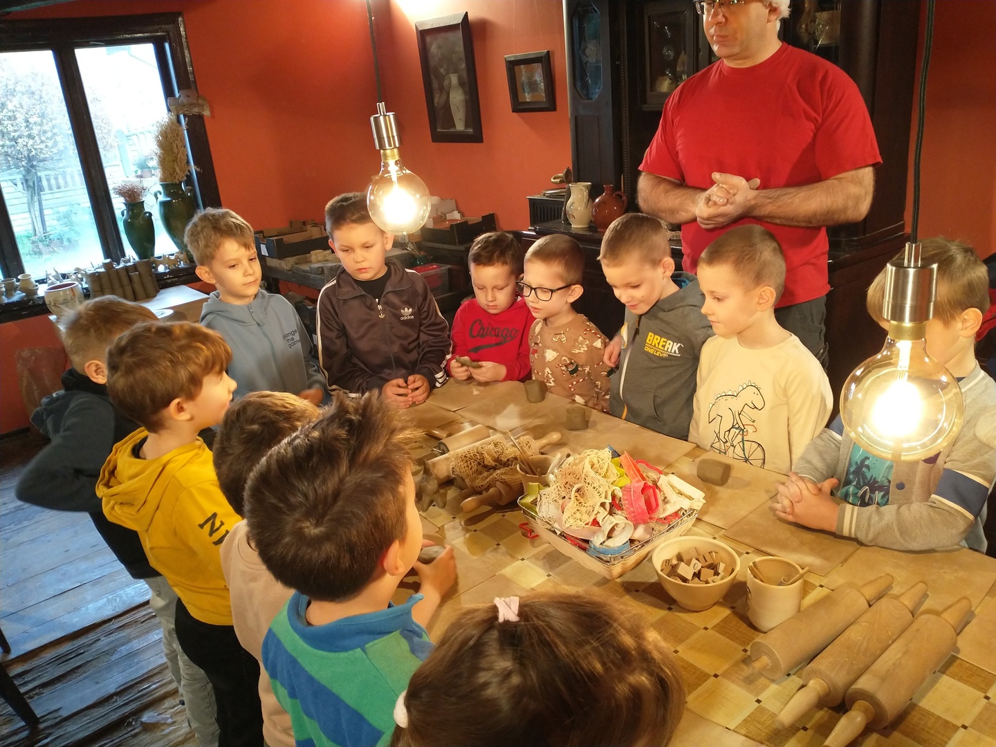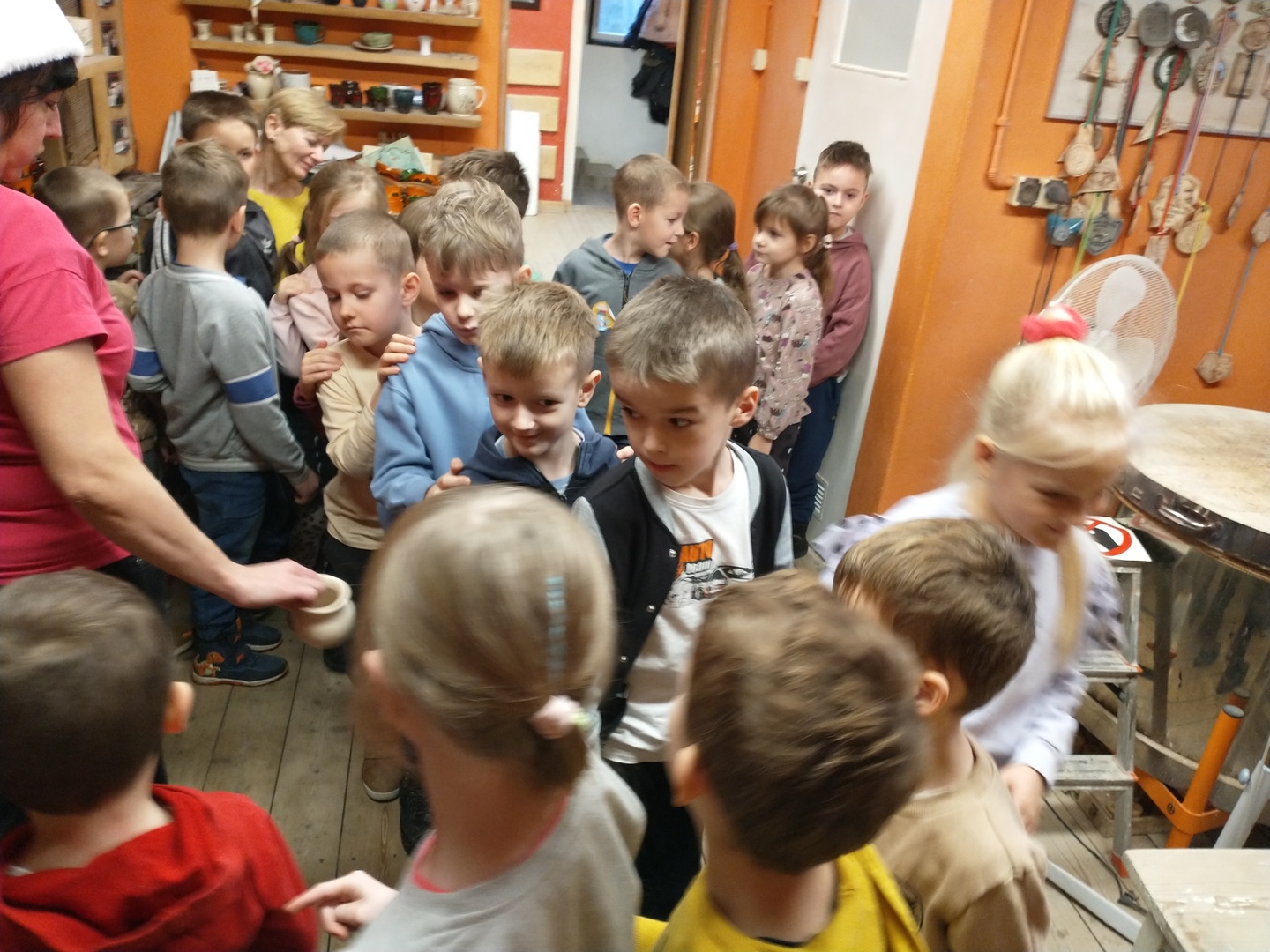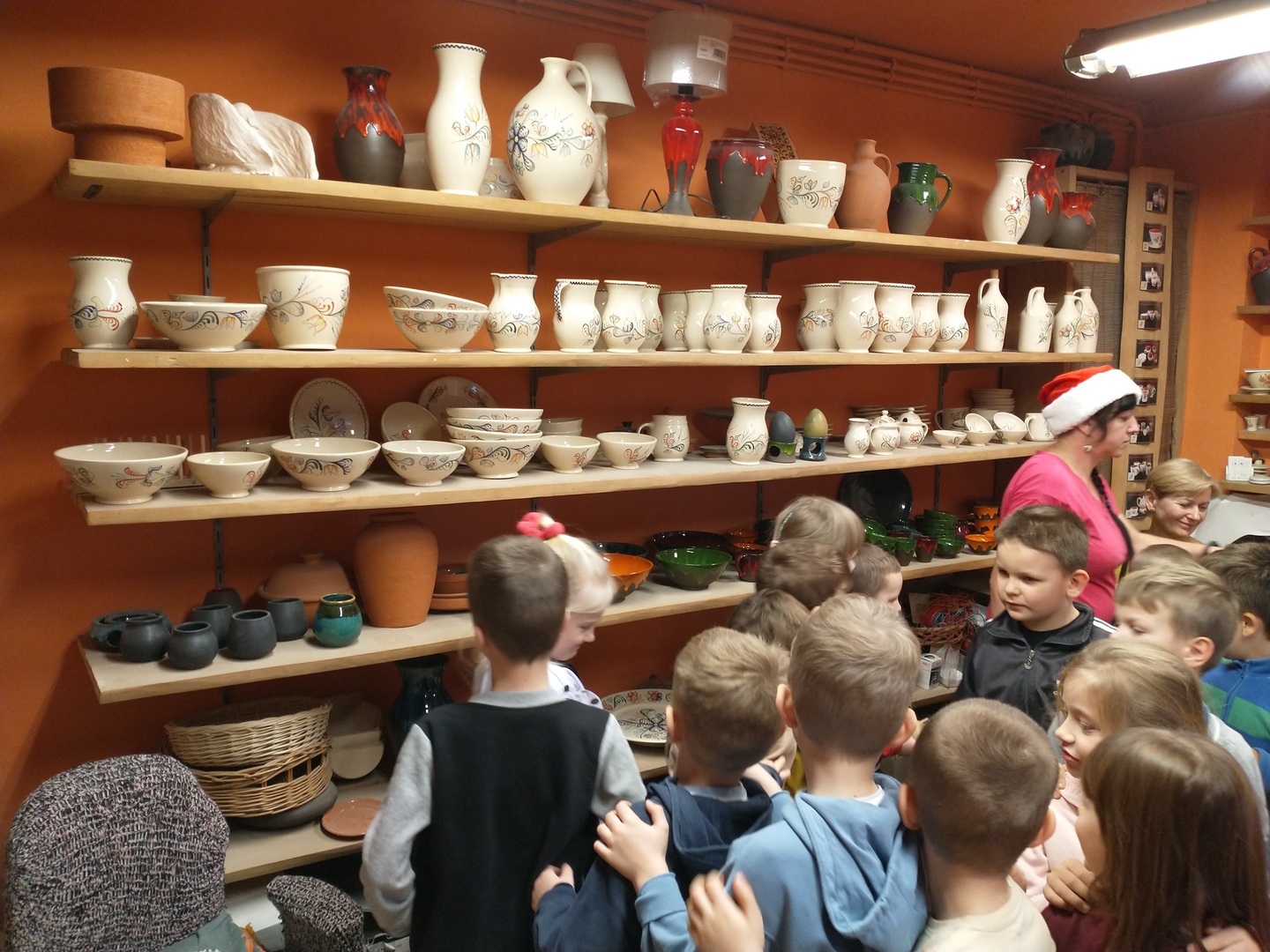 W dniu 7 grudnia dzieci z oddziałów przedszkolnych były na wycieczce w Warsztacie Garncarskim Rodziny Konopczyńskich w Bolimowie. Przedszkolaki miały okazję toczyć naczynko na kole garncarskim, lepić z gliny oraz malować specjalnie przygotowane na tę okazję gliniane bombki. W warsztacie garncarskim na dzieci czekała fascynująca opowieść o drodze od gliny do ceramiki, historia warsztatu garncarskiego, legenda o ptaszku bolimowskim oraz opowieść o pracy garncarza.