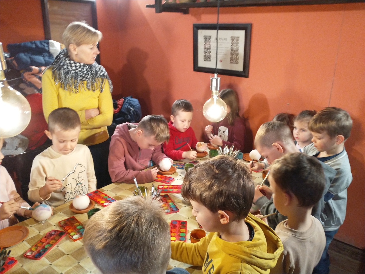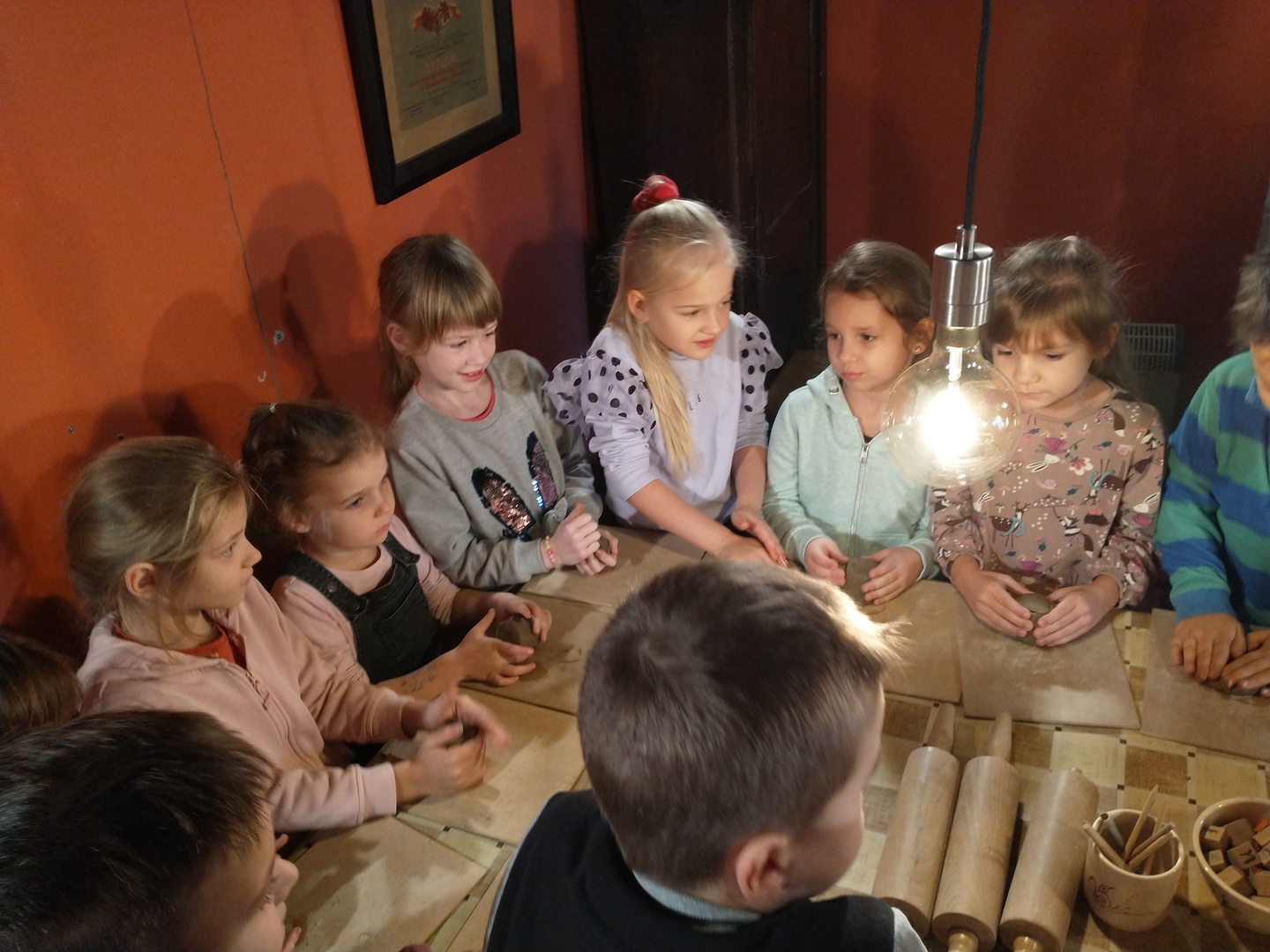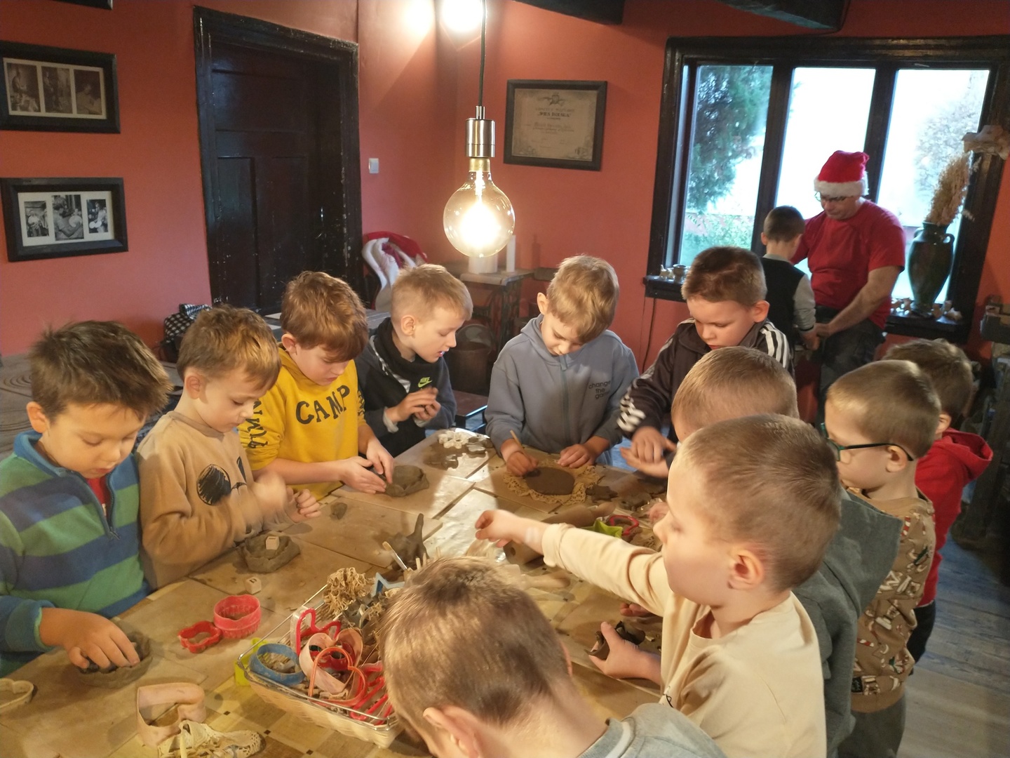 W dniu 7 grudnia dzieci z oddziałów przedszkolnych były na wycieczce w Warsztacie Garncarskim Rodziny Konopczyńskich w Bolimowie. Przedszkolaki miały okazję toczyć naczynko na kole garncarskim, lepić z gliny oraz malować specjalnie przygotowane na tę okazję gliniane bombki. W warsztacie garncarskim na dzieci czekała fascynująca opowieść o drodze od gliny do ceramiki, historia warsztatu garncarskiego, legenda o ptaszku bolimowskim oraz opowieść o pracy garncarza.