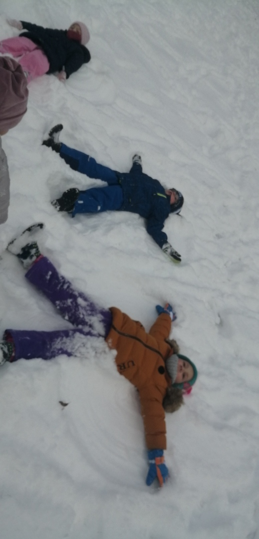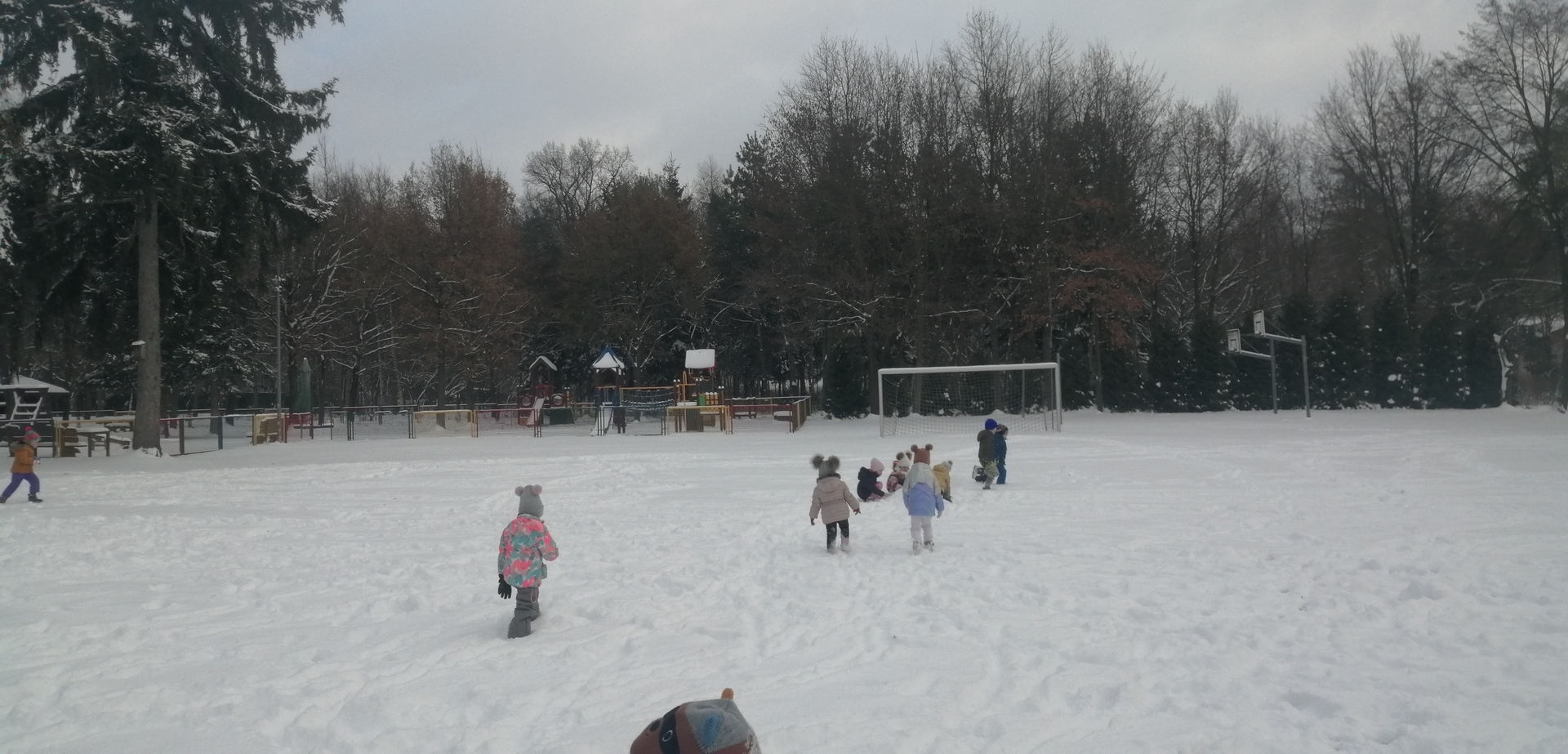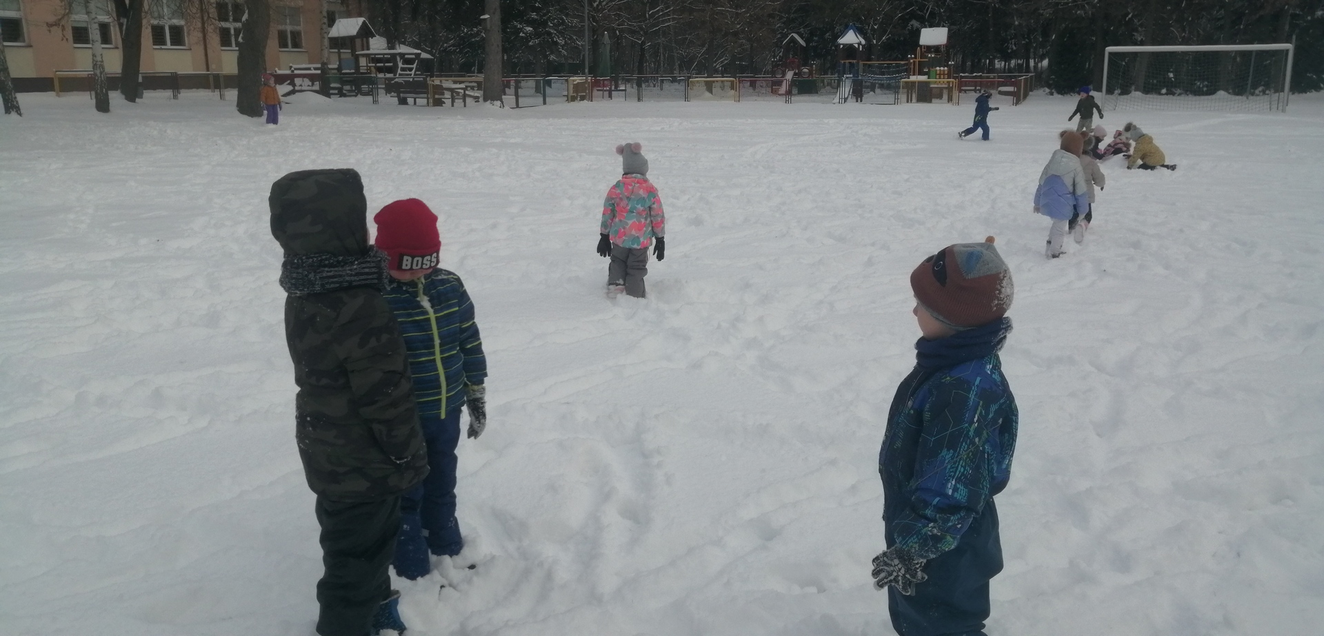 Korzystając z pierwszych opadów śniegu, przedszkolaki z grupy ,,Misie” wybrały się na śnieżne szaleństwa na boisku szkolnym. Rodzice, poinformowani o zamiarze zabaw na śniegu, przygotowali dla dzieci odpowiednie ubrania m.in. spodnie narciarskie i rękawiczki, dzięki czemu wszyscy mogli lepić budowle i rzucać się śnieżkami , a na zakończenie zrobić .,,aniołki" na śniegu.
