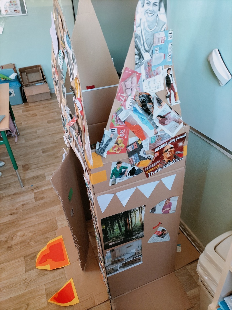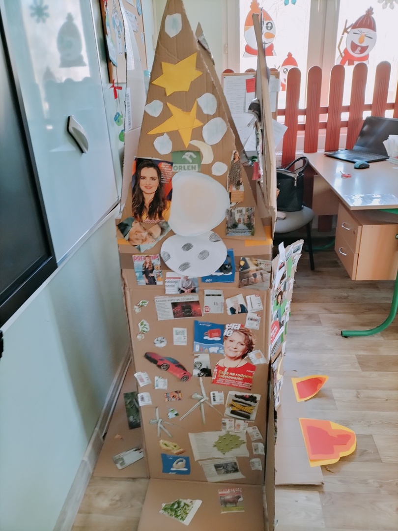 W ostatnich dniach lutego i na początku marca uczniowie klasy Ib poszerzali swoją wiedzę o kosmosie i występujących w nim planetach. Podczas lekcji wykonali rakietę kosmiczną z materiałów przeznaczonych do recyklingu: z kartonów, gazet. Następnie udali się na wakacje w kosmos. Zajęcia wszystkim się bardzo podobały.