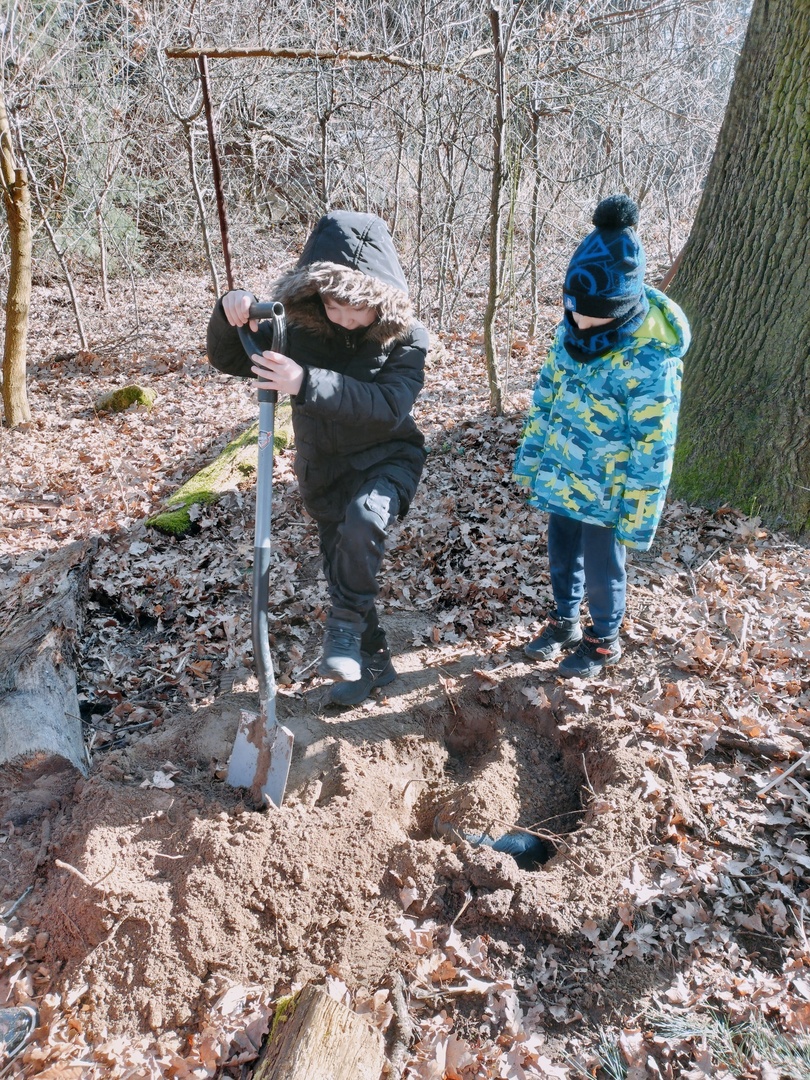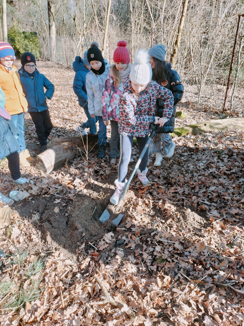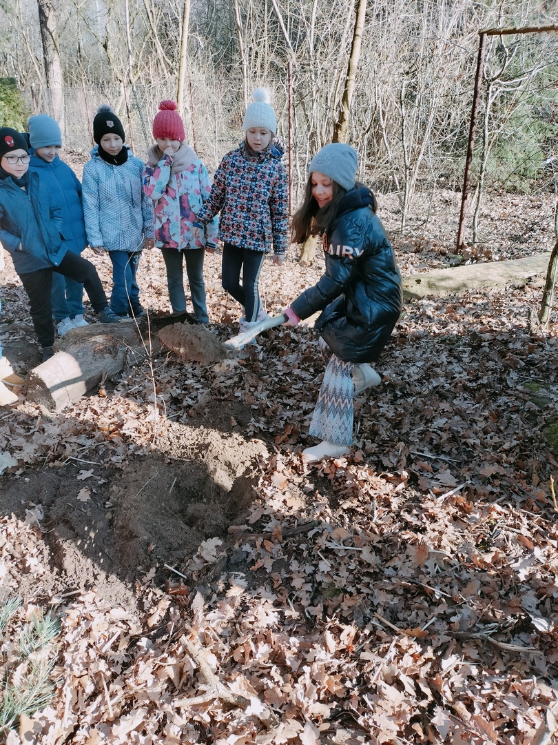 Uczniowie z klasy W I b postanowili zakopać skarb. Zanim do tego doszło, dzieci musiały pomyśleć, co jest ich największym skarbem, co pragną zakopać?