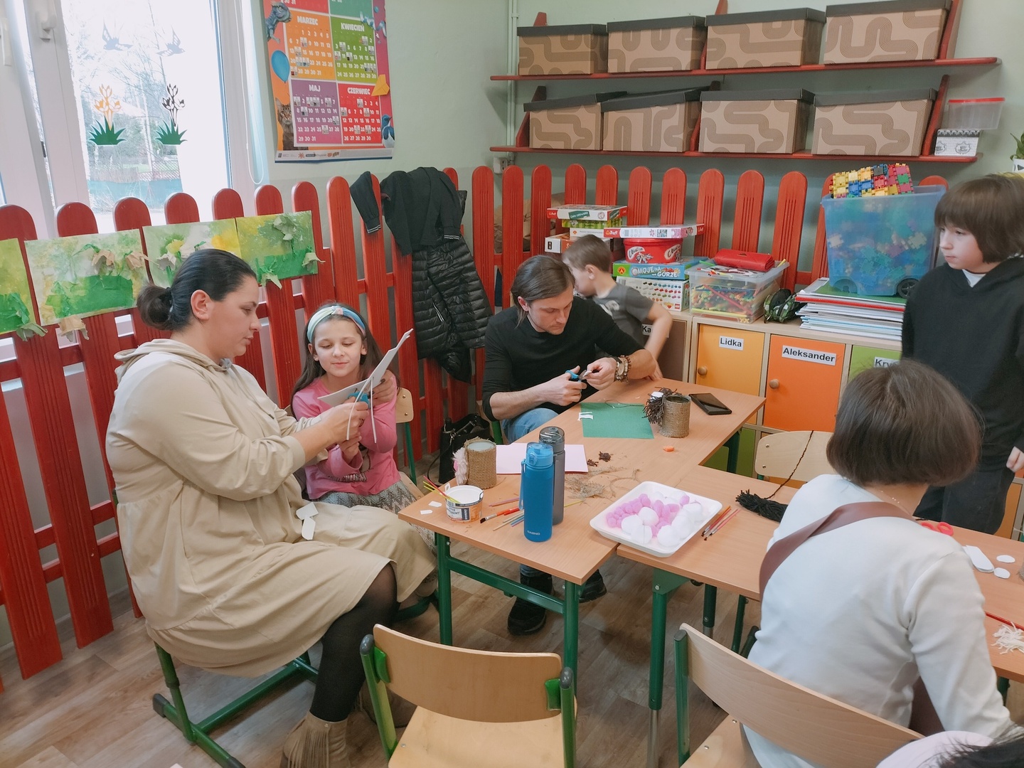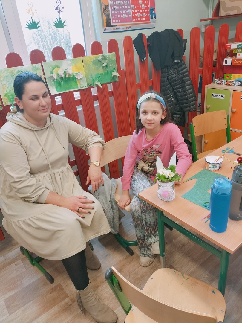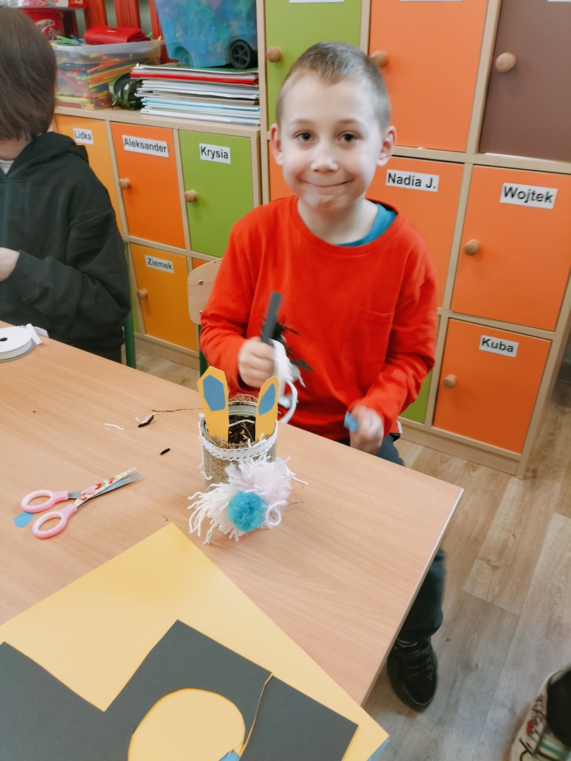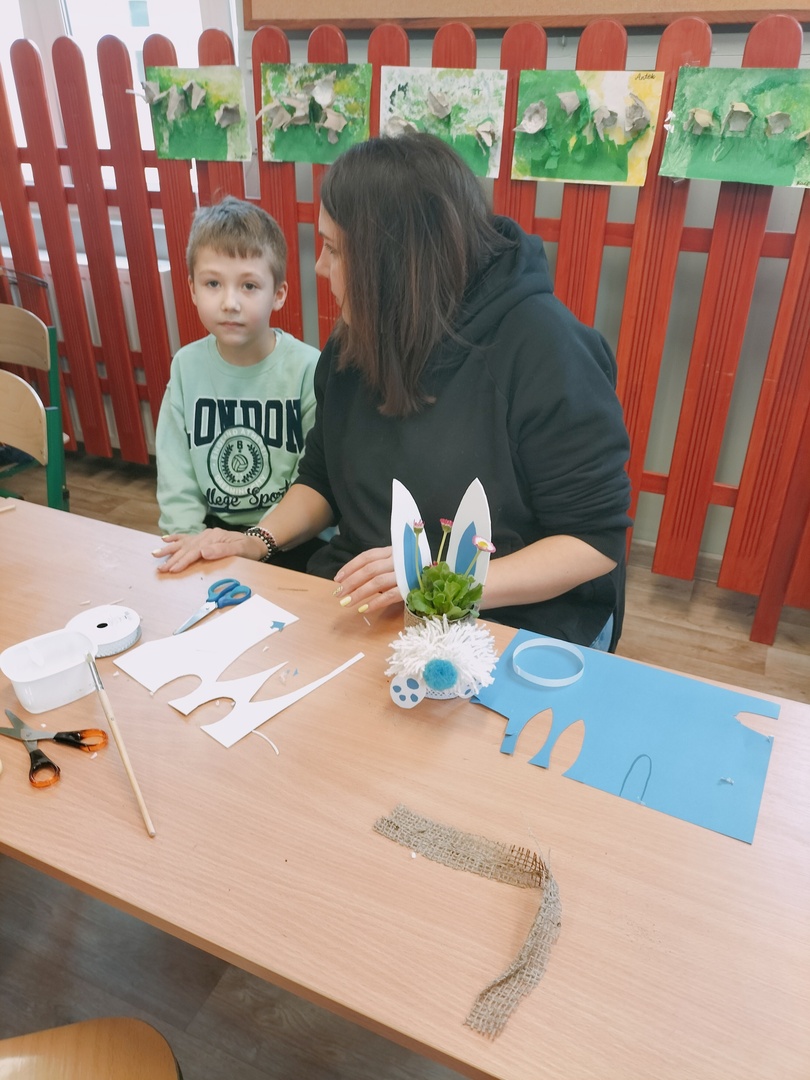 W czasie zajęć na dzieci czekało wiele niespodzianek. Zajączek wielkanocny zostawił jajka z niespodziankami, a uczniowie musieli je odnaleźć i utworzyć z nich obrazek. Szarak prosił uczniów, aby zjadły marchewkę, żeby mieć siłę do zabawy. Następnie dorośli i dzieci wykonali pracę z włóczki i materiałów papierniczych. Jej efektem były wesołe zajączki.