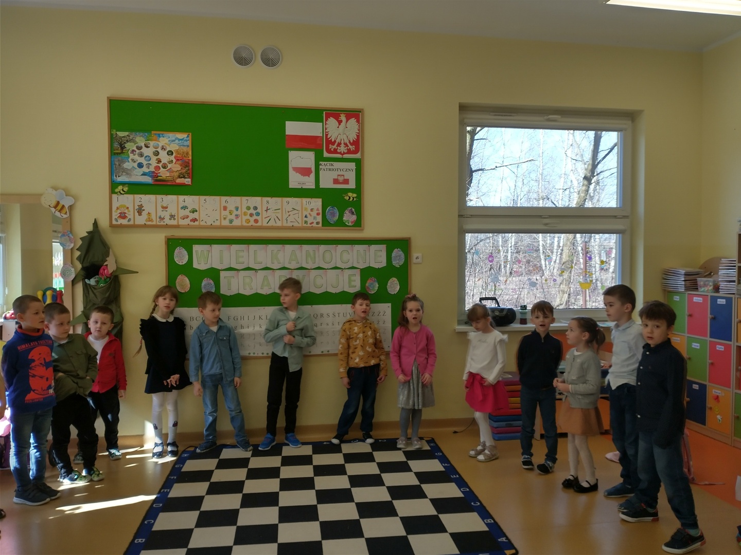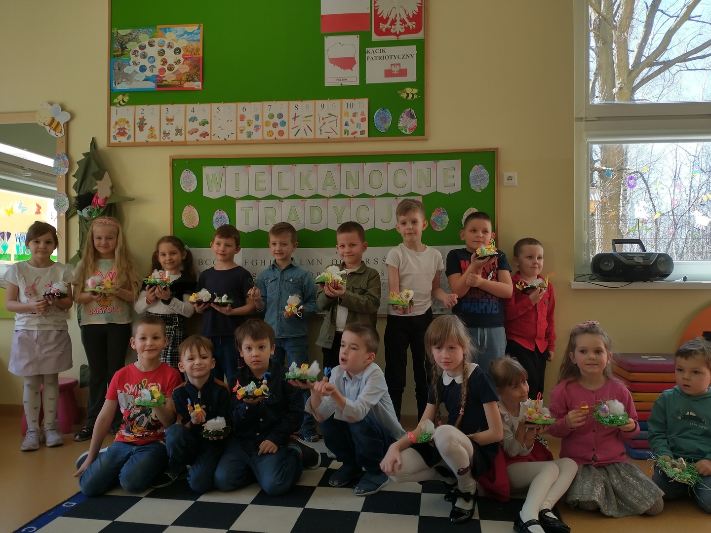 W dniu 29 marca w grupie przedszkolnej ,,Pszczółki” odbyły się warsztaty wielkanocne, w których uczestniczyli rodzice. Dzieci zaprezentowały przygotowane teksty o tradycjach wielkanocnych oraz piosenkę pt. ,,Koszyczek dobrych życzeń”. Po występie przedszkolaki przy pomocy opiekunów wykonały śliczne świąteczne stroiki. Zajączek z drewnianych kulek, baranek z miękkiej waty czy żółciutki kurczaczek uświetniły przygotowane dekoracje. Zarówno dzieci jak i rodzice chętnie zaangażowali się w wykonanie powierzonego im zadania.