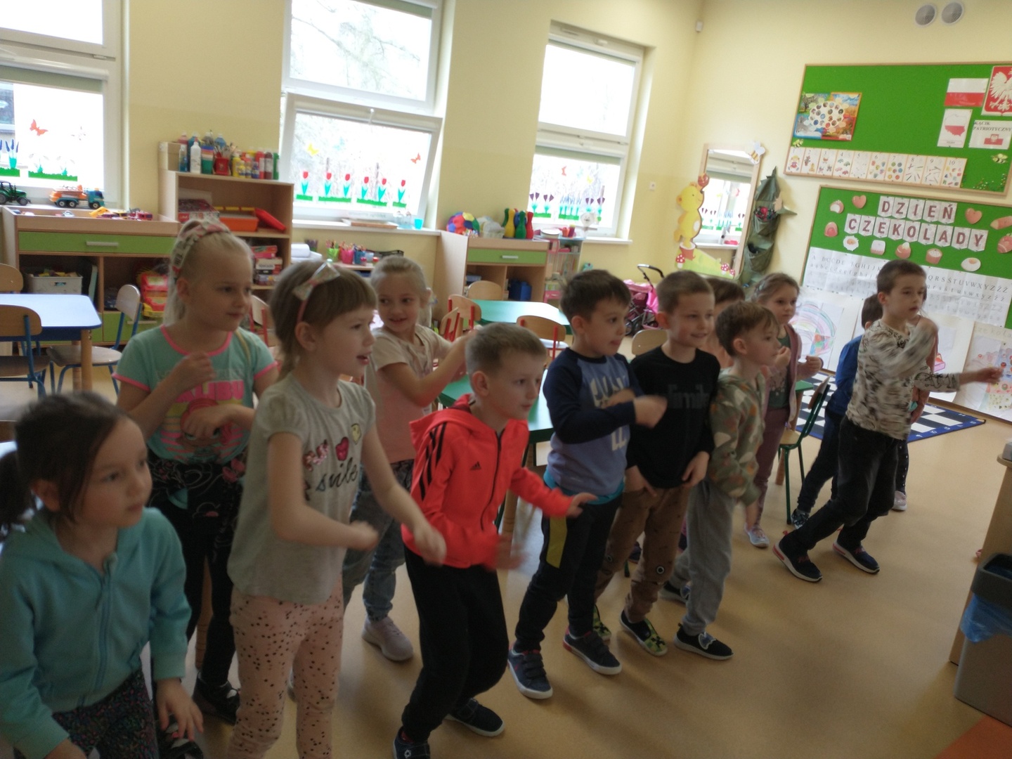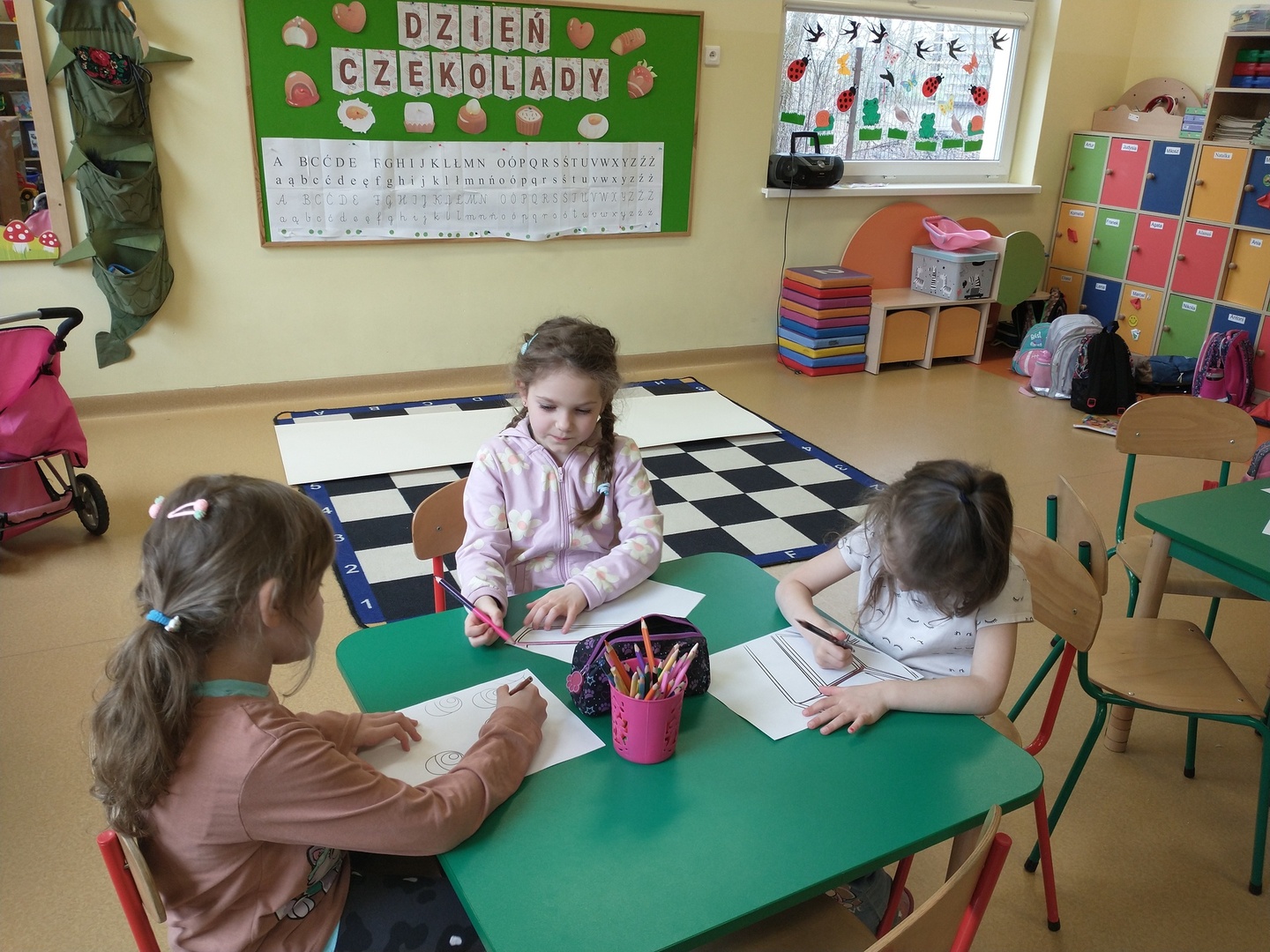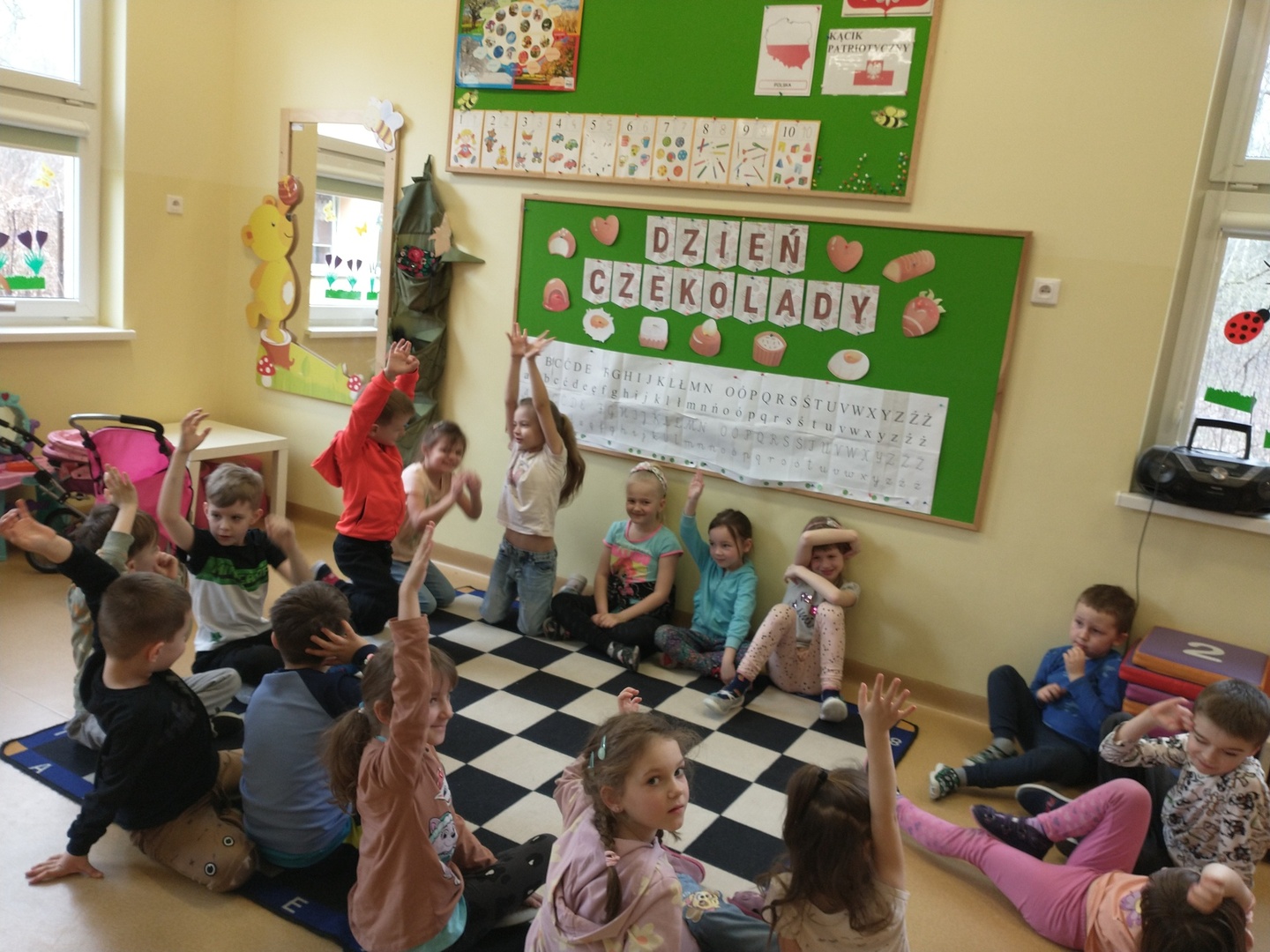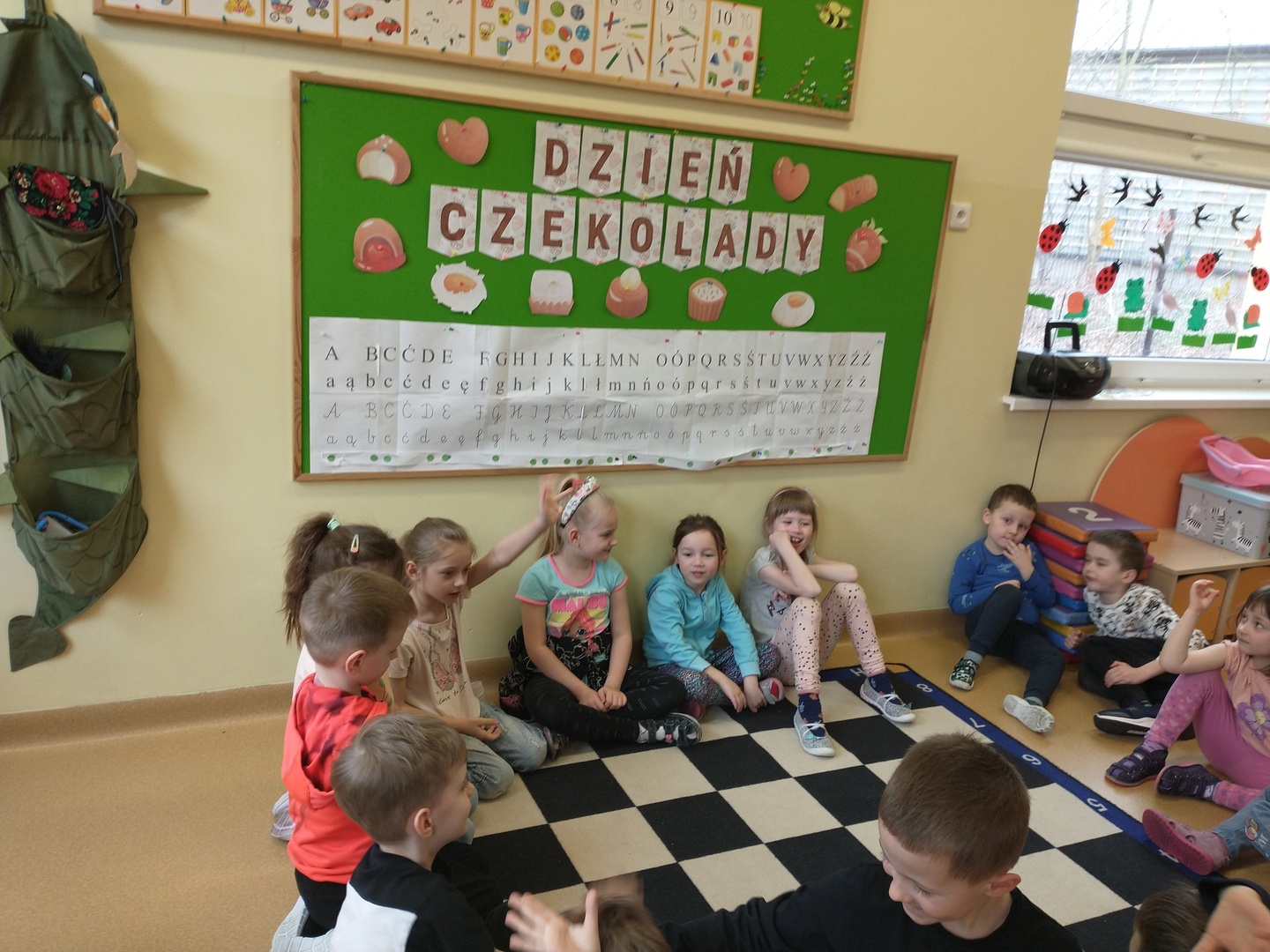 12 kwietnia br. w naszym przedszkolu obchodziliśmy Światowy Dzień Czekolady. Dzieci z grupy ,,Pszczółki” w znakomitym humorze, pełne zapału do zgłębiania wiedzy na temat czekolady, dowiedziały się jak powstaje ich ulubiony przysmak. Stworzyły wspólną kolorowankę przedstawiającą smakowite czekoladki.
