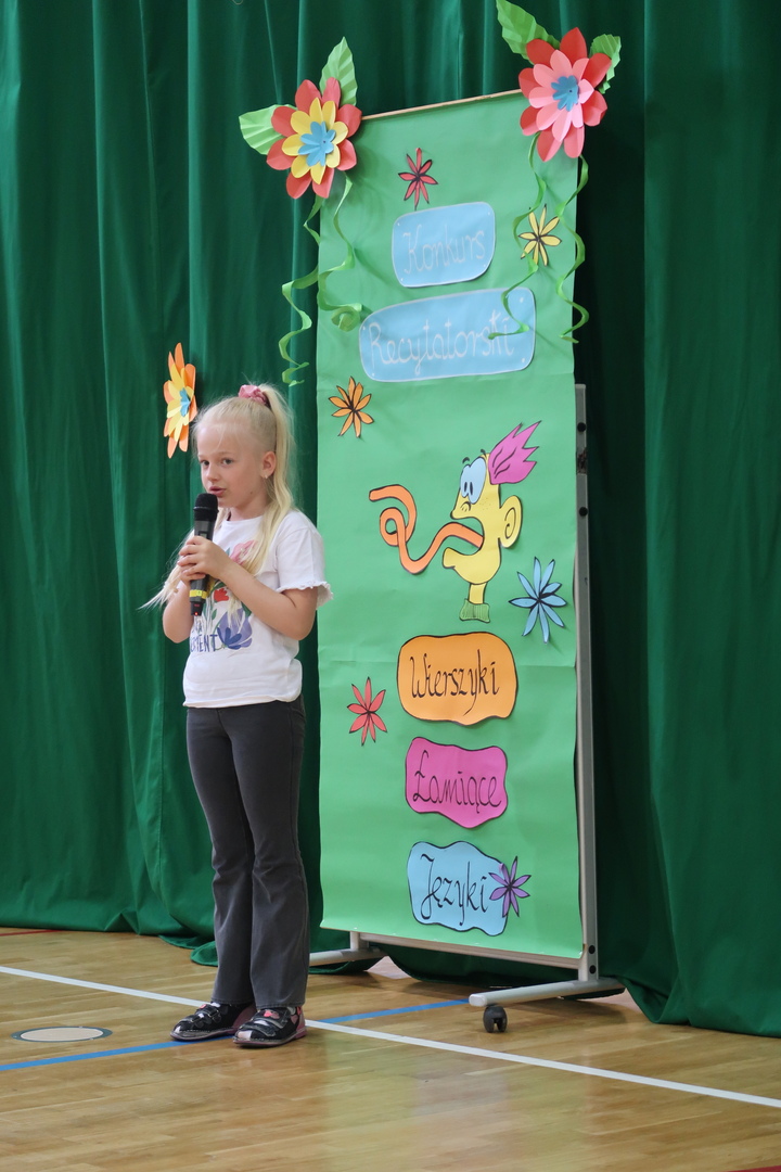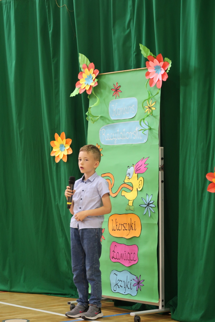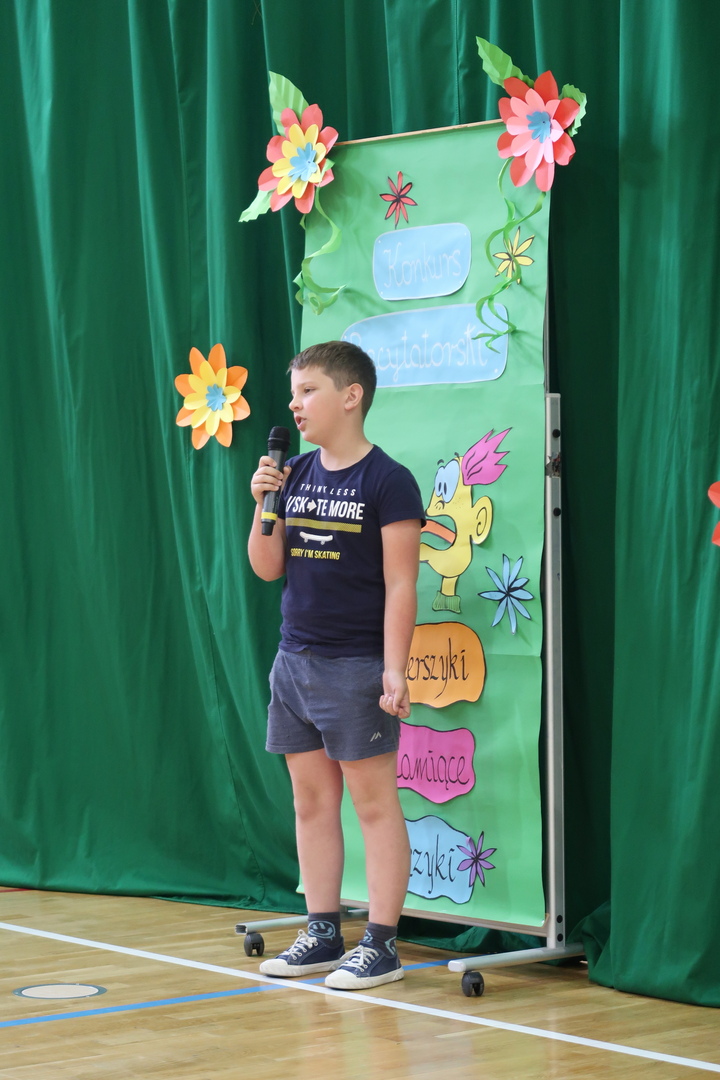 Z zawiłościami języka polskiego zmierzyły się w dniu 02.06.23. dzieci z oddziału "0" oraz klas I-III, które wzięły udział w konkursie logopedycznym "Wierszyki łamiące języki". Niestraszne im były szeleszczące głoski i trzeszczące słowa. Z językowymi łamańcami poradzili sobie na sześć! Zwyciężczynią konkursu została Selena Habigier z klasy III. Serdeczne gratulacje!!!