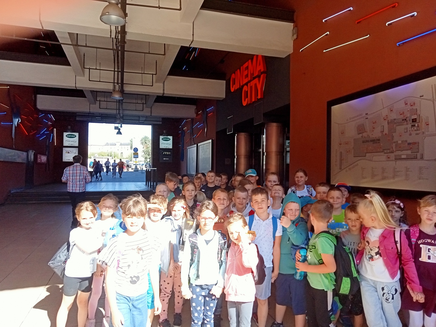 W czwartkowy poranek, 21 września, uczniowie kl. Ia, kl. Ib oraz trzecioklasiści wraz z opiekunami wybrali się do kina ,,Cinema City” w Łodzi na film pt. „O psie, który jeździł koleją”. Uczestnicy wycieczki z wielkim wzruszeniem śledzili losy bohaterów, ukazujące wspaniałą przyjaźń zwierzęcia z człowiekiem. Uczniowie zrozumieli, jak wielką wartością jest dobro, prawda i przyjaźń. Pobyt w kinie był również okazją do kształtowania nawyków kulturalnego zachowania się w miejscach publicznych oraz w środkach transportu. Podczas wyjazdu nastąpiła też integracja uczniów i wzmocnienie więzi koleżeńskich. Film bardzo spodobał się wszystkim i na pewno długo pozostanie w ich pamięci. Uśmiechnięci, szczęśliwi i pełni wrażeń uczniowie wrócili do szkoły.