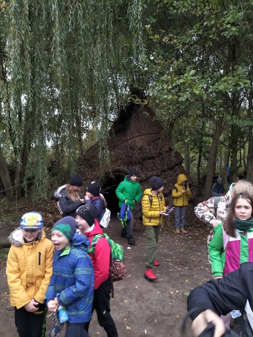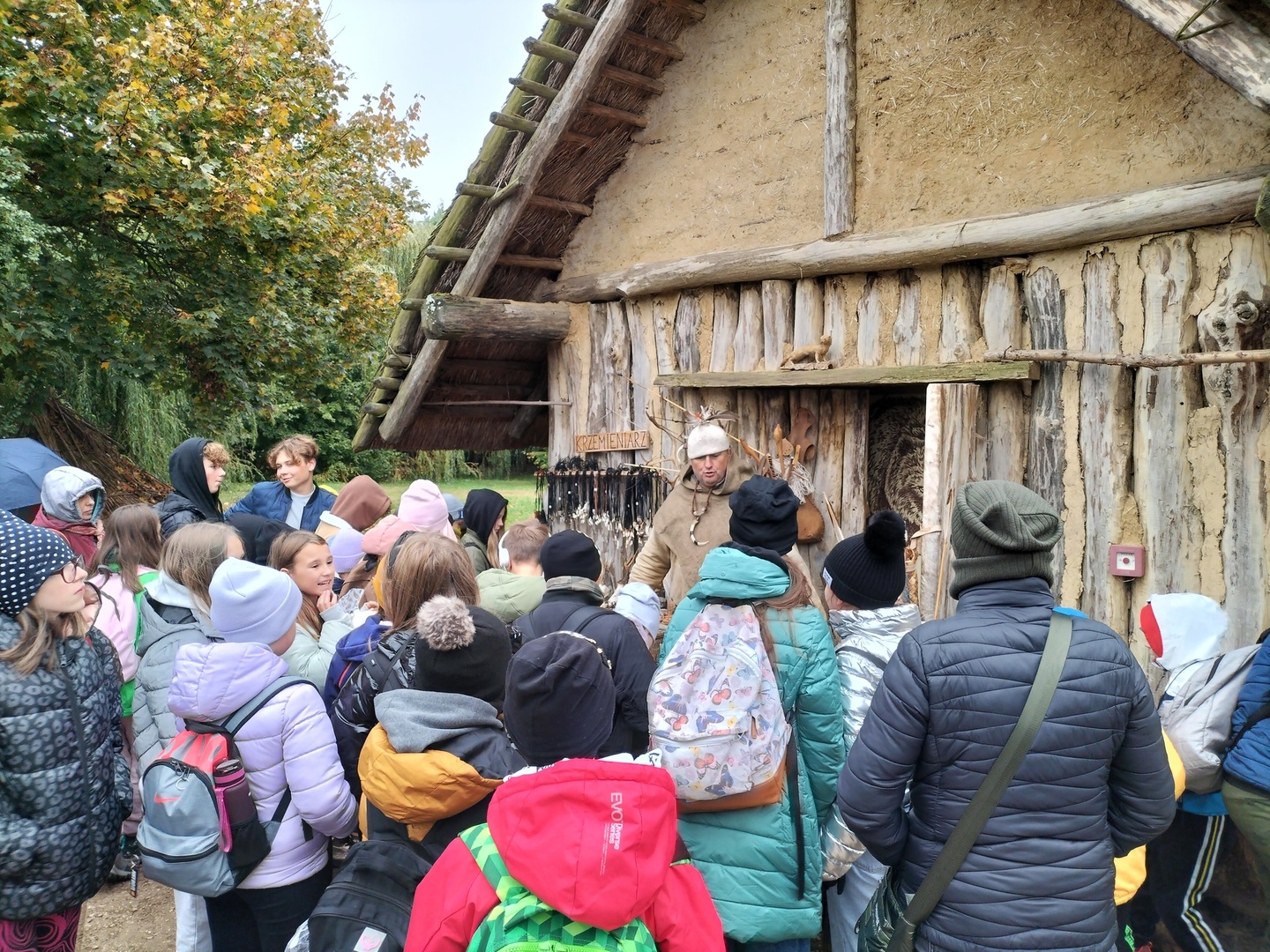 Pełni wrażeń ruszyliśmy w dalszą drogę do Muzeum Archeologicznego w Biskupinie, gdzie można było przenieść się w czasie, podczas zwiedzania osady słowiańskiej znajdującej się na półwyspie. Znajdują się tu rekonstrukcje chat sprzed setek czy nawet tysięcy lat. Można też poznać zwyczaje żyjących tu kiedyś ludzi, ich pracę i rzemiosło. Gród był otoczony palisadą, jednak nie ze wszystkich stron. Prawdziwa osada była zbudowana ok. 2700 lat temu. Podobno Biskupin kiedyś zamieszkiwało około tysiąca ludzi. Oglądaliśmy też wnętrza chat, w których znajdowały się paleniska, miejsca dla bydła, łoże, przedsionek. Po tych historycznych doznaniach udaliśmy się na obiad.