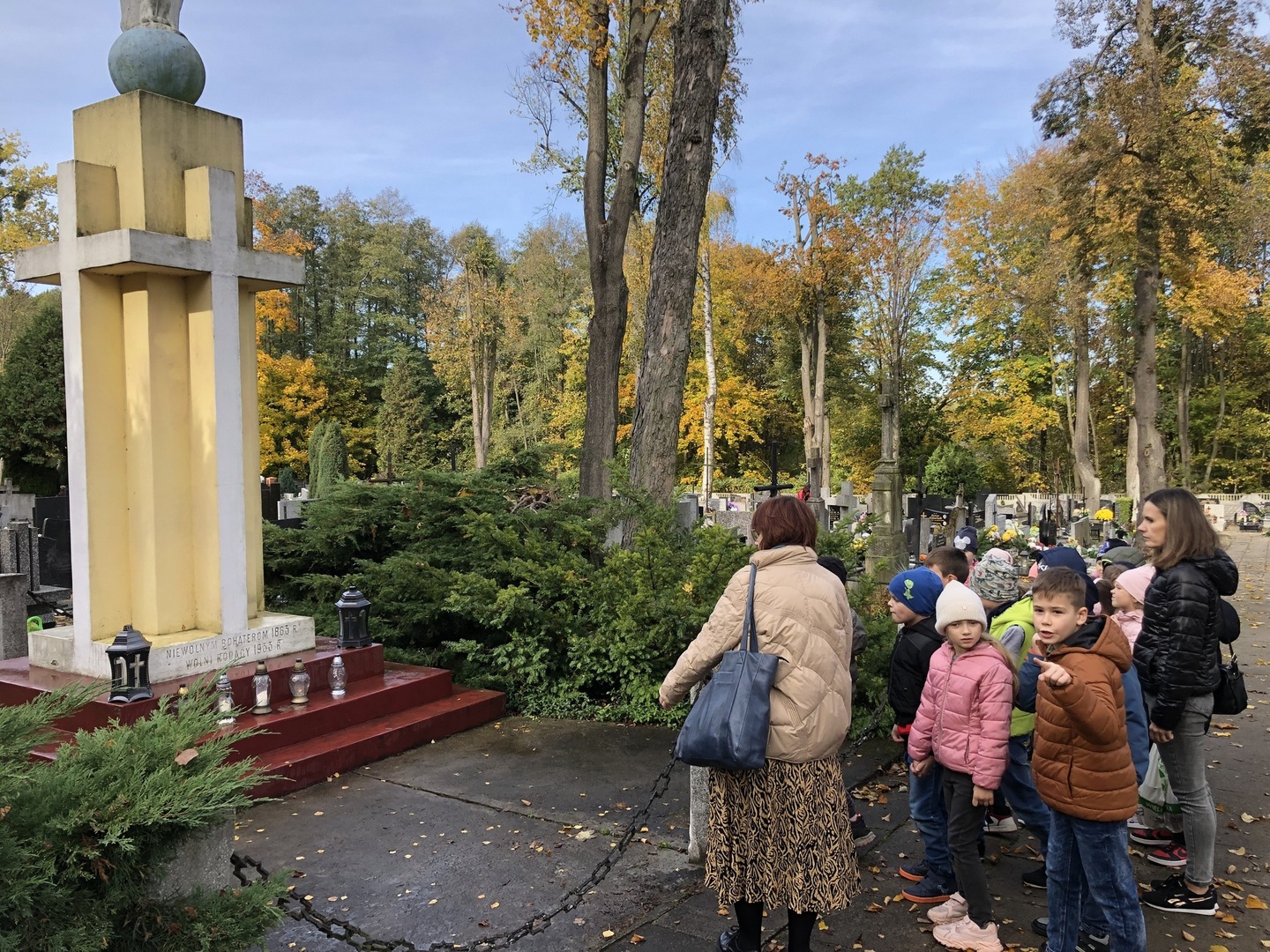 Odwiedzanie miejsc pamięci to jedna z ważniejszych lekcji wychowania patriotycznego. Dzieci zadbały również o właściwe zachowanie się na cmentarzu, by nie zakłócać spokoju osób odwiedzających to miejsce