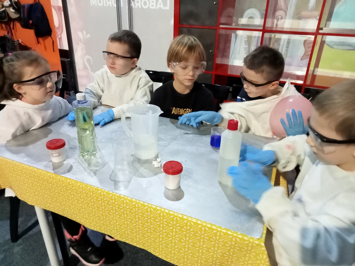 We wtorkowy poranek, 28 listopada uczniowie klasy pierwszej i trzeciej wraz z opiekunami wybrali się na interesującą wycieczkę do Eksperymentarium w „Manufakturze” w Łodzi. Jest to ośrodek typu Discovery Center, w którym nauka nie ma tajemnic. Każdy może samodzielnie poznać i zrozumieć nawet najbardziej skomplikowane zagadnienia poprzez zabawę. Tu nigdy nie jest nudno! Podczas pobytu w Eksperymentarium uczniowie uczestniczyli w warsztatach chemicznych, podczas których wykonywali ciekawe eksperymenty z wykorzystaniem artykułów znajdujących się w każdej kuchni. Uczniowie poczuli się jak prawdziwi naukowcy. Po warsztatach dzieci zwiedzały interaktywną wystawę, która okazała się idealną lekcją pobudzającą kreatywność i ciekawość.