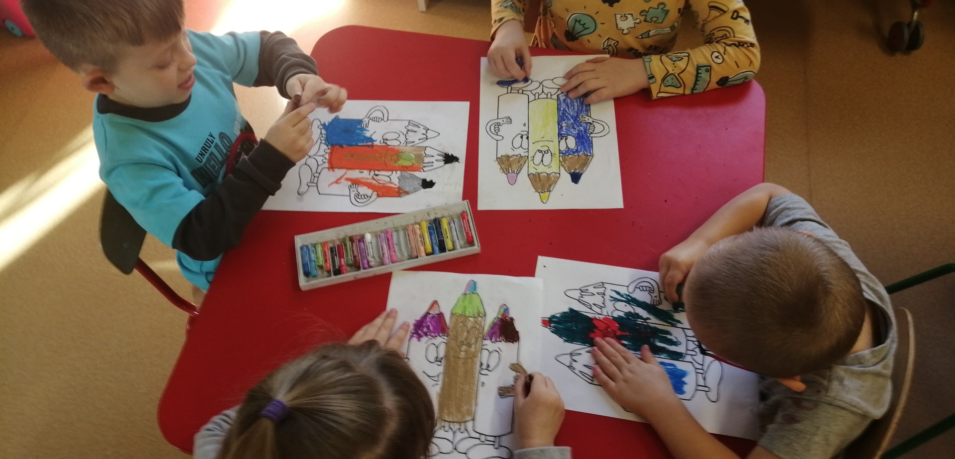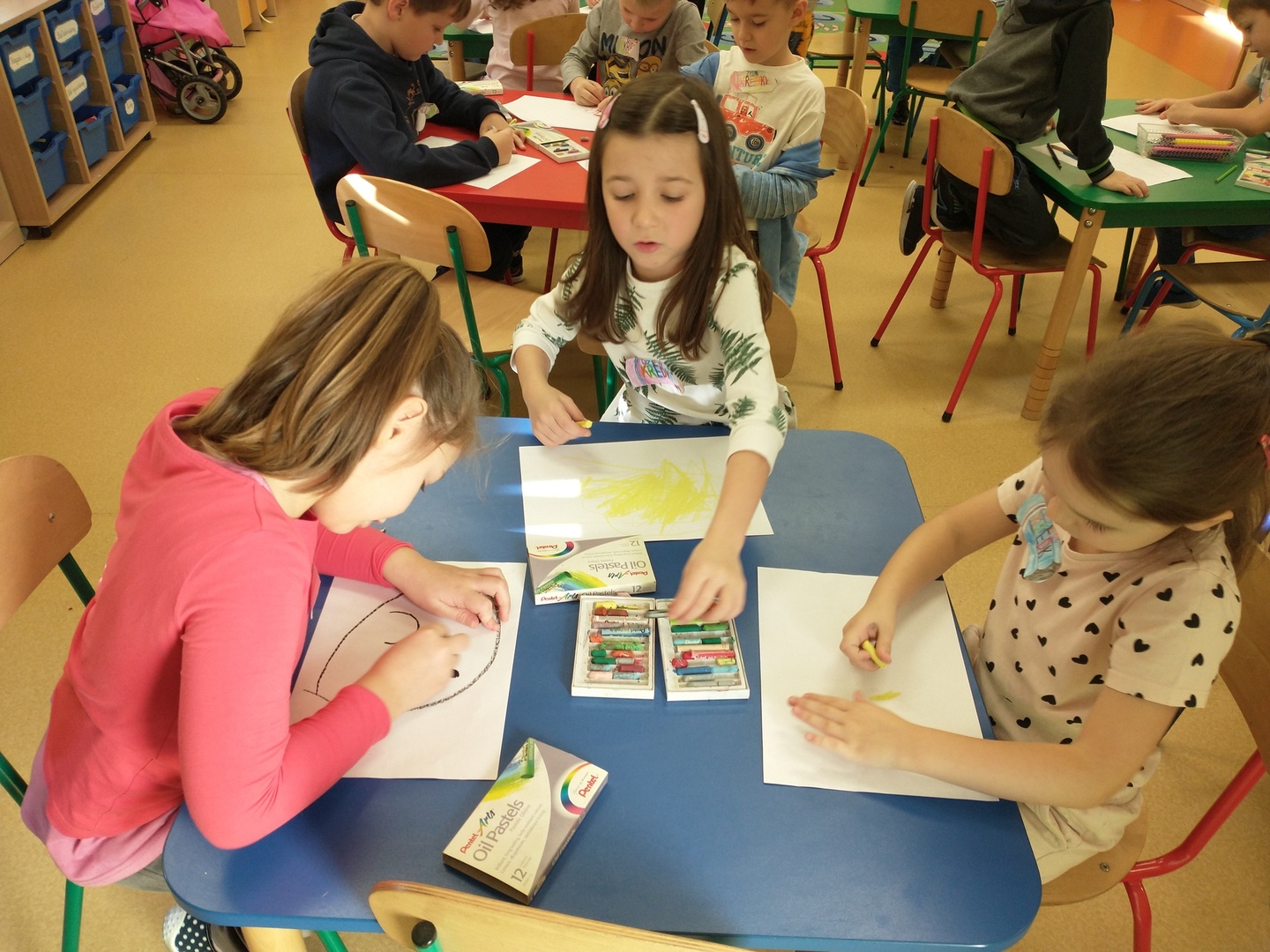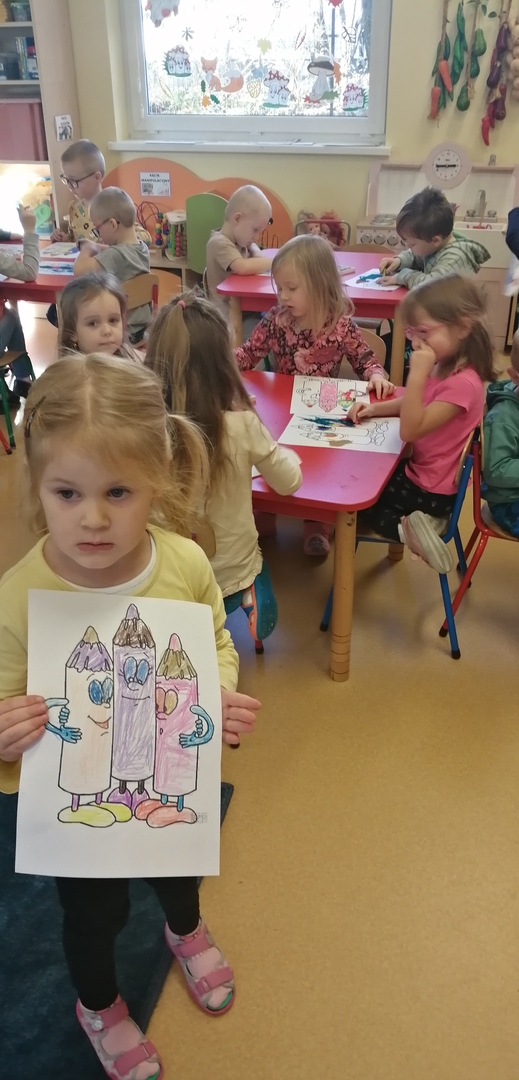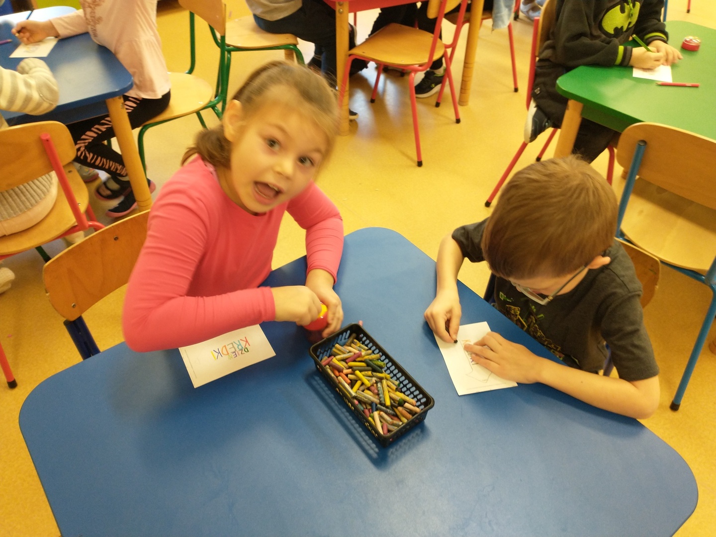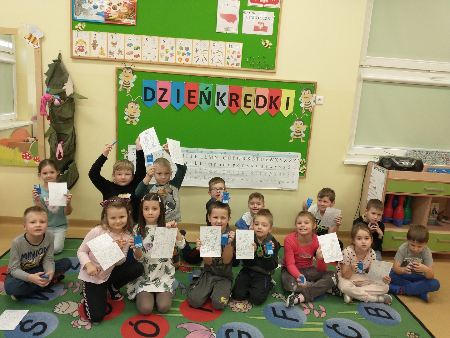 W środę - 22 listopada – był obchodzony Dzień Kredki. Dzieci przygotowały odznakę w swoim ulubionym kolorze przygotowaną specjalnie z okazji tego święta. Przedszkolaki zastanawiały się, do czego można wykorzystać kredki, jakie znają ich rodzaje. W grupie „Pszczółki” tego dnia królowała piosenka „Kolorowe kredki”, której dzieci uczyły się śpiewać. Wykonały piękne ilustracje do jej tekstu oraz ilustrowały go pokazywaniem podczas wspólnych zabaw przy muzyce. Przedszkolaki, oprócz zabaw, uczyły się segregacji kolorów i układały kredki wg wielkości, a także kolorowały ilustracje różnymi rodzajami kredek (drewniane, woskowe, pastele). Na koniec przedszkolaki z obu grup otrzymały pudełeczko kredek i kolorowanki.