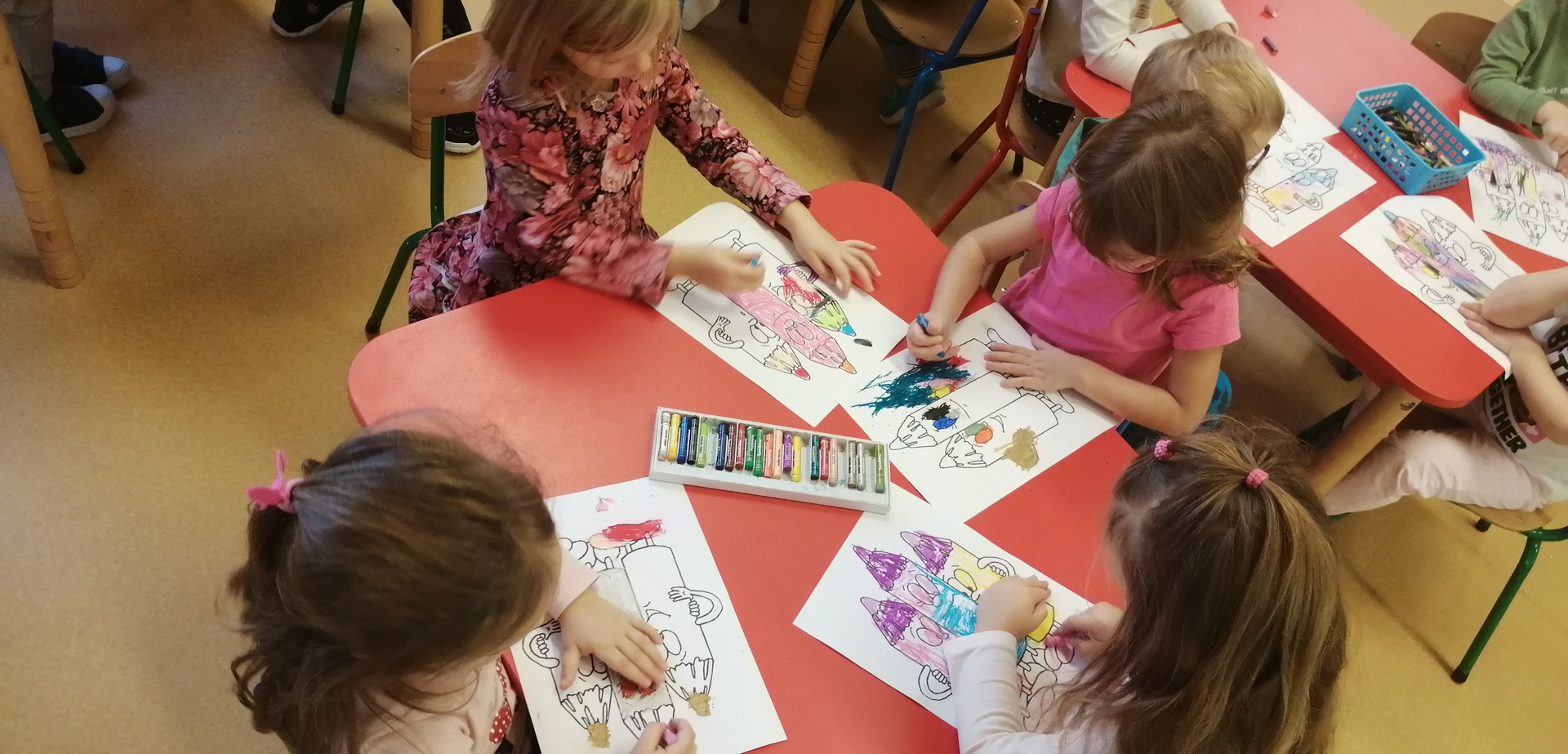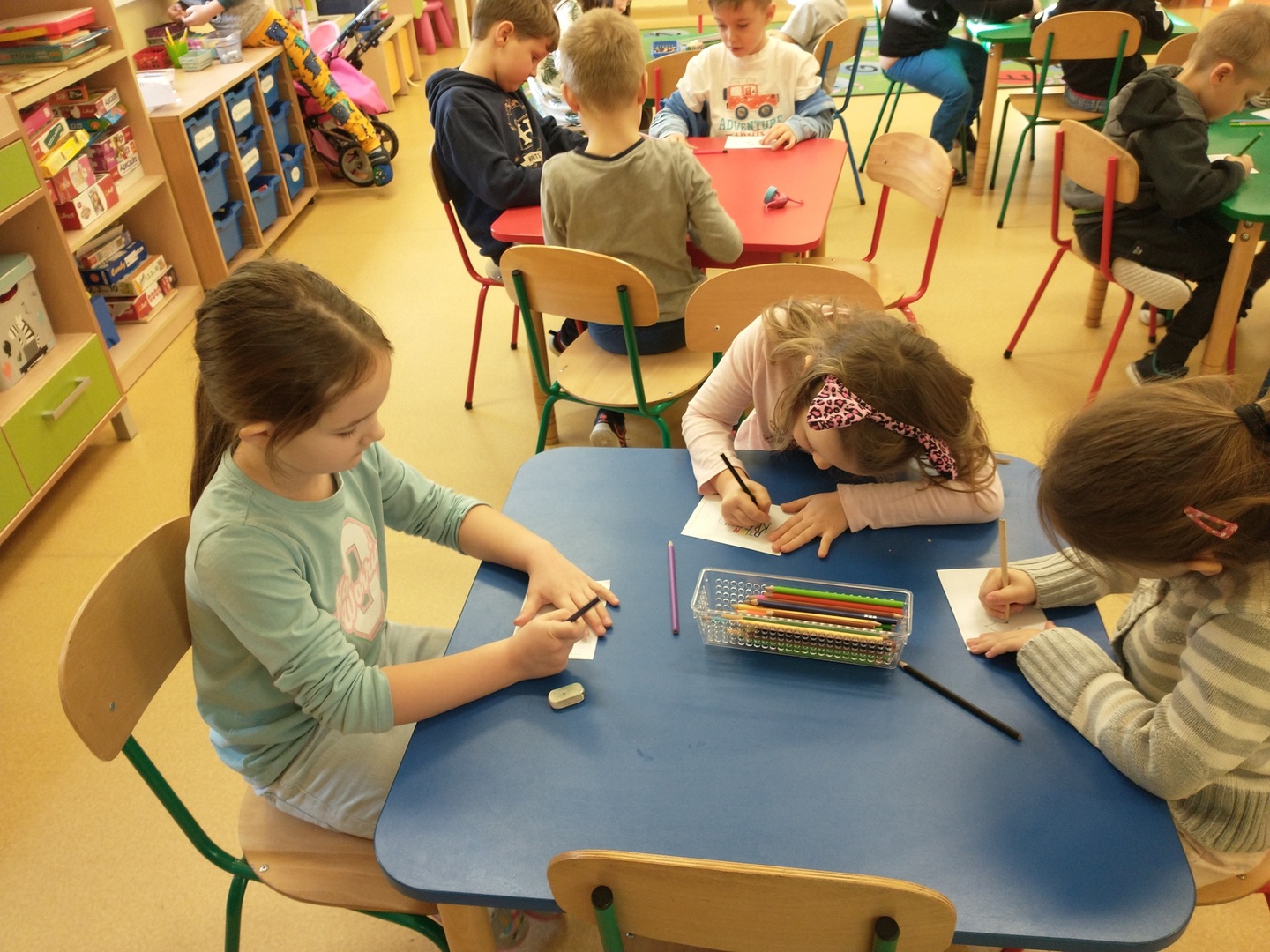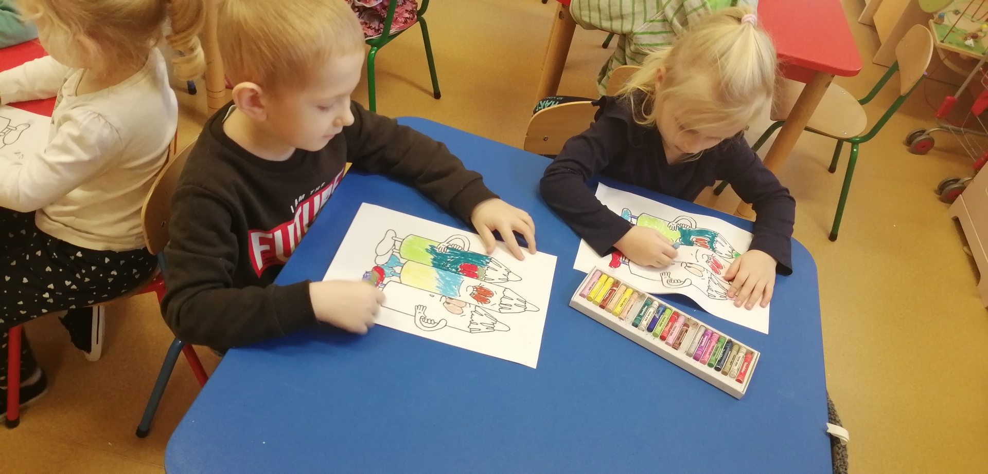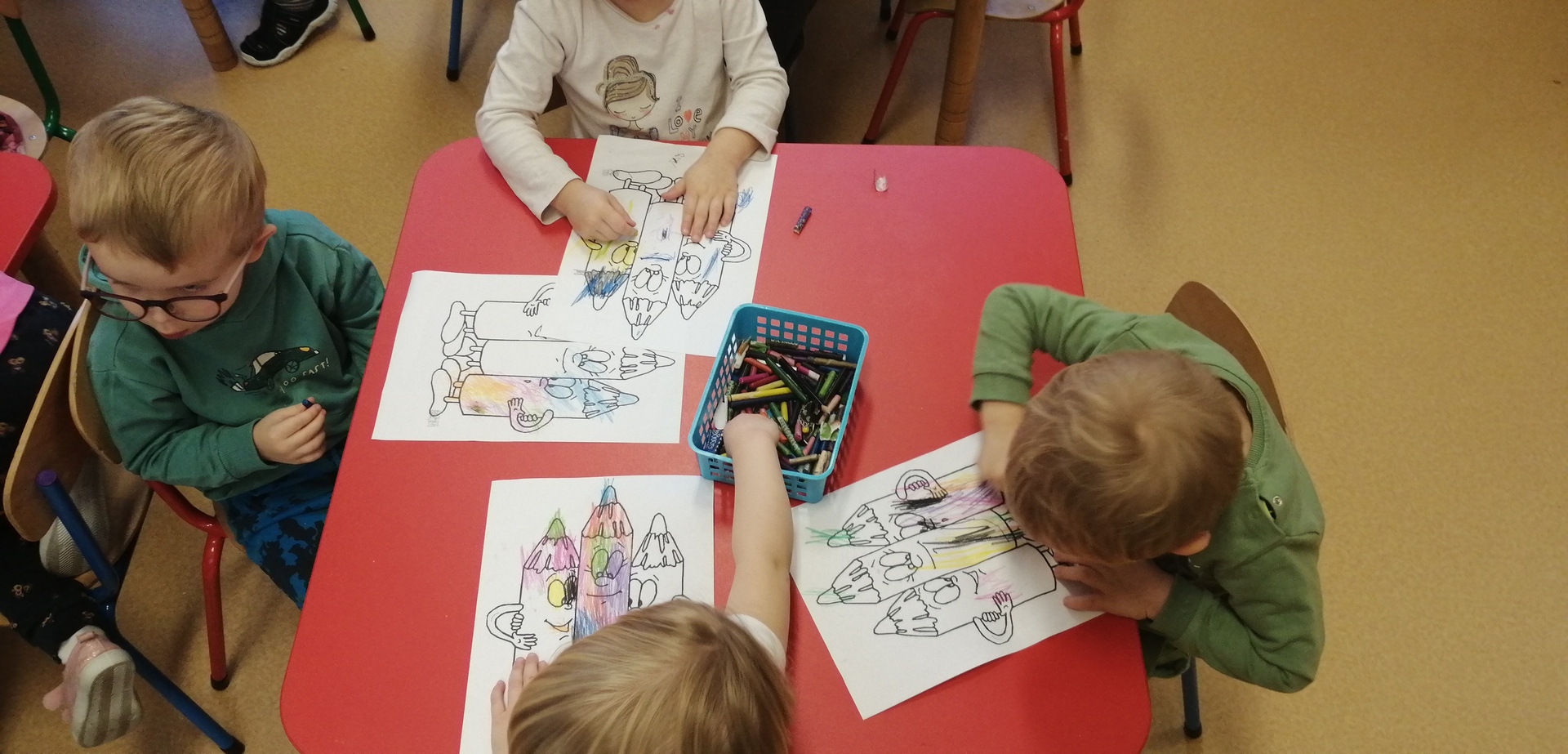 W środę - 22 listopada – był obchodzony Dzień Kredki. Dzieci przygotowały odznakę w swoim ulubionym kolorze przygotowaną specjalnie z okazji tego święta. Przedszkolaki zastanawiały się, do czego można wykorzystać kredki, jakie znają ich rodzaje. W grupie „Pszczółki” tego dnia królowała piosenka „Kolorowe kredki”, której dzieci uczyły się śpiewać. Wykonały piękne ilustracje do jej tekstu oraz ilustrowały go pokazywaniem podczas wspólnych zabaw przy muzyce. Przedszkolaki, oprócz zabaw, uczyły się segregacji kolorów i układały kredki wg wielkości, a także kolorowały ilustracje różnymi rodzajami kredek (drewniane, woskowe, pastele). Na koniec przedszkolaki z obu grup otrzymały pudełeczko kredek i kolorowanki.
