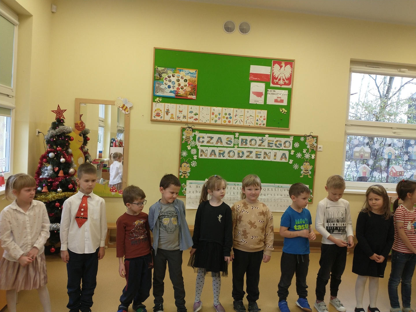 W dniu 11 grudnia w Oddziale Przedszkolnym odbyły się warsztaty o tematyce bożonarodzeniowej, w których uczestniczyli rodzice. Dzieci przywitały rodziców piosenką „Rodzinne święta”, która wprowadziła wszystkich w świąteczny nastrój. Następnie wyrecytowały wiersz Haliny Golczowej „Chleb miłości” oraz zatańczyły do wesołej piosenki „Dulce Navidad”.