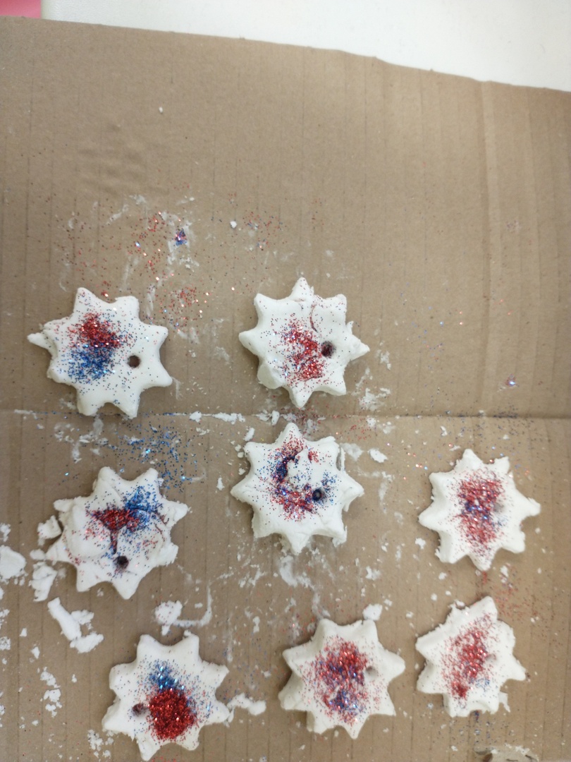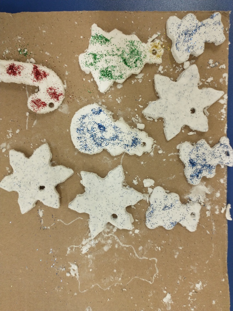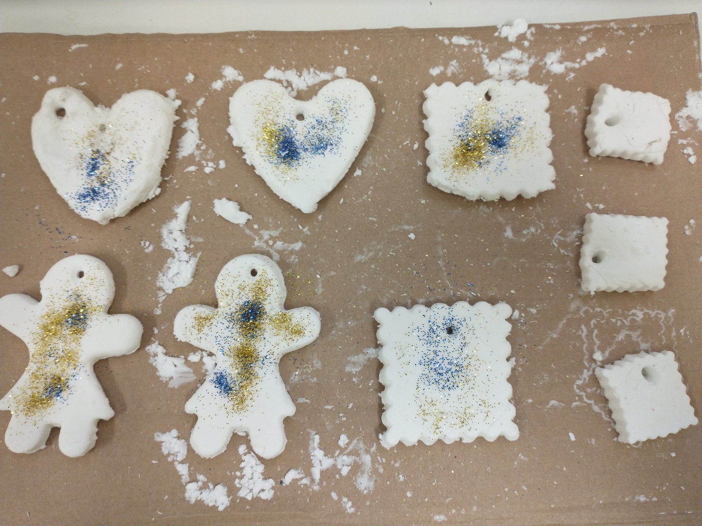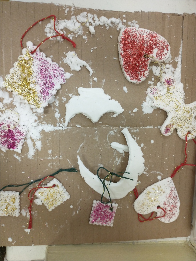 Po zakończonej części artystycznej przedszkolaki wraz z rodzicami przystąpiły do tworzenia ozdób bożonarodzeniowych z masy plastycznej. Czas przeznaczony na wyschnięcie wykonanych elementów został wykorzystany na wykonanie pudełka na swoje prace.