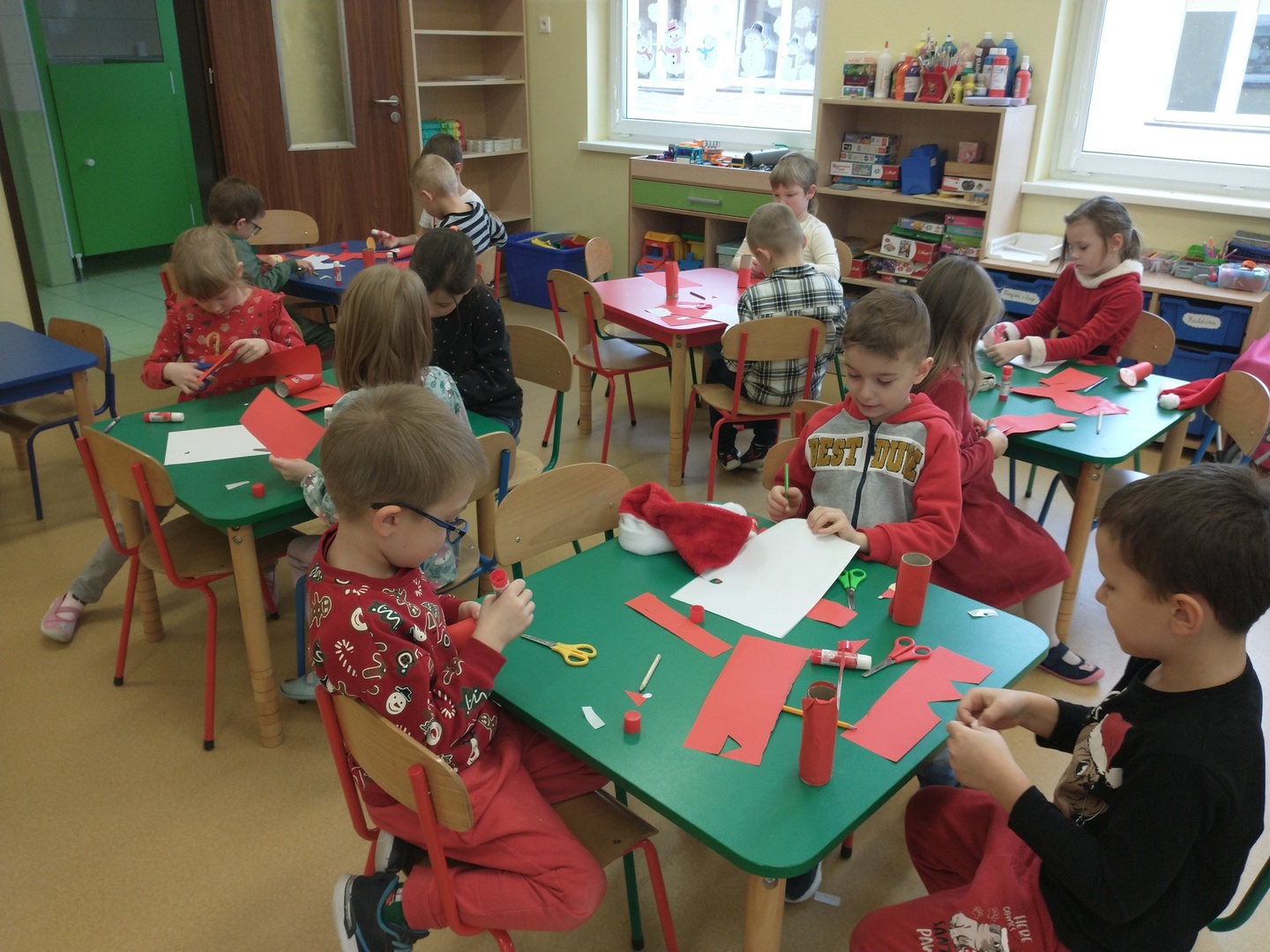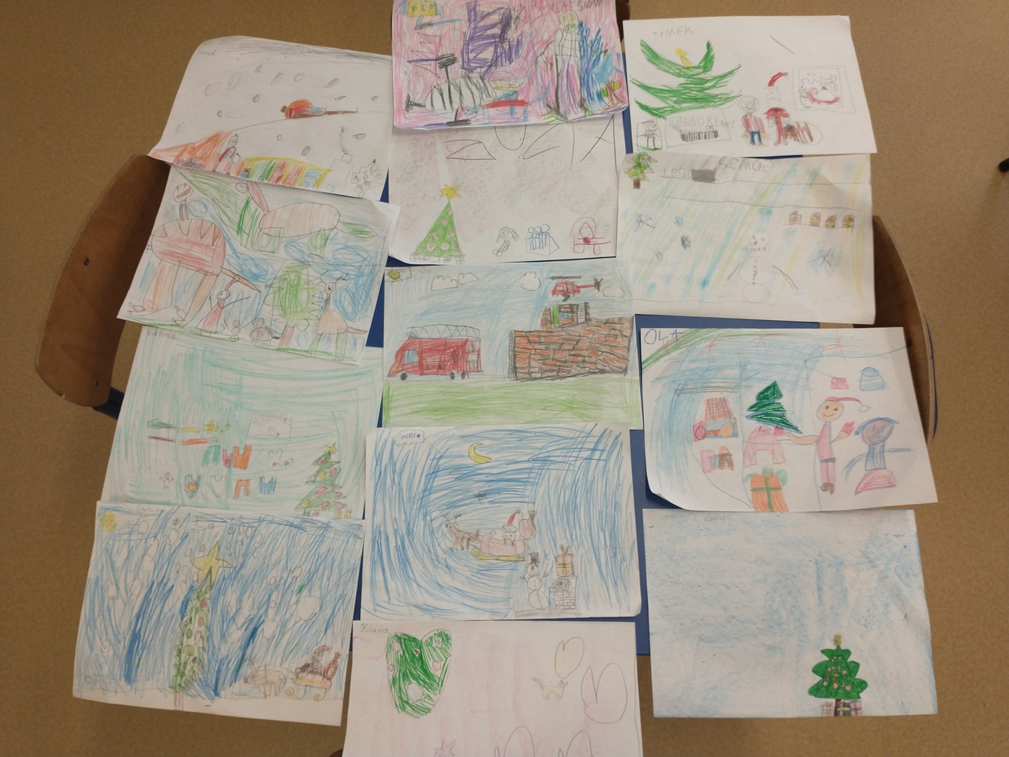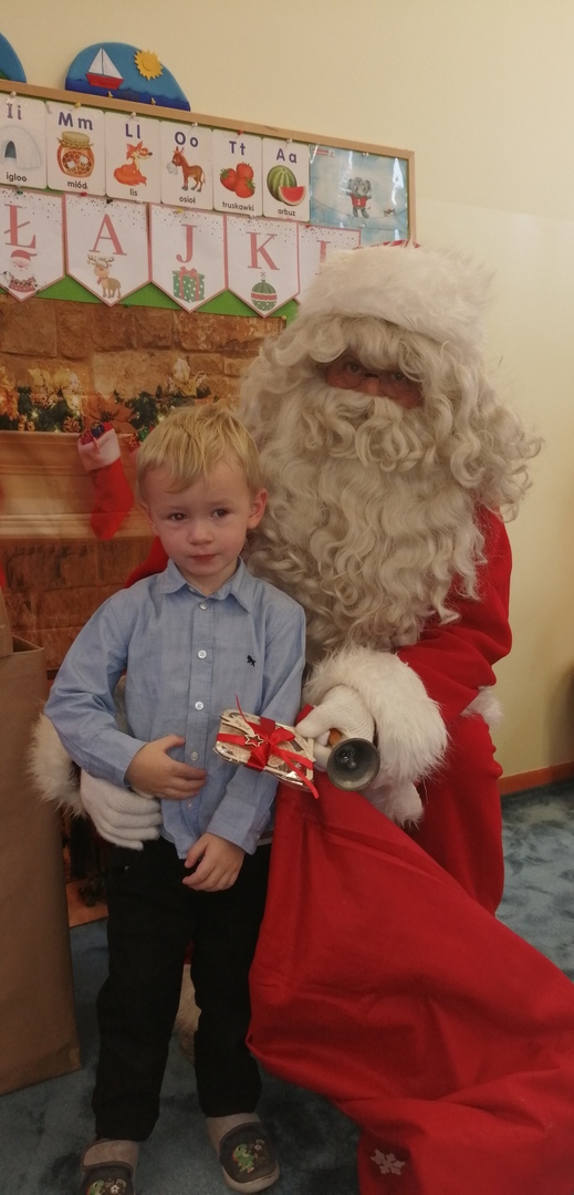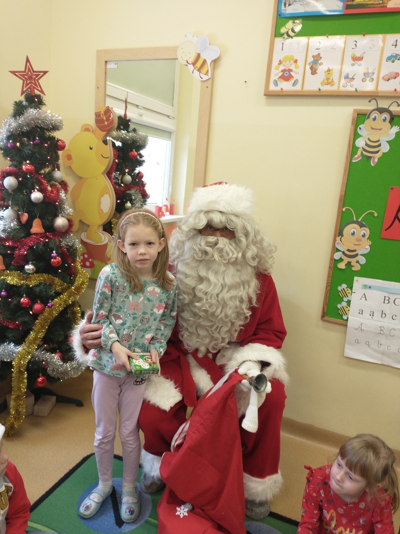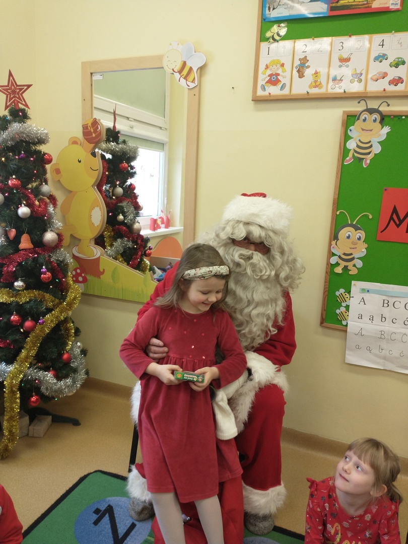 Następnie dzieci narysowały swoje świąteczne marzenia, a powstałe prace zostały zaprezentowane na wystawie. W końcu grupę ,,Pszczółki” odwiedził długo wyczekiwany gość. Po upewnieniu się , że dzieci były grzeczne, Mikołaj rozdał im prezenty. Po jego wizycie dzieci wykonały śliczne Mikołaje z papieru.