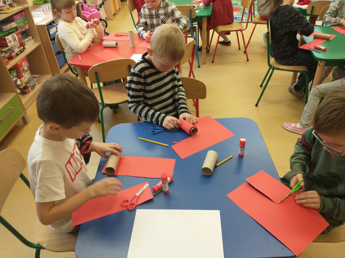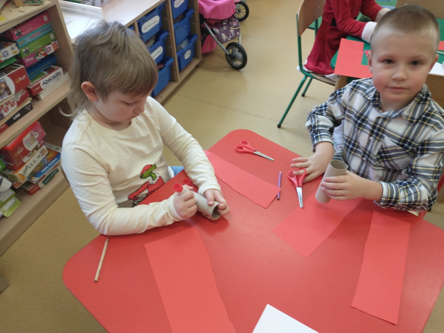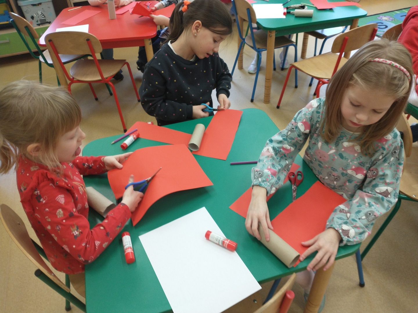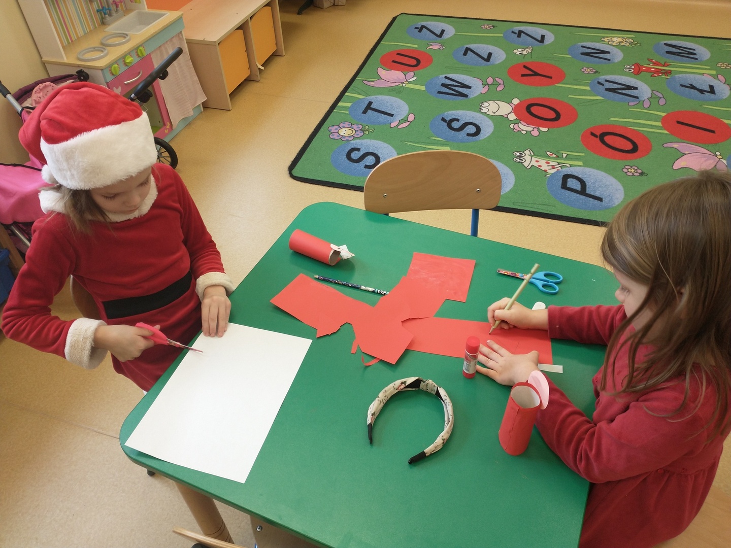 Następnie dzieci narysowały swoje świąteczne marzenia, a powstałe prace zostały zaprezentowane na wystawie. W końcu grupę ,,Pszczółki” odwiedził długo wyczekiwany gość. Po upewnieniu się , że dzieci były grzeczne, Mikołaj rozdał im prezenty. Po jego wizycie dzieci wykonały śliczne Mikołaje z papieru.