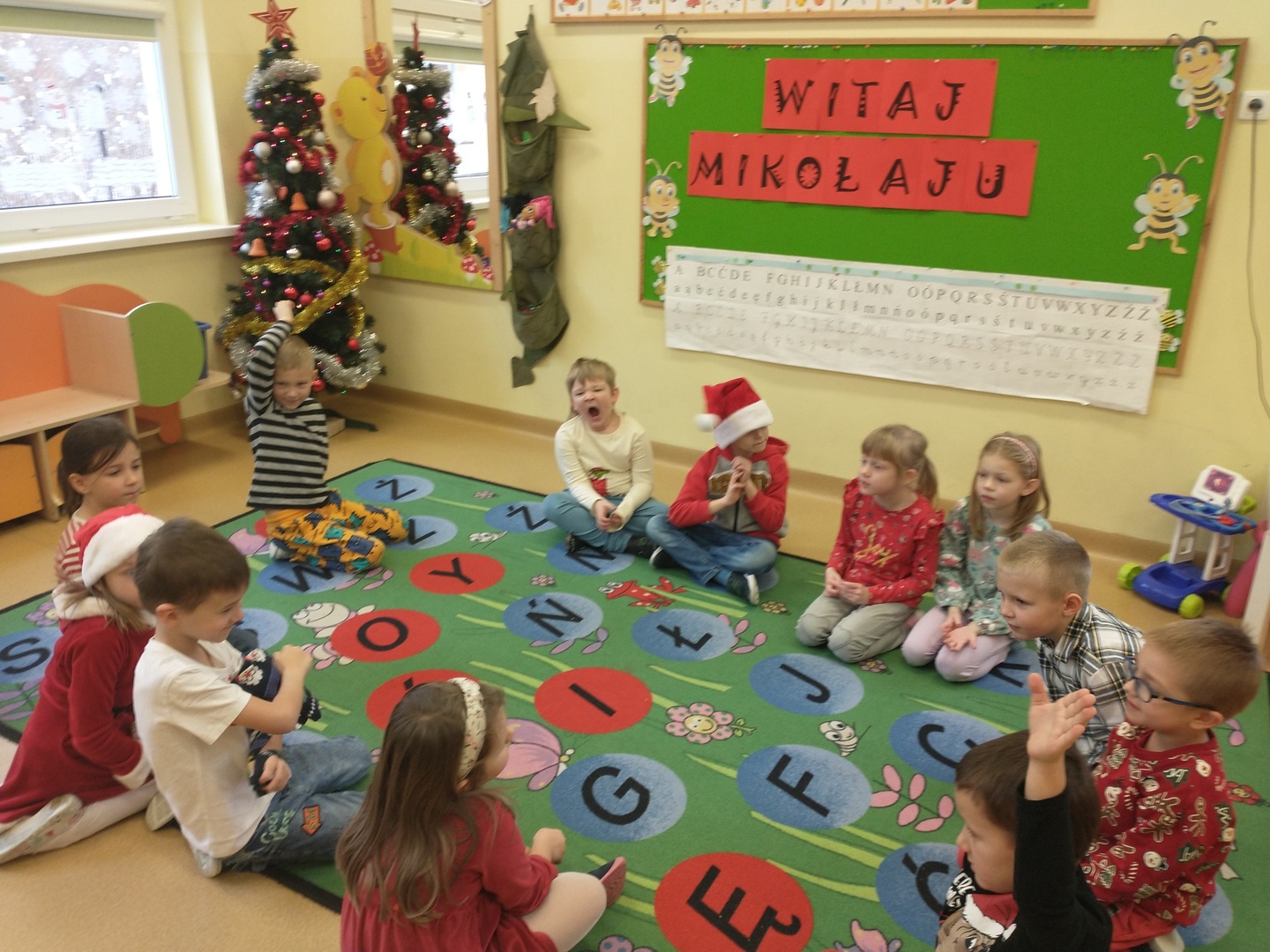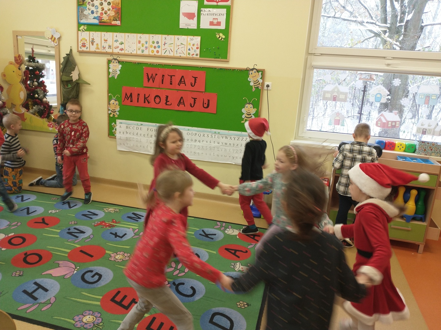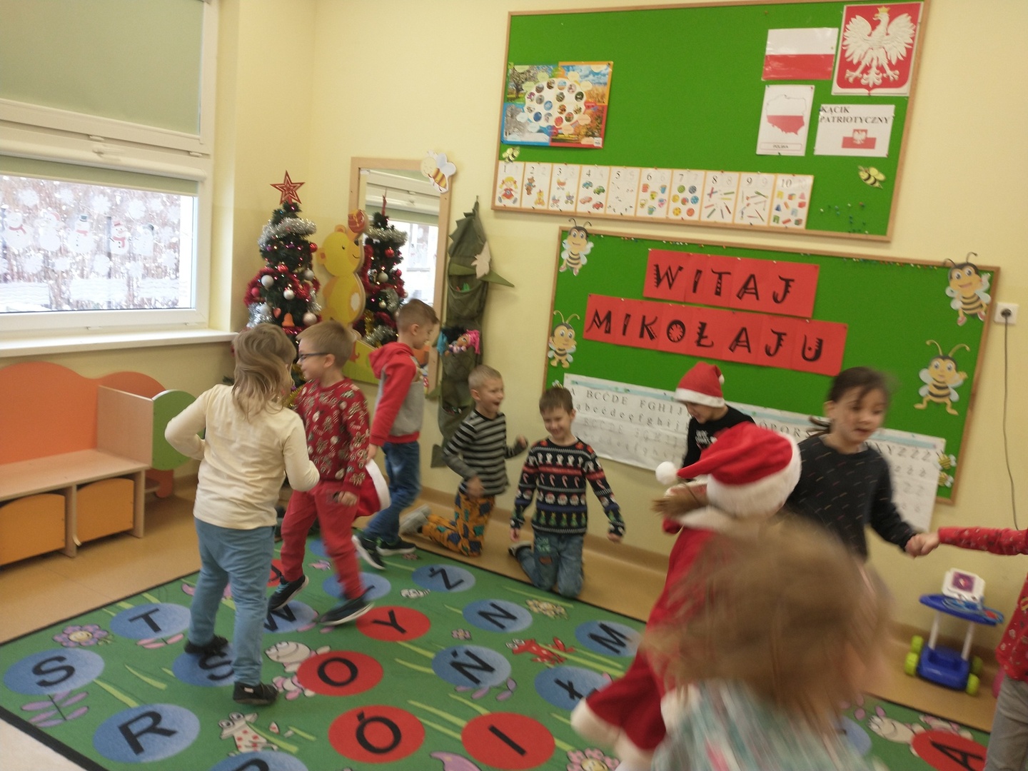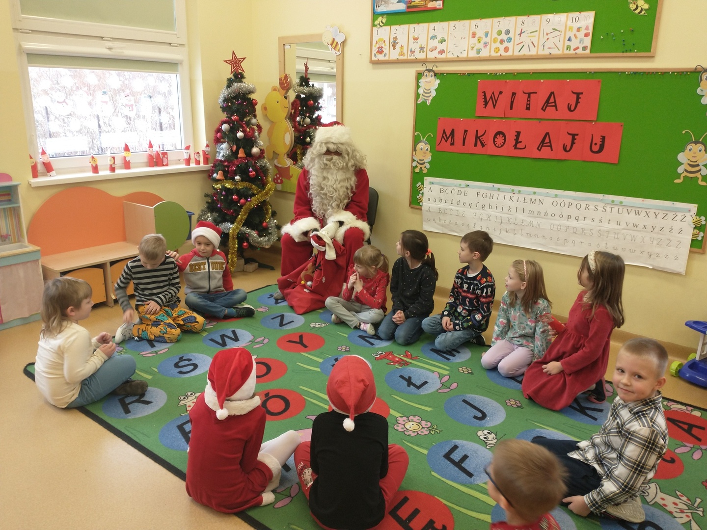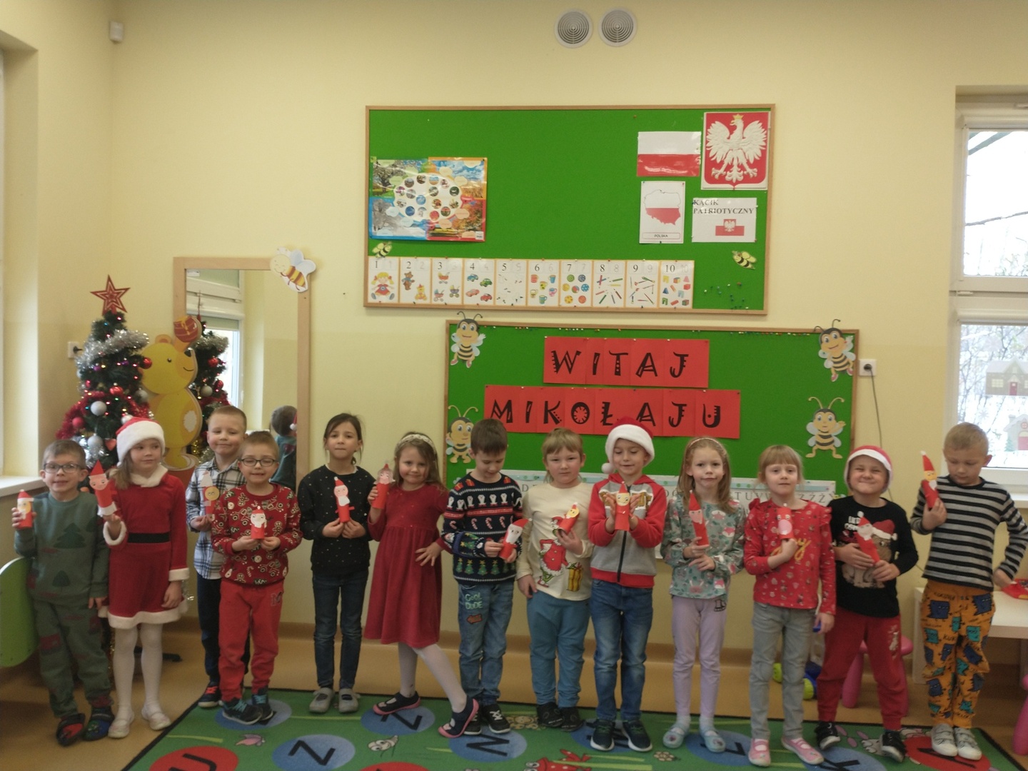 W dniu 6 grudnia dzieci ze zniecierpliwieniem wyczekiwały na przybycie Mikołaja. Najpierw dzieci opowiadały o Mikołaju oraz o tym, jak być dobrym dla innych. Przedszkolaków odwiedziła też Pani Dyrektor ze słodkimi upominkami.